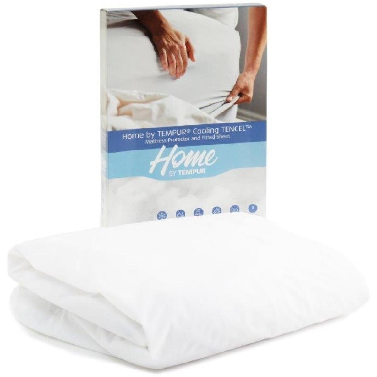 A bedding essential created for the Home By TEMPUR® Collection to keep your TEMPUR® mattress clean, dry and fresh. Use a TEMPUR® Cooling Mattress Protector as an extra layer beneath your favourite bed linen, or as a bottom sheet itself.  Ultra-thin, its waterproof sleeping surface is breathable and acts as barrier against dust mites.  KEY FEATURES: 2-in-1 cooling mattress protector and fitted sheet Fully breathable and waterproof Innovative microcapsules keep you cool throughout the night Intelligent membrane encourages airflow  Anti-dust mite barrier maintains sleep hygiene Kind to your skin, as certified by OEKO-TEX® Machine washable at 60°C, tumble dry on low Fits mattresses up to 31cm deep. Rest easy with a 3-year guarantee