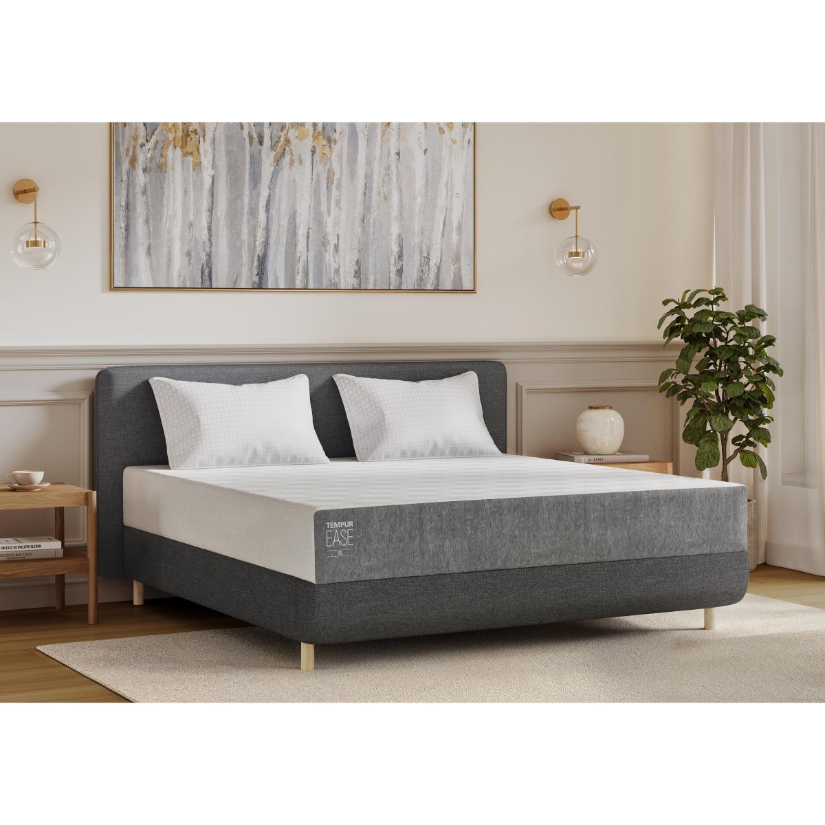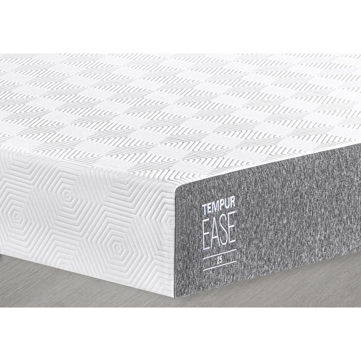 Always wanted a TEMPUR® mattress? The TEMPUR Ease® 25 cm mattress gives you all the uniquely pressure-relieving support of a TEMPUR mattress at a price you’ll love. Why you'll love it It’s easier to enjoy incredible pressure-relieving support with a TEMPUR Ease mattress. This 25 cm medium-firm mattress feels so luxurious – and is so well-priced. Like all TEMPUR mattresses, it has NASA-born technology at its core. Unbelievable support comes from the range’s deepest layer of innovative TEMPUR® Adapt Material. This material adapts to your body’s shape and weight to provide complete and continuous support. And this TEMPUR Ease mattress is so easy to look after, too. The removable top cover is machine washable at 30°C. No need to flip, turn or rotate it. Suitable for use on any type of breathable bed base. Ideal for everyone – from new home owners to longstanding TEMPUR fans. This mattress is part of the TEMPUR Ease range. What you need to know Mattress type:Foam. Depth: 25cm. Firmness: Medium-firm. Pillow top: No. Filling: TEMPUR® Adapt Material. Requires turning: No. Sizes: Small single, single, double, king, super king. Mattress care:Air for 4 hours before using to remove any odour. Indentations caused by settlement of fillings or body weight are normal and are not considered defects. If used on a slatted bed frame, the space between slats must be no wider than 7.5 cm. Spaces wider than this may cause excess dipping of the mattress and invalidate the guarantee. Always use a mattress protector. This temperature-sensitive mattress will feel firmer at first. It will attain its stated firmness feel with use. Item code: EASE25MT46-001