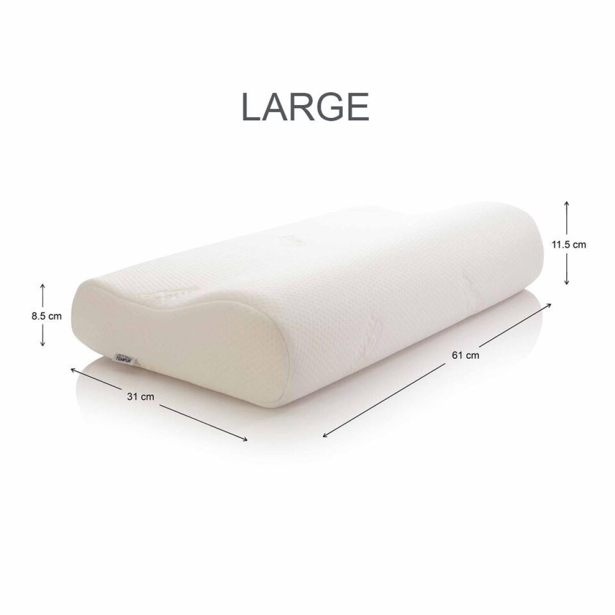 Contoured from solid TEMPUR® Material for uncompromising neck support and firmness. Available in 3 heights, so you can choose the size that fits you perfectly. Featuring ergonomic design and TEMPUR Technology that contours to the shape of your body, the TEMPUR Original Pillow conforms to your unique natural curvature helping head, neck and shoulder muscles to fully relax, alleviating discomfort. The cover is removable for washing at 60°C, and is quick drying. The contours of all TEMPUR Ergonomic Original Support Pillows have been designed for those who need a more therapeutic sleeping posture, by following the body's natural curve, supporting your head, neck and shoulders. Personalised Ergonomic Support Made with the same unique TEMPUR® Material found in our mattresses, our pillows provide complete support all night long Viscoelastic cells that actively mould and adapt to your head, neck and shoulders Ultimate comfort and support A great night's sleep Sizes: Choose the right size for your frame to give you a snug and tailored fit. Because people come in different shapes and sizes, there is a variety of forms to choose from. Typically the broader your shoulders, the higher the pillow you need. All measurements are approximate. Please allow for a tolerance of +/- 2cm. Medium - 61 x 31 x 10/7cm Large - 61 x 31 x 11.5/8.5cm XL - 61 x 31 x 13/10cm Features: 3 year guarantee Available in 3 sizes to accommodate different body shapes Contoured to support the natural curvature created by your head, neck and shoulders Helps to align your spine when sleeping on your back or side Moulded from TEMPUR® Material for superb pressure relieving comfort Soft fabric cover is removable for washing at 60°C and is quick drying Made in Denmark