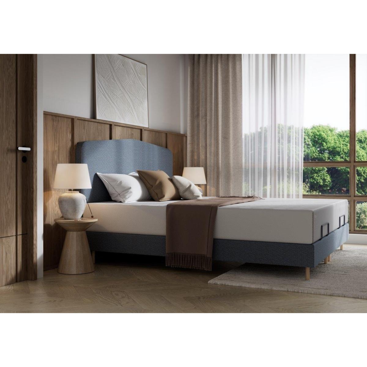 Please note, the mattress pictured is not included but is available to purchase separately.. The TEMPUR Form Bed with Headboard is meticulously handcrafted using solid FSC wood. This upgraded model has an adjustable base where you can enjoy the luxury of independent head and foot adjustments for a truly weightless relaxation experience. The Form Adjustable bed is available with a choice of 3 headboard styles and 6 stunning fabrics.. Classic Headboard-The Classic Headboard adds a contemporary touch, perfectly complementing any bedroom style.. Geometric Headboard-The Geometric Headboard brings a modern, stylish flair to any bedroom decor.. Horizontal Headboard-The distinctive Horizontal Headboard adds a unique touch to any bedroom decor. KEY FEATURES:. *Adjustable bedframe - independently adjust your head and feet *Handcrafted using solid FSC wood * Quality upholstery *Choose from 3 headboard styles *Choose from several stunning fabrics *10 year frame guarantee *Delivered flat-packed for home assembly DIMENSIONS:. *King - W 150cm x L 200cm *Super King - W 180cm x L 200cm All screens vary in colour reproduction and whilst every effort has been made to display the colour as accurately as possible it is for guidance only..