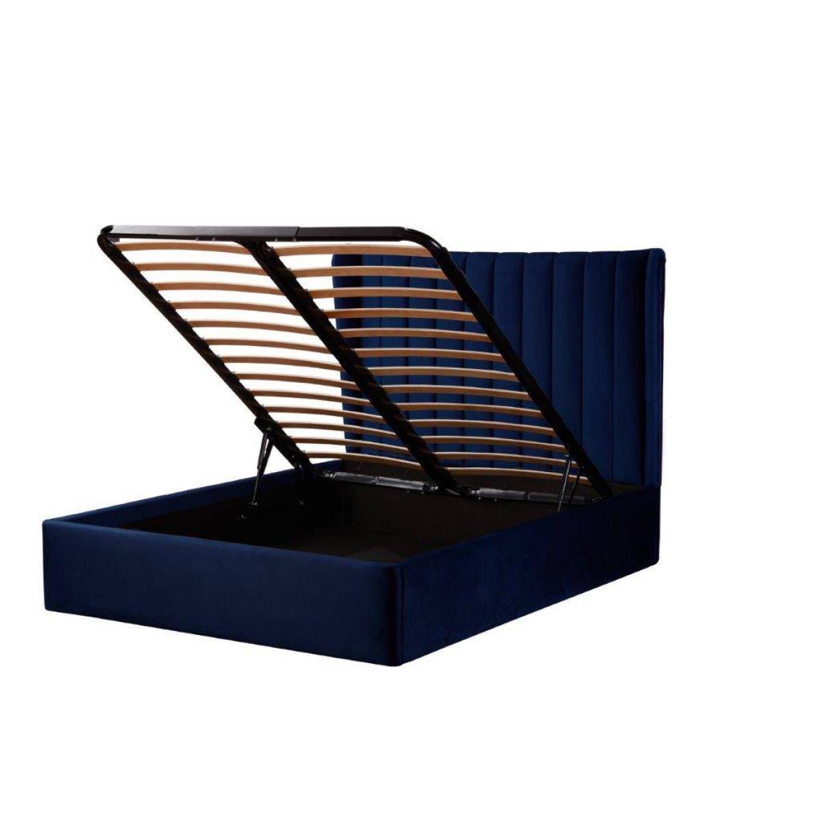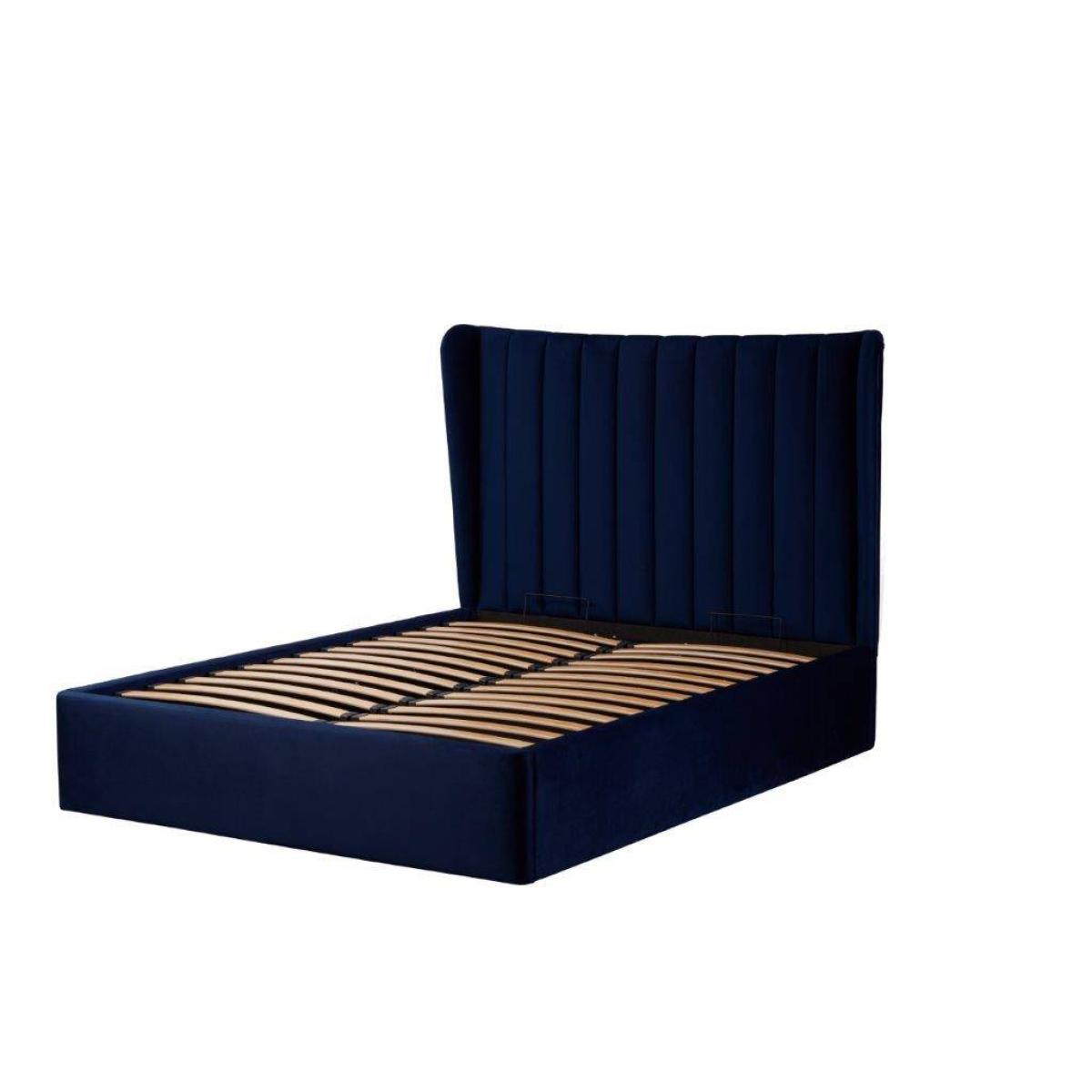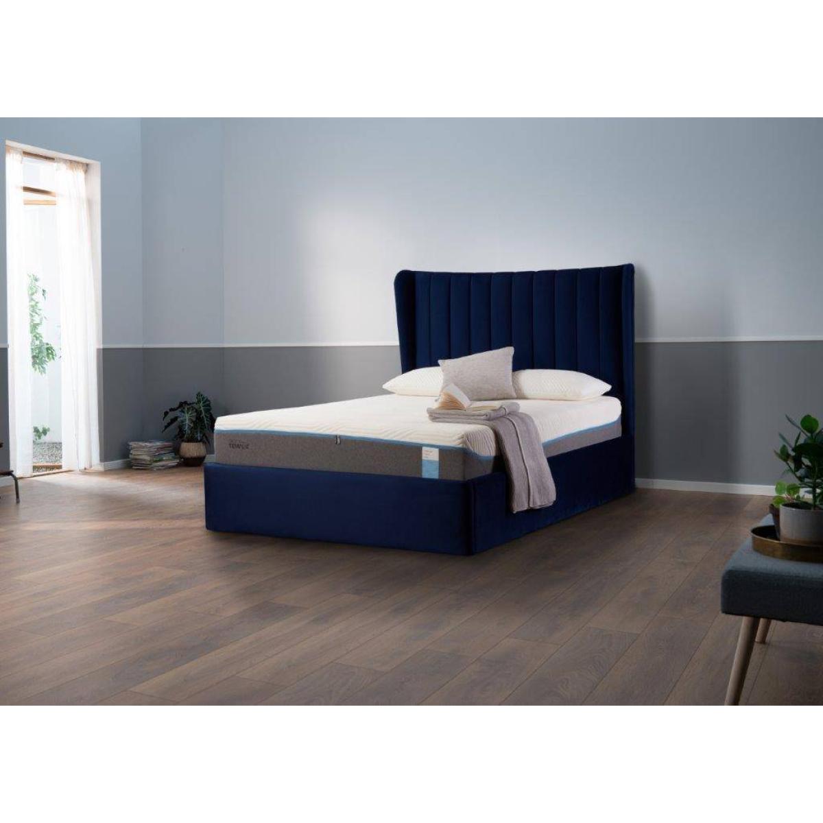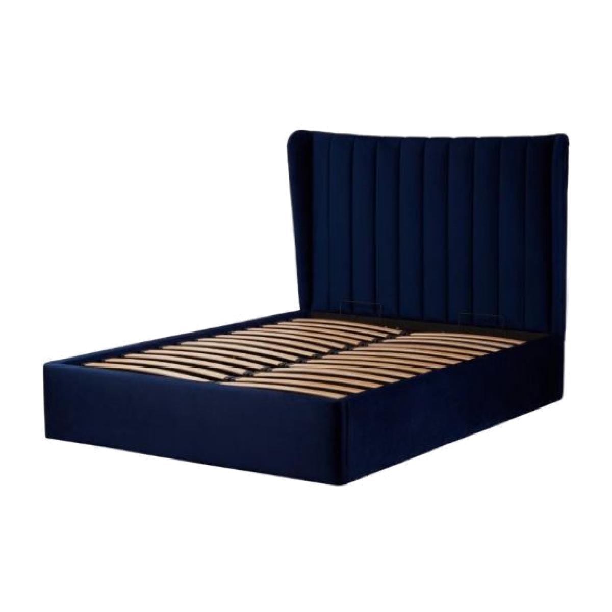 For a fusion of classic and contemporary design take a look at Hampton Where extra storage is required an ottoman bed provides a great solution. Simply lift up the frame to reveal a handy storage space, perfect for keeping bed linen and other lightweight items stowed away. Incorporating a traditional high-backed winged headboard with plush vertical cushioning and a modern slim line frame for an extra twist of chic, the Hampton Ottoman is upholstered in a choice of 4 soft velvet effect colours, from fashionable greys to striking dark blue and a lush blush pink. With the headboard designed to flush fit to the wall, this ottoman bedstead allows you to maximise your floor space. Our ottoman bases are made to order. Ottoman beds enable you to maximise your storage space. Easy lifting, aided by gas pistons, helps you to raise the frame to reveal a handy compartment, perfect for keeping bed linen and other lightweight items stowed away, freeing up valuable cupboard space. Suitable for all TEMPUR mattresses in standard king and super king sizes (please note, a mattress is not included, but are sold separately) Manufacturer's 10 year guarantee Upholstered ottoman base with integral headboard and discreet moulded feet Reverse side of integral headboard finished in a plain fabric to enable close fitting to a wall Operated by gas lift mechanism to access storage space. Maximum storage weight capacity approx 20kgs. Finished in a choice of soft velvet effect fabrics. Mattress support provided by wooden slats suspended in adjacent twin metal frames. For easy access this item is delivered boxed in sections. This bed base is supplied with round black plastic feet which measure 25mm across. Dimensions & Specifications: King - W: 161cm x L: 214cm x H: 135cm. Foot End Height: 35cm. Super King - W: 191cm x L: 214cm x H: 135cm. Foot End Height: 35cm. Maximum weight of Mattress - King: 55.84kg. Super King: 66.60kg Assembly required If your bedroom has a wood or laminated finished floor, it is important that you protect it. Should you need to move your ottoman, please do not dragged or push it about to reposition it. Lifting is the best option to avoid any damage to your floor. Please note, all screens vary in colour reproduction and whilst every effort has been made to display the colour as accurately as possible it is for guidance only.