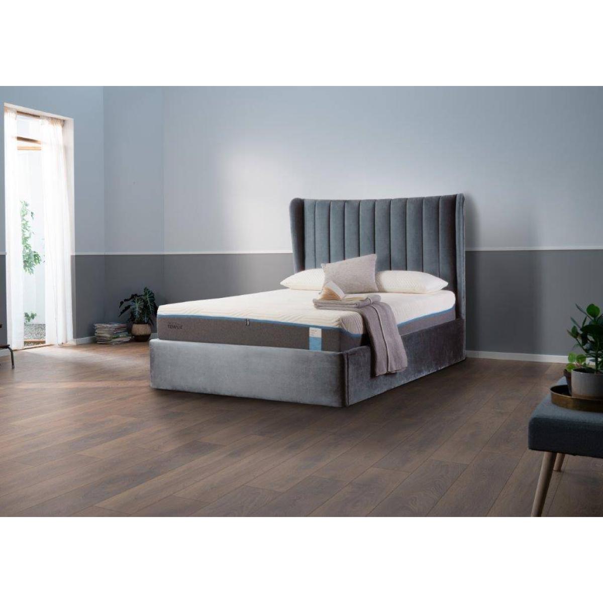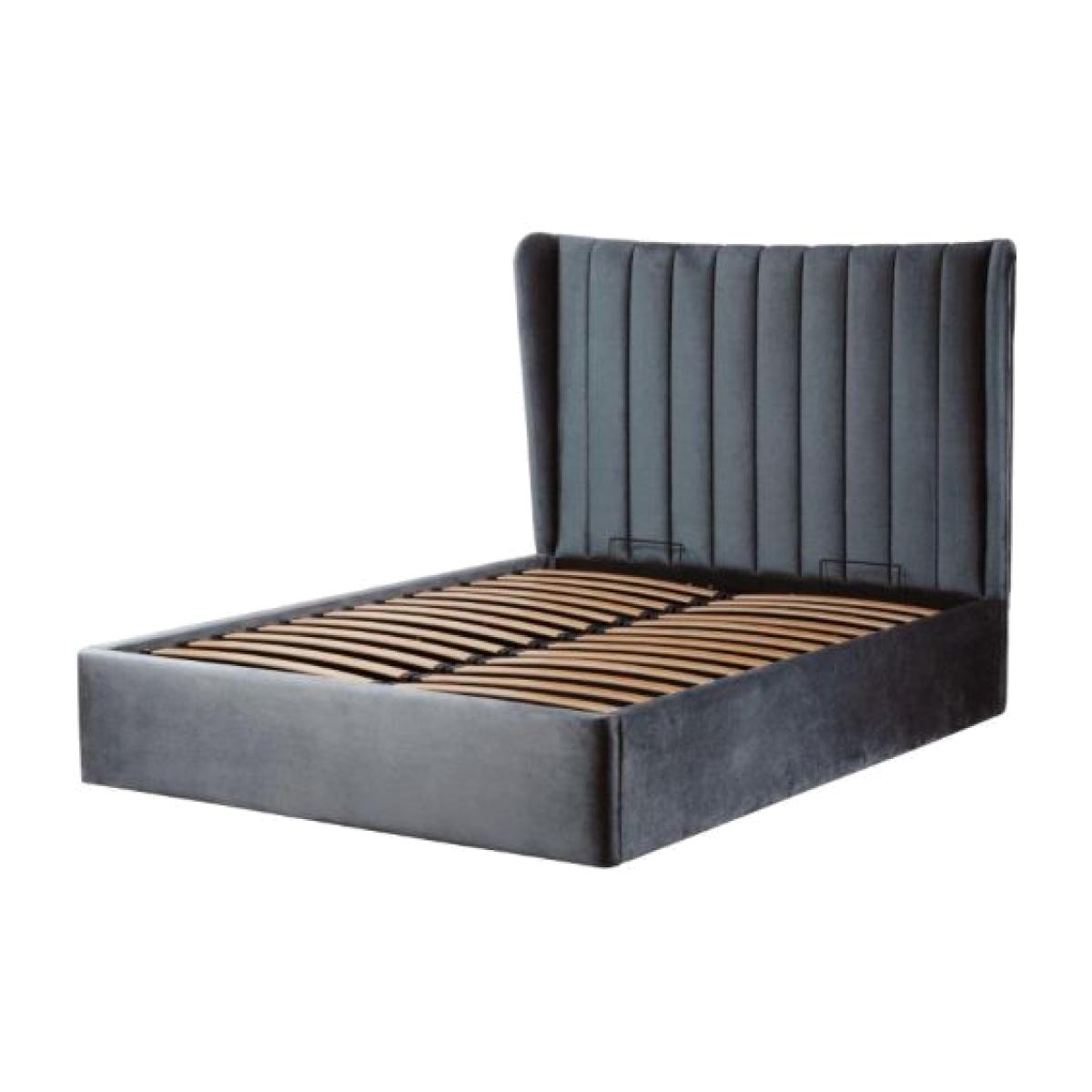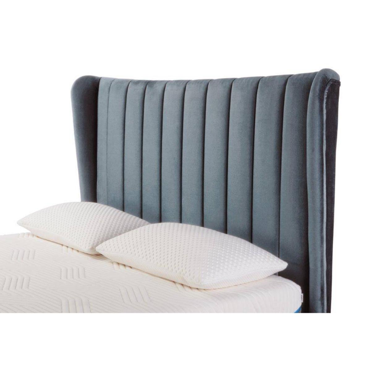 For a fusion of classic and contemporary design take a look at Hampton Where extra storage is required an ottoman bed provides a great solution. Simply lift up the frame to reveal a handy storage space, perfect for keeping bed linen and other lightweight items stowed away. Incorporating a traditional high-backed winged headboard with plush vertical cushioning and a modern slim line frame for an extra twist of chic, the Hampton Ottoman is upholstered in a choice of 4 soft velvet effect colours, from fashionable greys to striking dark blue and a lush blush pink. With the headboard designed to flush fit to the wall, this ottoman bedstead allows you to maximise your floor space. Our ottoman bases are made to order. Ottoman beds enable you to maximise your storage space. Easy lifting, aided by gas pistons, helps you to raise the frame to reveal a handy compartment, perfect for keeping bed linen and other lightweight items stowed away, freeing up valuable cupboard space. Suitable for all TEMPUR mattresses in standard king and super king sizes (please note, a mattress is not included, but are sold separately) Manufacturer's 10 year guarantee Upholstered ottoman base with integral headboard and discreet moulded feet Reverse side of integral headboard finished in a plain fabric to enable close fitting to a wall Operated by gas lift mechanism to access storage space. Maximum storage weight capacity approx 20kgs. Finished in a choice of soft velvet effect fabrics. Mattress support provided by wooden slats suspended in adjacent twin metal frames. For easy access this item is delivered boxed in sections. This bed base is supplied with round black plastic feet which measure 25mm across. Dimensions & Specifications: King - W: 161cm x L: 214cm x H: 135cm. Foot End Height: 35cm. Super King - W: 191cm x L: 214cm x H: 135cm. Foot End Height: 35cm. Maximum weight of Mattress - King: 55.84kg. Super King: 66.60kg Assembly required If your bedroom has a wood or laminated finished floor, it is important that you protect it. Should you need to move your ottoman, please do not dragged or push it about to reposition it. Lifting is the best option to avoid any damage to your floor. Please note, all screens vary in colour reproduction and whilst every effort has been made to display the colour as accurately as possible it is for guidance only.