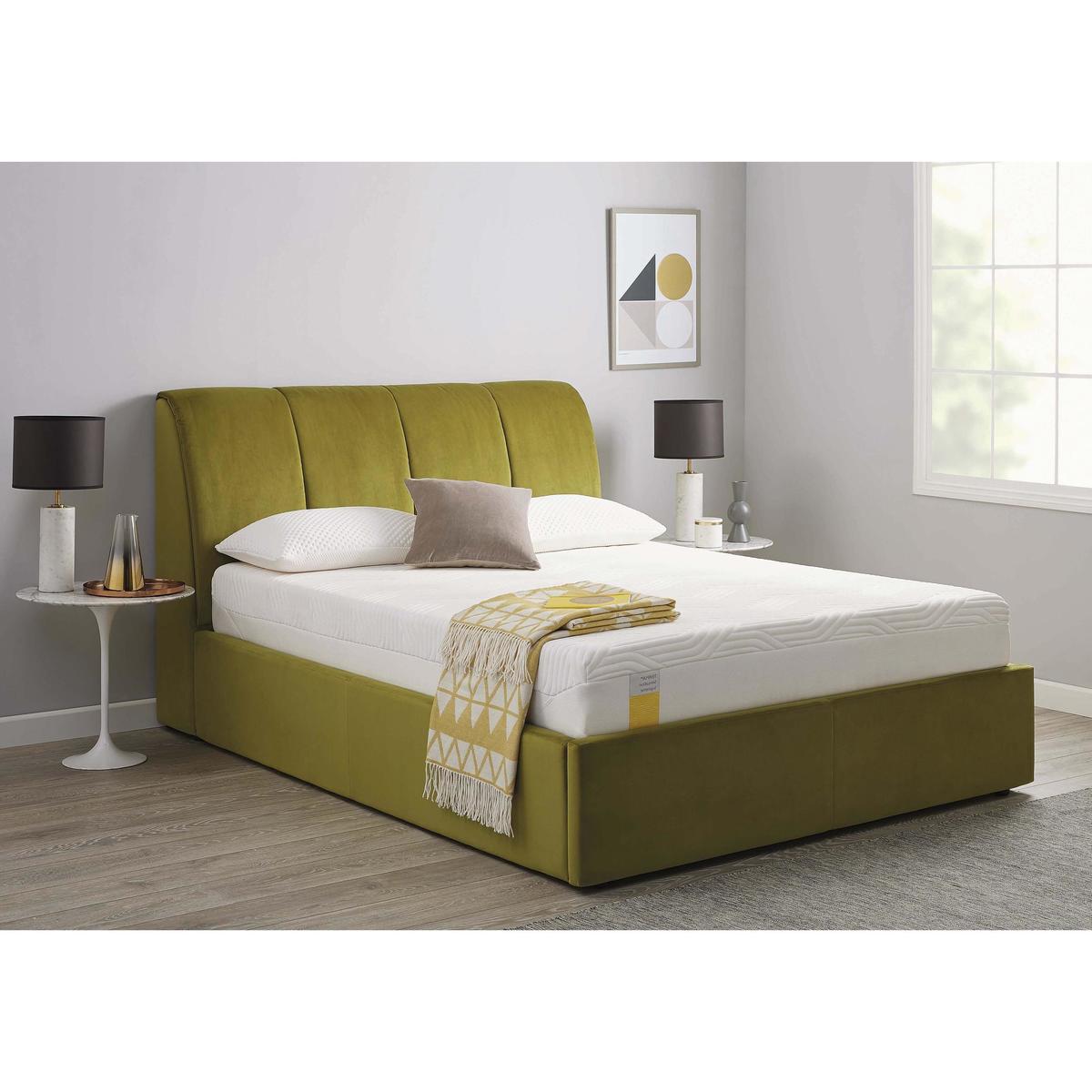 If you’re looking for a stylish upholstered bed that has plenty of inbuilt storage, the Tempur Harrington could fit the bill. It has a sumptuously padded headboard that curves beautifully, so it’s sure to be the star of your bedroom. And the fully upholstered ottoman bed frameincorporates a spacious under bed storage area – perfect for everything from linens to winter clothes. Choose your look, this gorgeous bed comes in tweed, twill and velvet fabrics in soft neutrals and bolder shades for a bespoke feel. Outstanding value handcrafted style. Headboard comes as one single piece. The TEMPUR® Harrington ottoman bed frame perfectly combines great contemporary style with superb storage. Simply raise the metal-framed wood slatted bed frame and you’ll reveal a spacious compartment that’s perfect for bedding and other lightweight items. Fully upholstered in your choice of on trend tweed, twill and velvet fabric in soft neutrals and brighter tones, this bespoke-feel ottoman bed frame incorporates a sumptuously padded curved headboard with vertical grooves that create a stylish quilted effect. Covered in a plain fabric on the reverse, this headboard fits flush to the wall for a smart, finished look. Made by bed and mattress innovator TEMPUR®, the TEMPUR® Harrington ottoman bed frame is available at a fantastic price and is suitable for all mattress styles. It’s available in double, king and super king sizes. An online exclusive at Furniture Village. Mattress sold separately.