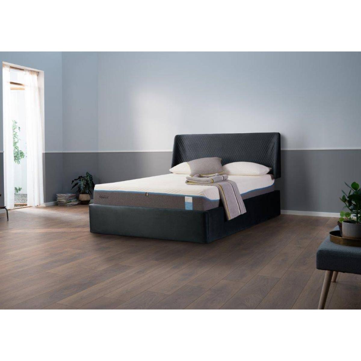 For a bed frame that is truly eye catching take a look at Highgate. Where extra storage is required an ottoman bed provides a great solution. Simply lift up the frame to reveal a handy storage space, perfect for keeping bed linen and other lightweight items stowed away. Incorporating a curved winged headboard featuring quilting details and a modern slim line frame for an extra twist of chic, the Highgate Ottoman is upholstered in a choice velvet effect fabrics including fashionable greys, a rich dark blue and a lush blush pink. With the fully upholstered headboard to enhance the contemporary styling, this ottoman bedstead makes a real design statement. Our ottoman bases are made to order. Ottoman beds enable you to maximise your storage space. Easy lifting, aided by gas pistons, helps you to raise the frame to reveal a handy compartment, perfect for keeping bed linen and other lightweight items stowed away, freeing up valuable cupboard space. Suitable for all TEMPUR mattresses in standard king and super king sizes (please note, a mattress is not included, but are sold separately) Manufacturer's 10 year guarantee Upholstered ottoman base with integral headboard and discreet moulded feet Reverse side of integral headboard fully upholstered to enhance curved design Operated by gas lift mechanism to access storage space Maximum storage weight capacity approx 20kgs Finished in a choice of soft velvet effect fabrics Mattress support provided by wooden slats suspended in adjacent twin metal frames For easy access this item is delivered boxed in sections. This bed base is supplied with round black plastic feet which measure 25mm across Dimensions & Specifications: King - W: 161cm x L: 214cm x H: 113cm. Foot End Height: 35cm Super King - W: 191cm x L: 214cm x H: 113cm. Foot End Height: 35cm Maximum weight of Mattress - King: 55.84kg. Super King: 66.60kg Assembly required If your bedroom has a wood or laminated finished floor, it is important that you protect it. Should you need to move your ottoman, please do not dragged or push it about to reposition it. Lifting is the best option to avoid any damage to your floor. Please note, all screens vary in colour reproduction and whilst every effort has been made to display the colour as accurately as possible it is for guidance only.