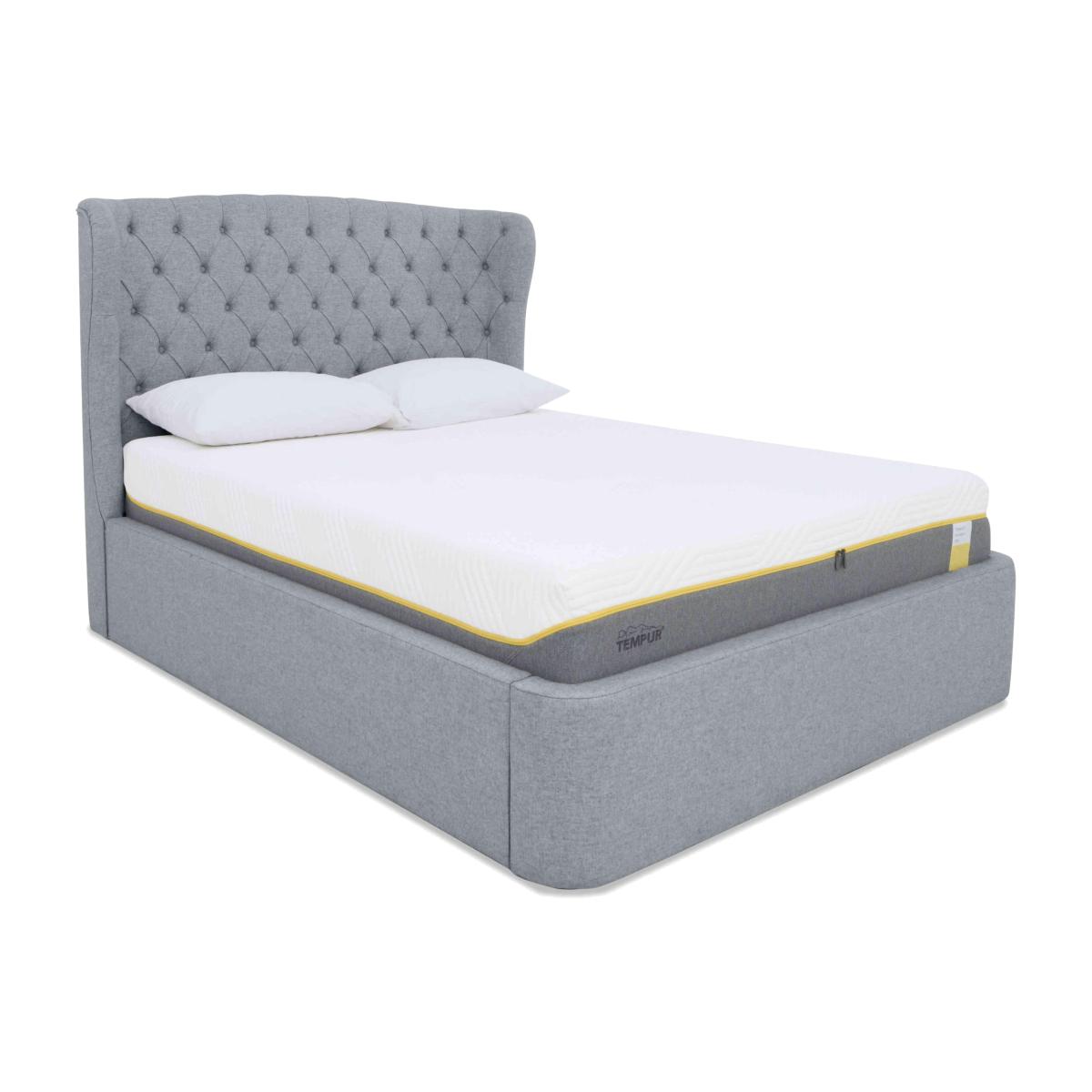 Discover storage and style in spades with the Holcot ottoman bedframe from TEMPUR®. If you’re looking for a functional bed base with a contemporary look, this is the one for you. Why you'll love it Maximise your space with this ottoman bedframe. Elegant and contemporary. Generous underbed ottoman storage compartment. High-backed winged headboard. Luxuriously upholstered in a choice of 4 fabrics. Available in king and super king sizes. This ottoman bedframe is perfect for modern homes and smaller bedrooms. What you need to know Mattress sold separately. Base type: pine and poplar slats. Ottoman opens at foot end. Mattress weight limit: king 56.5kg, super king 67.5kg. Please take care when opening and closing. Some fabrics can show wear on areas of more use or in direct sunlight. Clean regularly using a soft brush or vacuum with the curtain attachment. Deal with any spills promptly. Professional cleaning advised for oil- and grease-based stains.