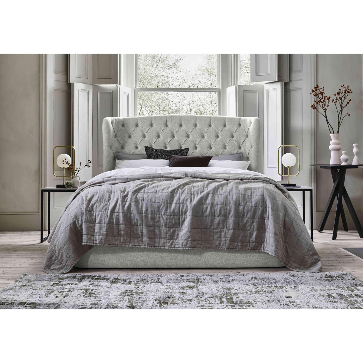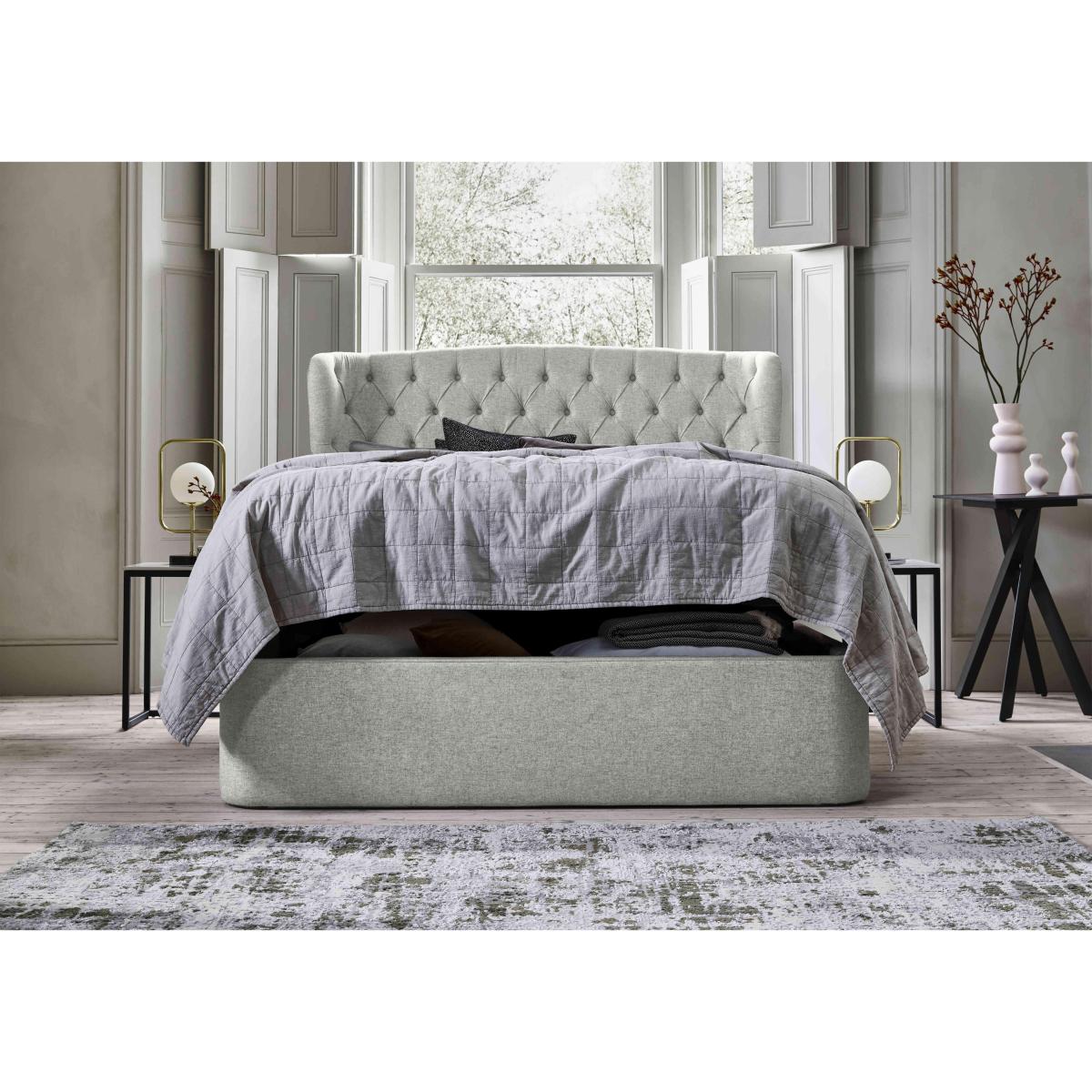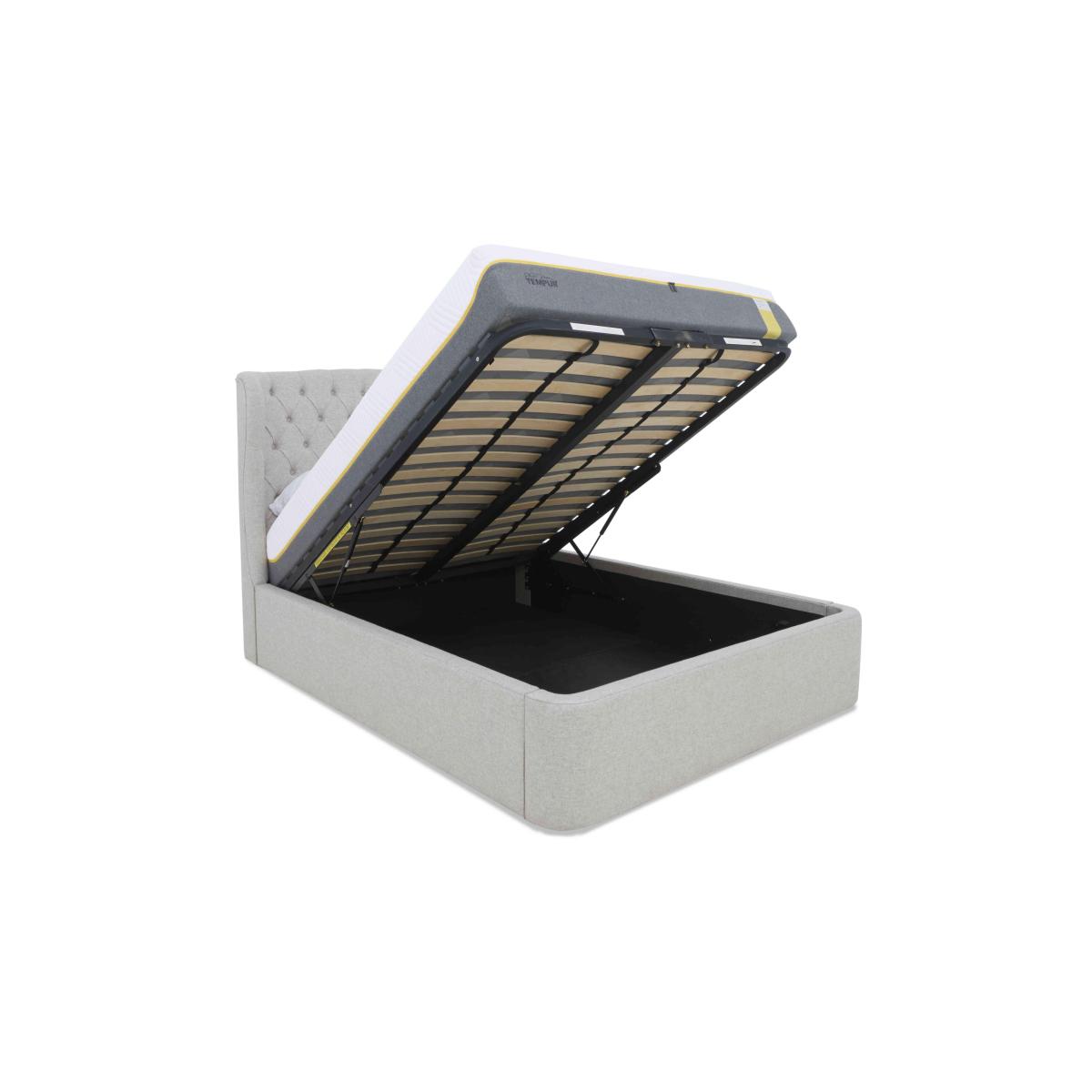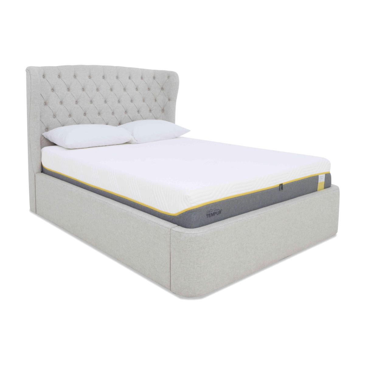 Discover storage and style in spades with the Holcot ottoman bedframe from TEMPUR®. If you’re looking for a functional bed base with a contemporary look, this is the one for you. Why you'll love it Maximise your space with this ottoman bedframe. Elegant and contemporary. Generous underbed ottoman storage compartment. High-backed winged headboard. Luxuriously upholstered in a choice of 4 fabrics. Available in king and super king sizes. This ottoman bedframe is perfect for modern homes and smaller bedrooms. What you need to know Mattress sold separately. Base type: pine and poplar slats. Ottoman opens at foot end. Mattress weight limit: king 56.5kg, super king 67.5kg. Please take care when opening and closing. Some fabrics can show wear on areas of more use or in direct sunlight. Clean regularly using a soft brush or vacuum with the curtain attachment. Deal with any spills promptly. Professional cleaning advised for oil- and grease-based stains.