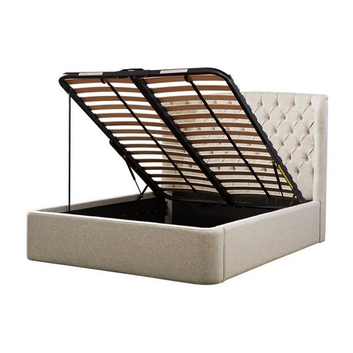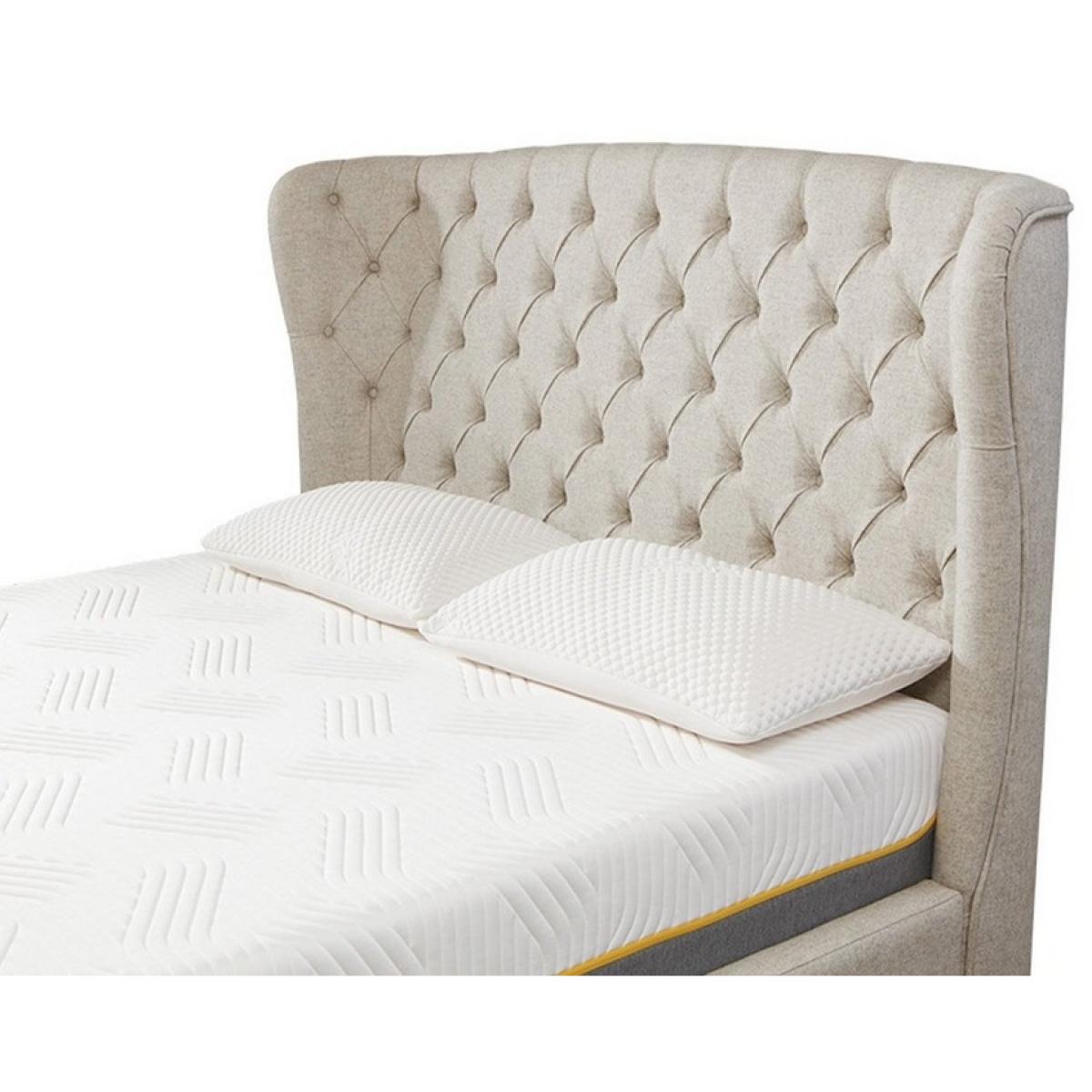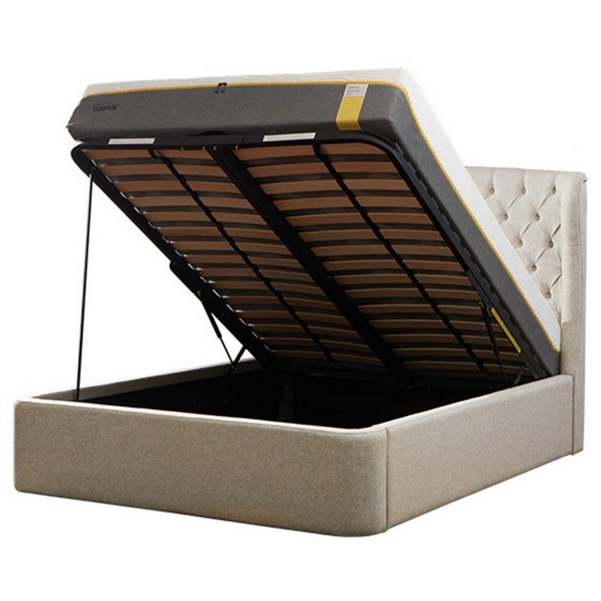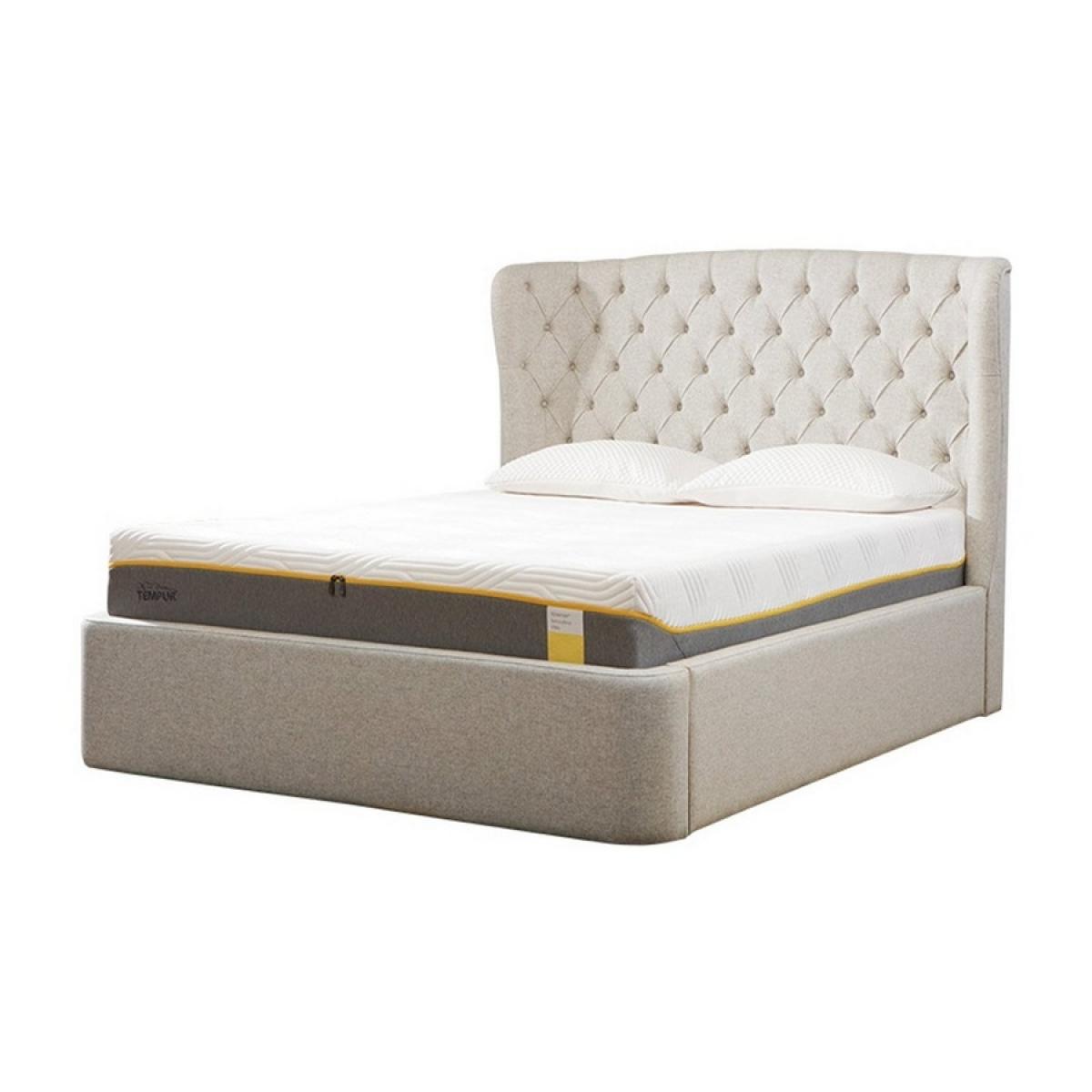 For a fusion of classic and contemporary design take a look at Holcot Ottoman Bedframe upholstered in Shetland Pebble beige fabric from Tempur. Where extra storage is required an ottoman bed provides a great solution. Simply lift up the frame to reveal a handy storage space, perfect for keeping bed linen and other lightweight items stowed away. Incorporating a traditional high-backed winged headboard with plush buttoned finishing and a modern slim line frame for an extra twist of chic, the Holcot Ottoman is upholstered in a range of fashionable soft fabrics. With the headboard designed to flush fit to the wall, this ottoman bedstead allows you to maximise your floor space. Hidden Extra Storage Space: Ottoman beds enable you to maximise your storage space. Easy lifting, aided by gas pistons, helps you to raise the frame to reveal a handy compartment, perfect for keeping bed linen and other lightweight items stowed away, freeing up valuable cupboard space. Features: Suitable for all TEMPUR® mattresses in standard king and super king sizes (not included, sold separately) Manufacturer's 10 year frame guarantee Manufacturer's 3 year moving parts guarantee (includes pistons and hinges) Upholstered ottoman base with integral high winged headboard and moulded feet Reverse side of integral headboard finished in a plain fabric to enable close fitting to a wall Operated by gas lift mechanism to access storage space With easy pull up handle to raise slatted frame Plus safety support strut for use when ottoman is fully open Maximum storage weight capacity approx 20kgs Finished in soft textured fabrics Mattress support provided by wooden slats suspended in adjacent twin metal frames For easy access this item is delivered boxed in sections Dimensions: King Size Overall Dimensions - W 167cm x L 225cm x H 133cm. Foot End Height - 36cm King Size Internal Dimensions - W 152cm x L 202cm x H 25cm. Super King Size Overall Dimensions - W 197cm x L 225cm x H 133cm. Foot End Height - 36cm Super King Size Internal Dimensions - W 182cm x L 202cm x H 25cm. Please note that all screens vary in colour reproduction and whilst every effort has been made to show the colour as accurately as possible it is for guidance only.