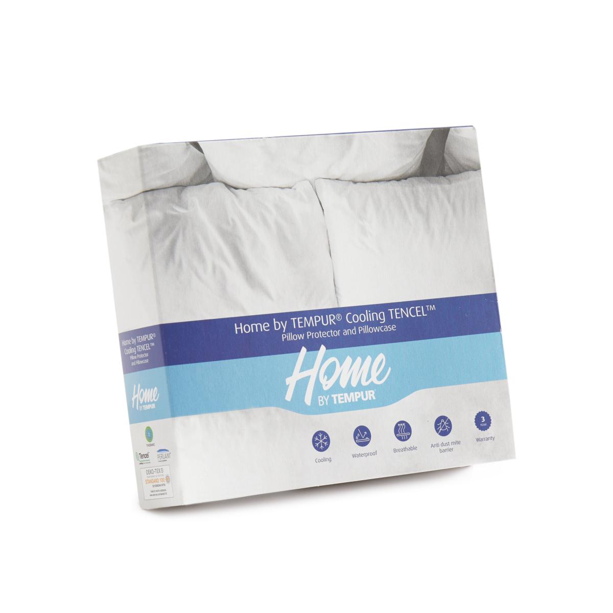 * Made with a breathable Lyocell fabric* Waterproof and cooling technology* Machine washable Our Home By TEMPUR Collection the TEMPUR Cooling Pillow Protector is a 2-in-1 bedding essential which can also be used as a fitted bottom sheet, as well as underneath your favourite bed linen to protect your mattress from accidents and spillages while you enjoy a cooler night’s sleep. The sleeping surface is made from a combination of soft, cool-to-the-touch TENCIL™ fibre with waterproof PERLAM technology to wick away moisture. The breathable PERLAM membrane encourages airflow for a more comfortable night’s sleep. Also integrated into the TENCEL™ are THERMIC microcapsules providing thermoregulating properties to help keep your skin between 28-30ºC all night, for optimum comfort whatever the weather. With an elasticated side skirt to ensure a snug fit to your mattress, the TEMPUR Cooling Mattress Protector acts as an anti dust mite barrier to keep your mattress fresh and clear for longer. Available in 5 sizes this innovative mattress protector also meets meets OEKO-TEX Standard 100, which means it has been tested for harmful substances, poses no risk to health and is kind to your skin.