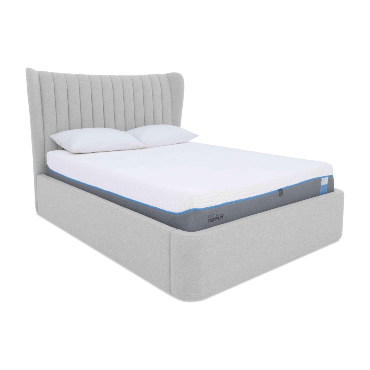 Maximise your bedroom floorspace with the Horton ottoman bedframe from TEMPUR®. You’ll love the spacious storage and statement headboard in your bedroom. Why you'll love it This stylish ottoman bedframe is perfect for smaller bedrooms. Elegant and contemporary. Generous underbed ottoman storage compartment. High-backed winged headboard. Luxuriously upholstered in a choice of 4 fabrics. Available in king and super king sizes. This ottoman bedframe is perfect for modern homes and smaller bedrooms. What you need to know Mattress sold separately. Base type: pine and poplar slats. Ottoman opens at foot end. Mattress weight limit: king 56.5kg, super king 67.5kg. Please take care when opening and closing. Some fabrics can show wear on areas of more use or in direct sunlight. Clean regularly using a soft brush or vacuum with the curtain attachment. Deal with any spills promptly. Professional cleaning advised for oil- and grease-based stains.