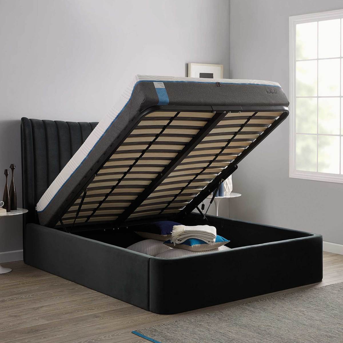 I love the Tempur Horton Ottoman Bed because of its sleek, contemporary silhouette combined with practical storage. Its clean lines and plush, vertically paneled headboard make it versatile for various interior styles-from modern minimalism to luxe eclectic. It works particularly well in rooms that benefit from a smart storage solution, as the ottoman base allows for hidden compartments which keep the space tidy. For styling, pair it with crisp linens and layered textures to create a sophisticated look, or complement it with metallic accents for a touch of glamour. To keep the room balanced, consider soft, neutral tones or dark, moody hues, depending on whether you want a calming retreat or a bold statement bedroom.