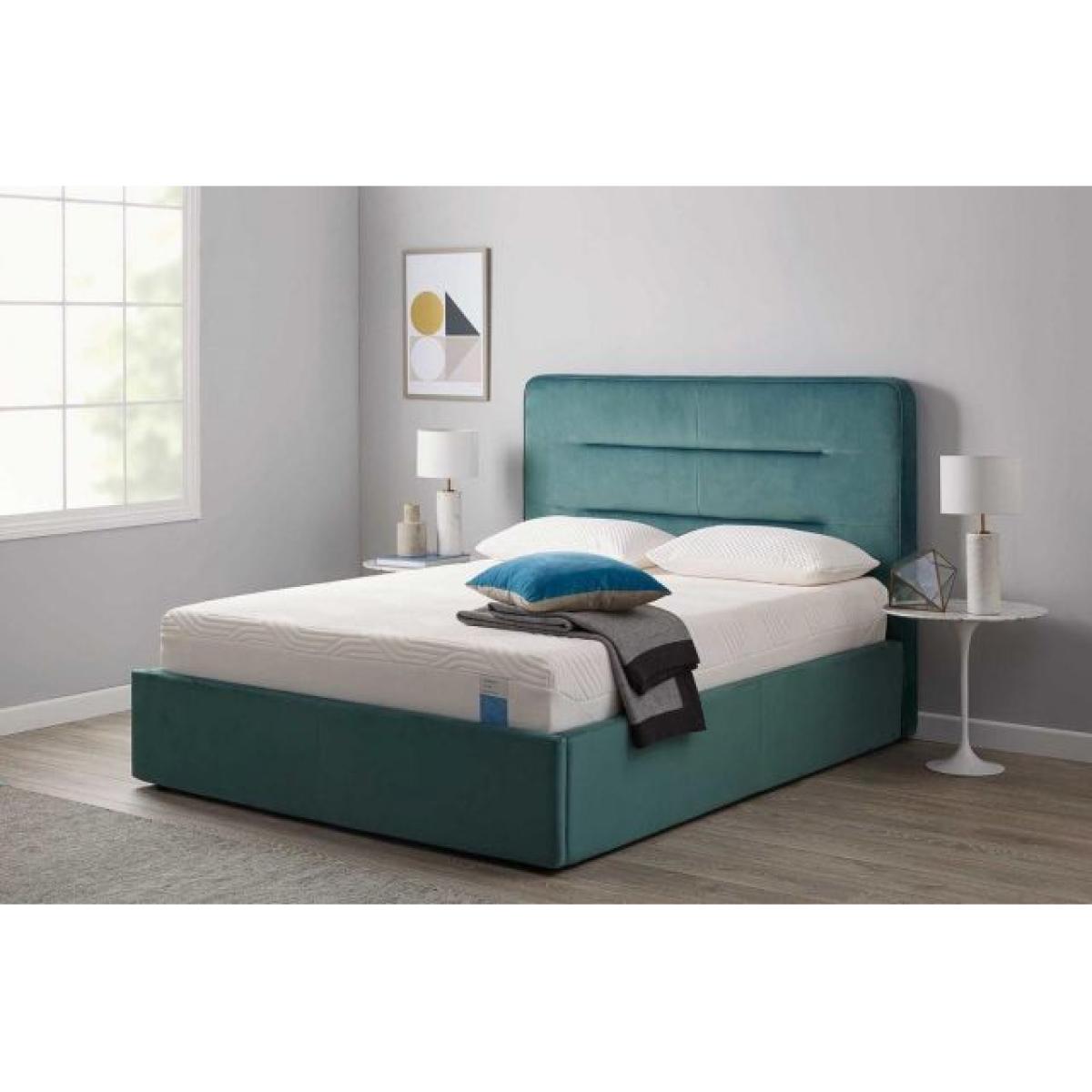 The Tempur Linear Ottoman bed frame is a superb fusion of contemporay and classic design and features a classic plush headboard with horizontal faux panelling. A practical addition to any home simply lift up the Tempur Ottoman bed frame to reveal a handy storage space, perfect for keeping bed linen and other lightweight items stored away. With a range of soft textured fabrics, from velvet effects (Sundance) through to tweeds and twills to choose from, there's sure to be one that will co-ordinate and complement your bedroom colour scheme in equal measure. Where space is at a premium, the headboard has also been designed to fit flush to the wall on this Tempur ottoman bed frame allowing you to maximise your floor space in more confined spaces. Tempur 10 year guarantee Upholsterd integral headboard Discreet moulded feet Easy to use gas lift mechanism to access storage Choice of plush velvet effect and textured fabric finishes Wooden slats that fit in metal frames support the mattress Bed Frame shown in Sundance Amber Maximum stoarage weight approx 20kgs Suitable for all TEMPUR mattreesses (not included and sold seperately) Dimensions;Double - 146cm W x 202cm L x 125cm H (head end) x 36cm H 36cm (foot end)King - 161cm W x 212cm L x 125cm H (head end) x 36cm H (foot end)Super king - 191cm W x 212cm L x 125cm H (head end) x 36cm H (foot end) Bed frame only. Mattress and pillows are not included All screens vary in colour reproduction and whilst every effort has been made to display the colour as accurately as possible it is for guidance only.