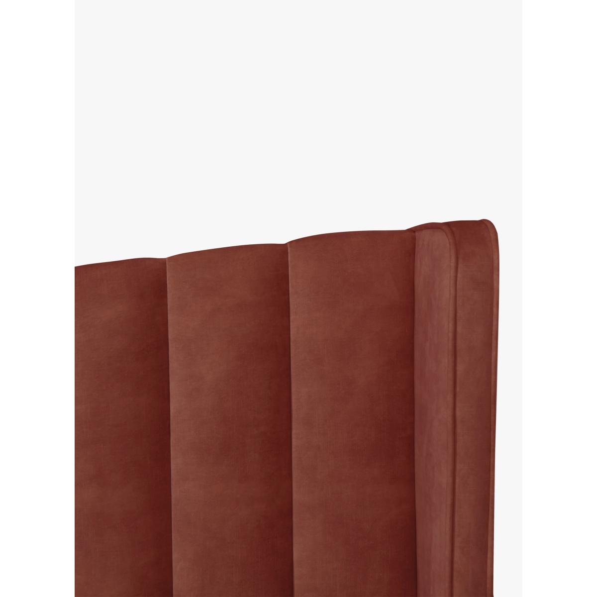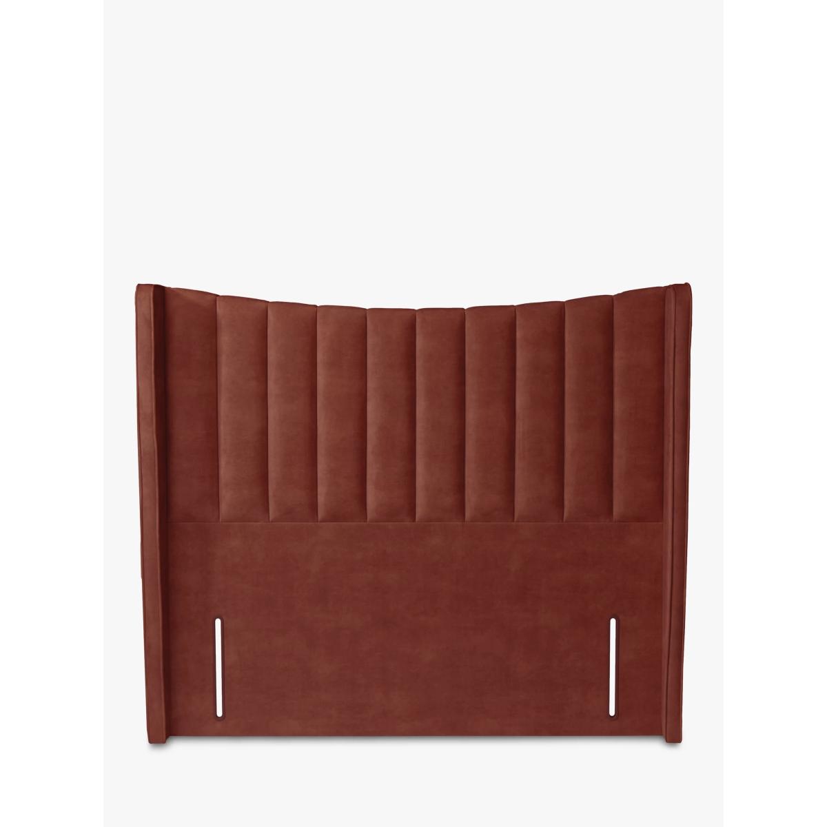 Upholstered in velvet, this striking panelled headboard with winged sides and a slightly curved profile will create a soft, yet regal style in your bedroom. It's a full-depth, freestanding fitting with standard fixings on either side, so it's easy to slot into the back of your divan base. Want to see it first? You may want to see and get a feel for the furniture before ordering. Pop into one of our shops to see the full range of colours and fabrics on offer. We'll be able to tell you where the range you'd like to view is on display.