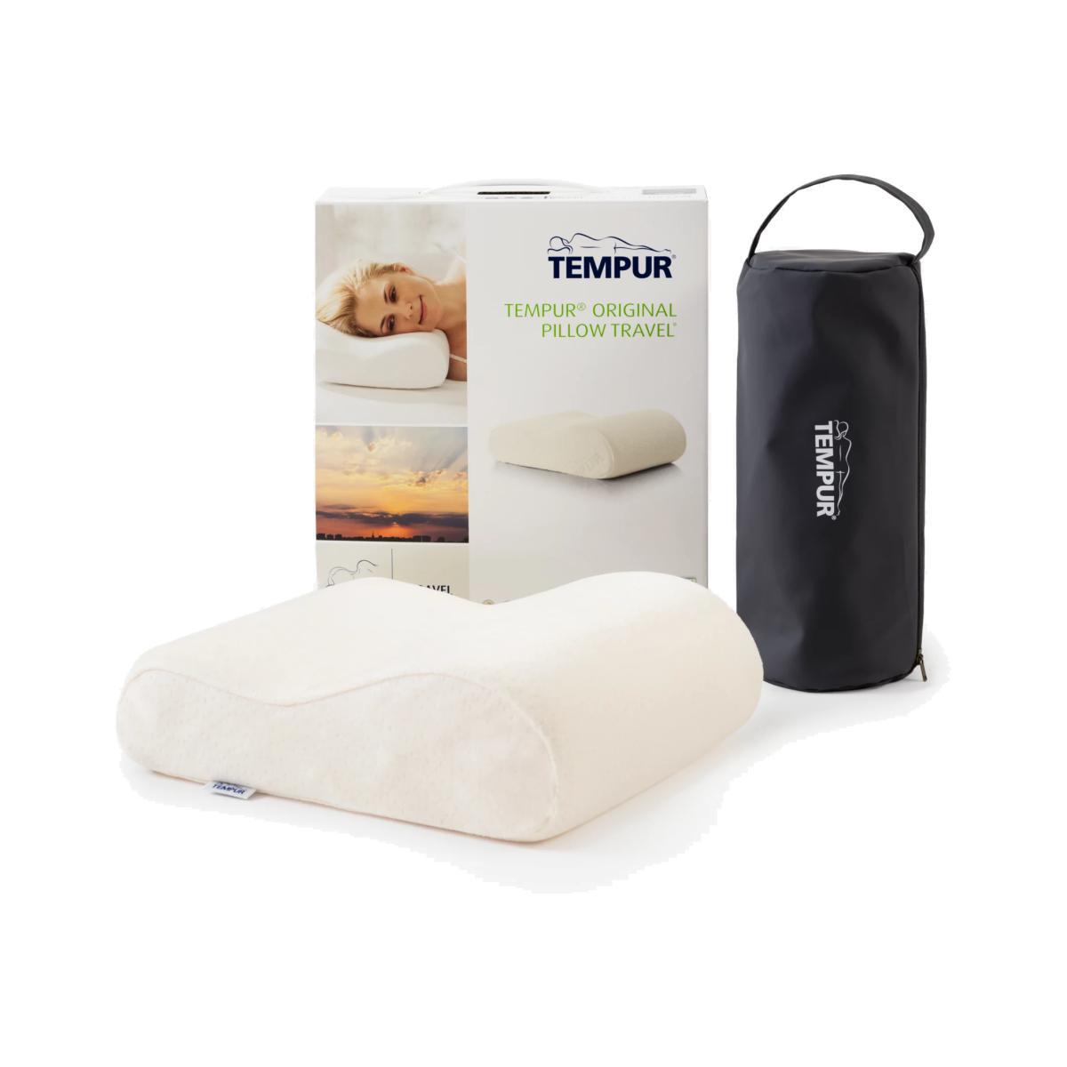 Good for aches and pains The Tempur Original Travel Pillow is ideal for taking away with you. Supplied with a handy travel case to keep it clean, this supportive pillow is suitable for all sleeper types and its visco-elastic filling softens to the natural curvature of your head and neck for instant relief.