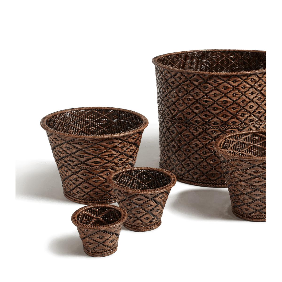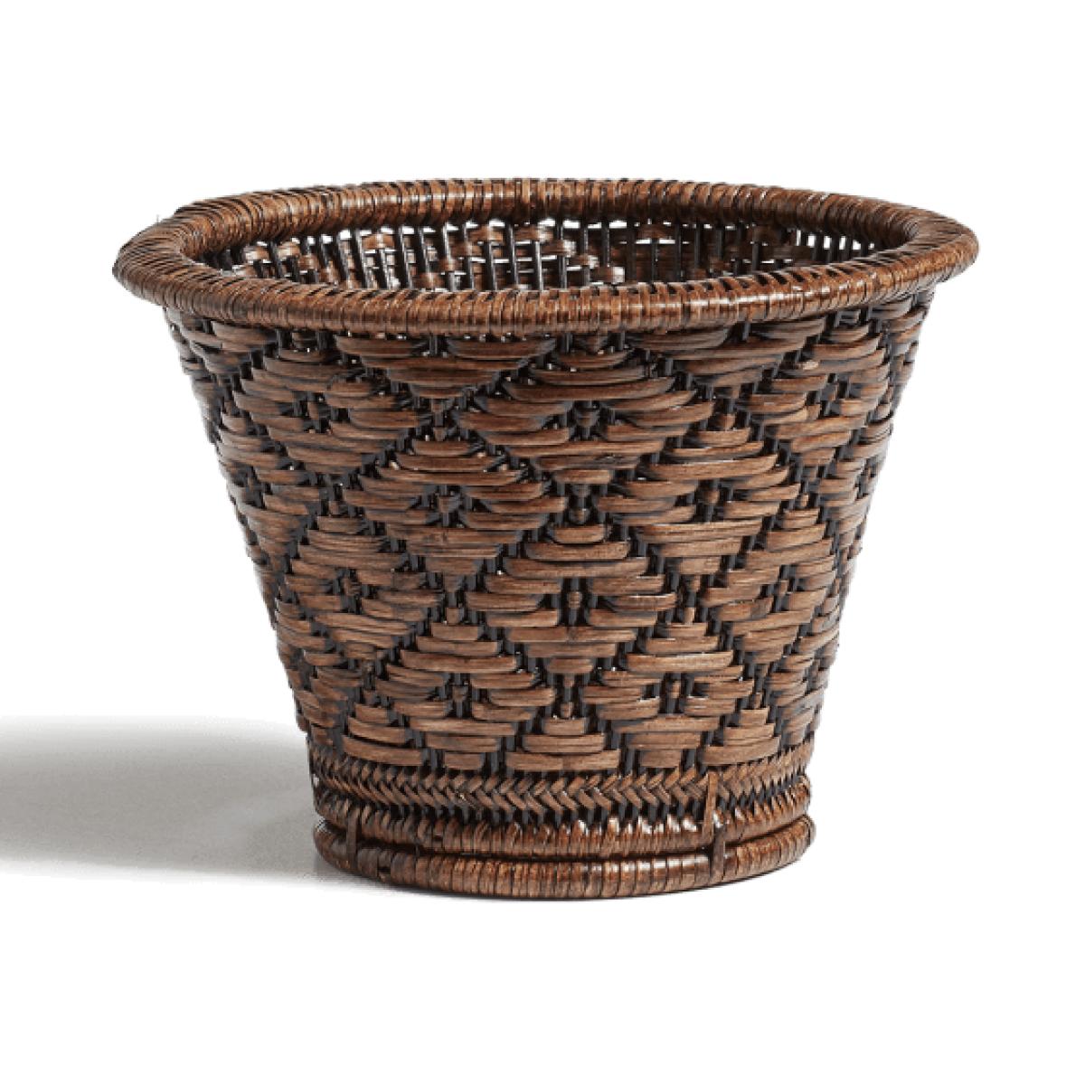 It takes two days for skilled artisans to hand weave each of our Mandalay Planters into their intricate diamond-patterned form. Made from rattan, there are various sizes available to frame your plant pots: this is one size up from the smallest.
