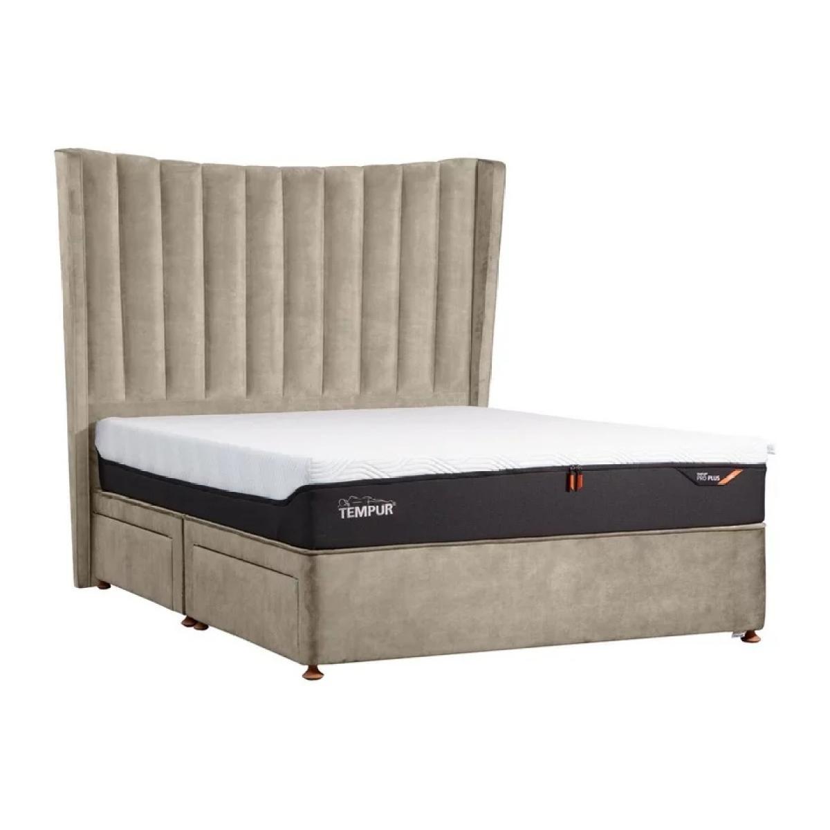 Note - Mattress and headboard pictured are not included but are available to purchase separately. Indulge in the sophistication of the TEMPUR® Suffolk Divan range, expertly crafted from top-tier FSC timber with dovetail jointed drawer construction. With the ability to tailor your sleeping sanctuary, choose from a standard non-drawer deep divan with the flexibility of four continental drawers. Alternatively, elevate your bedroom aesthetic with the high-leg slim divan or opt for the practicality of an ottoman base. The Suffolk Divan range presents a luxurious array of options, featuring four distinct headboard choices available in a palette of 15 exquisite fabrics. KEY FEATURES: Platform Top - The base features a solid wooden top which is upholstered in fabric. This type of base will provide a supportive feel to the mattress. High-quality drawers made from hardwood timber and materials along with robust construction techniques to provide superior storage space. Glides - Stylish wooden glides support the divan base adding a luxurious feel to any room. Available in a range of fabrics and colours. Made from FSC-certified timber. This base comes as a vertically split base. Match this base with any of the Tempur Suffolk headboards DIMENSIONS: Single Size - W 90cm x L 190cm Double Size - W 135cm x L 190cm King Size - W 150cm x L 200cm Super King Size - W 180cm x L 200cm Base Height including glides - 40cm All screens vary in colour reproduction and whilst every effort has been made to display the colour as accurately as possible it is for guidance only.