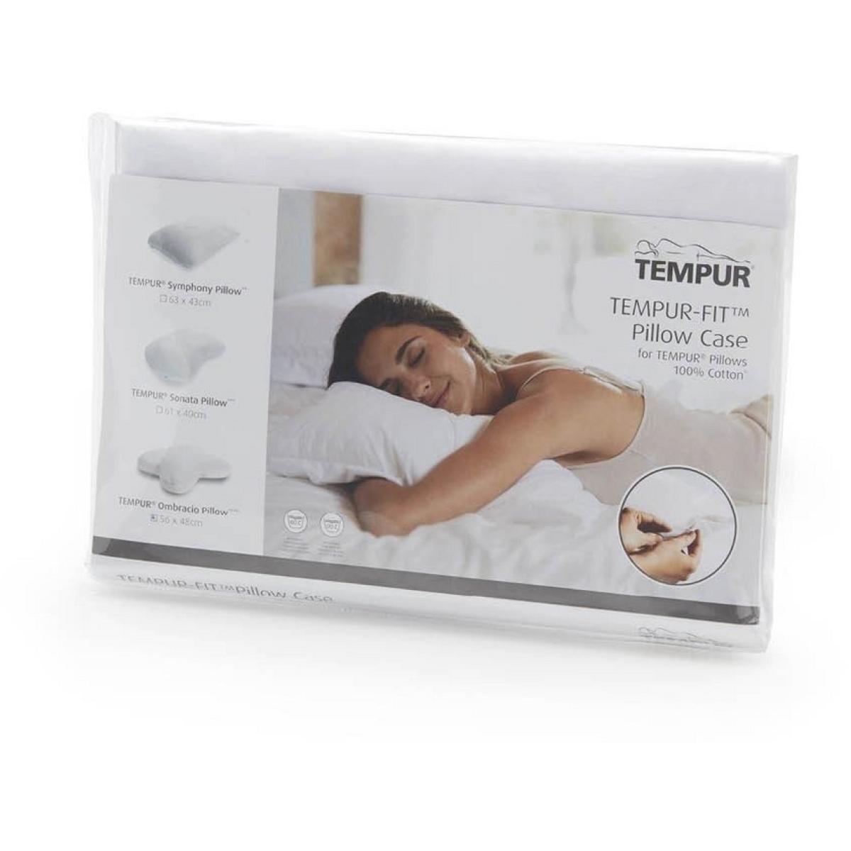 Made from 100% top-quality cotton, a TEMPUR-FIT™ Ombracio Pillow Case is the perfect match for the unique star shaped TEMPUR® Ombracio Pillow, delivering crease free comfort to help you sleep. The zipped case is designed to fit loosely around your pillow so you can fluff and puff it just the way you like it, ensuring the TEMPUR® particles do not stick together so comfort and support is maintained. All dyes and materials used in the manufacture of this item are free from chemicals such as chlorine and formaldehyde. Durable and hardwearing, the TEMPUR-FIT™ Ombracio Pillow Case is easy to wash and care for with no ironing needed! KEY FEATURES: 3 year guarantee against manufacturing defects and stitching Zipped pillow case for the unique star shaped TEMPUR Ombracio pillow measuring 60cm x 50cm Designed to have a loose fit, so you can fluff and puff your pillow into your favourite shape Made from luxury 100% knitted jersey cotton, 160 g/m2, 60/1 yarn Durable and hard wearing White cases washable at 90°C, tumble dry at low temperature No ironing, just wash, dry and use Made from cotton grown in India Please note the pillow itself is not included in the price - it is for demonstration purposes only.