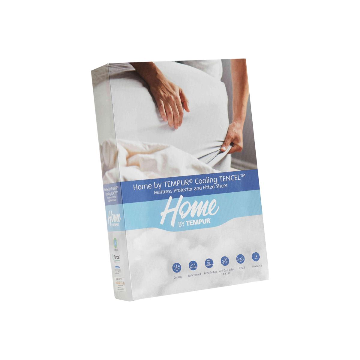 This is a real innovation in sleep technology. A mattress protector and fitted sheet in one, it keeps you comfortably cool while the waterproof, anti-mite barrier extends the life of your mattress. Why you'll love it 2-in-1 Tencel mattress protector and fitted sheet will change the way you sleep. Promotes cooler sleep and extends the life of your mattress. Thermo-regulating properties keeps skin at a comfortable 28° to 30°. Breathable and waterproof. With anti-mite barrier protection. Machine washable. 3-year guarantee. The TEMPUR Tencel mattress protector and fitted sheet is part of our TEMPUR collection. What you need to know 100% Lyocell with 100% Polyurethane backing. Fits mattresses up to 30 cm deep. Available in small single, single, double, king and super king mattress sizes. Machine washable at 60°. Tumble dry low. Do not iron.