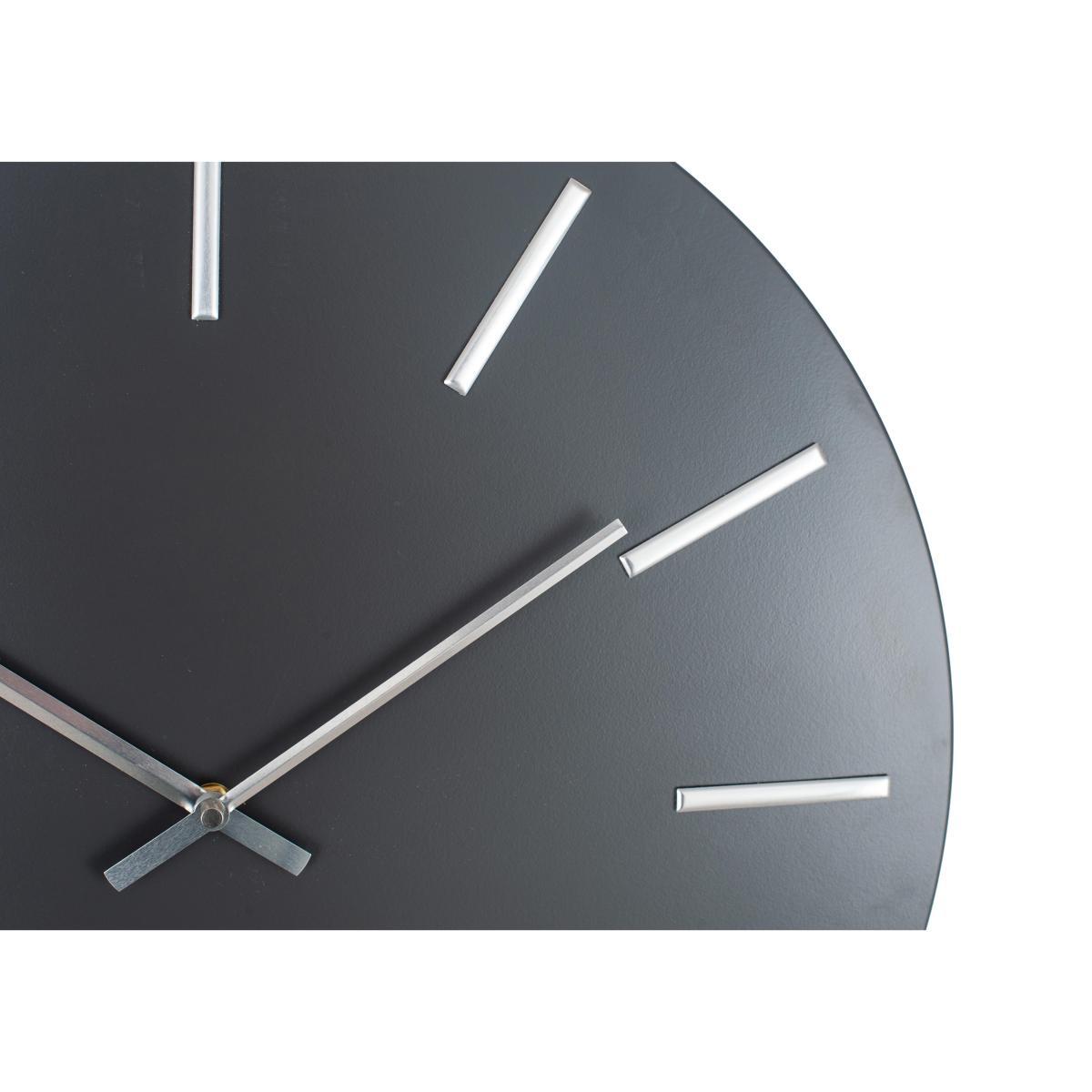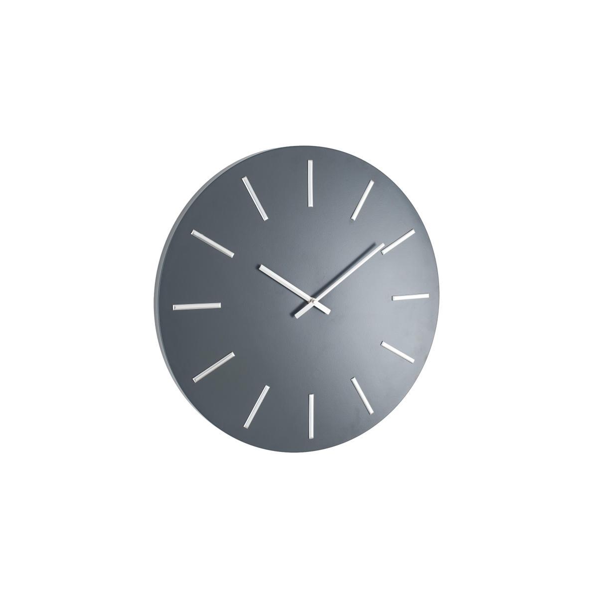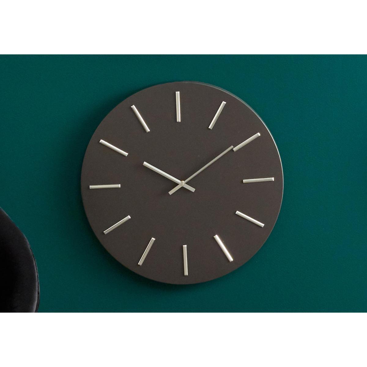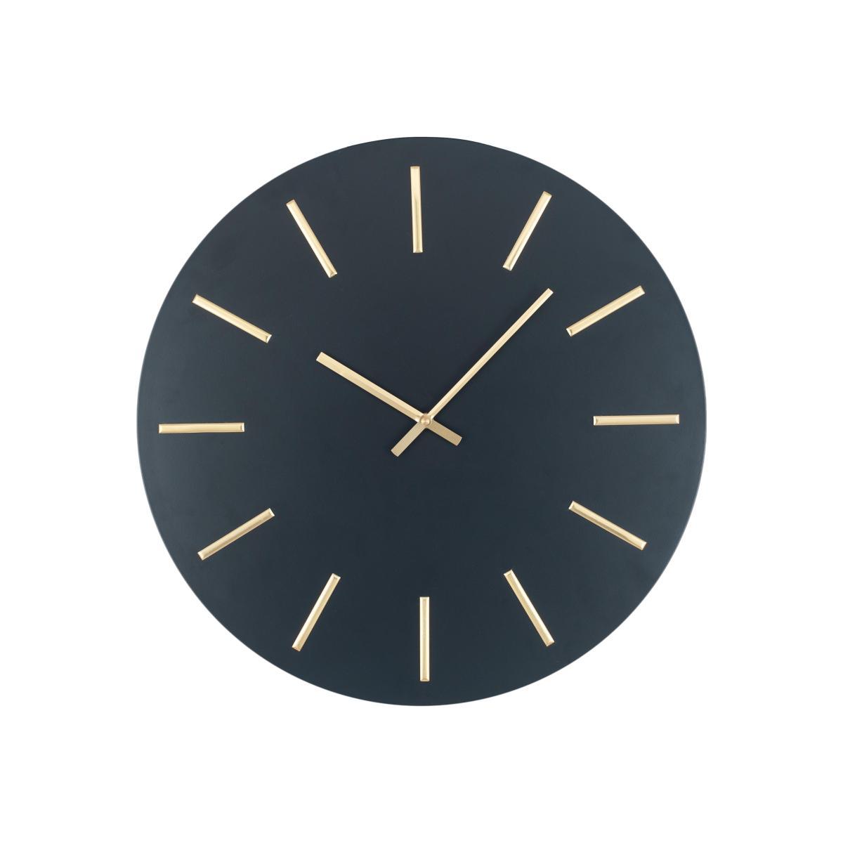 This simple circular wall clock’s bold design is made for the modern home. In distinctive black and gold, or dark grey and silver. Why you’ll love it. Bold statement wall clock. Simple modern style. Frameless design. In black and gold or dark grey and silver. Perfect for smart, contemporary interiors. What you need to know. Iron face, aluminium hands. Requires AA batteries (not included). Dimensions. Width: 50 cm (19.7 inches). Depth: 4.3 cm (1.7 inches). Height: 50 cm (19.7 inches).
