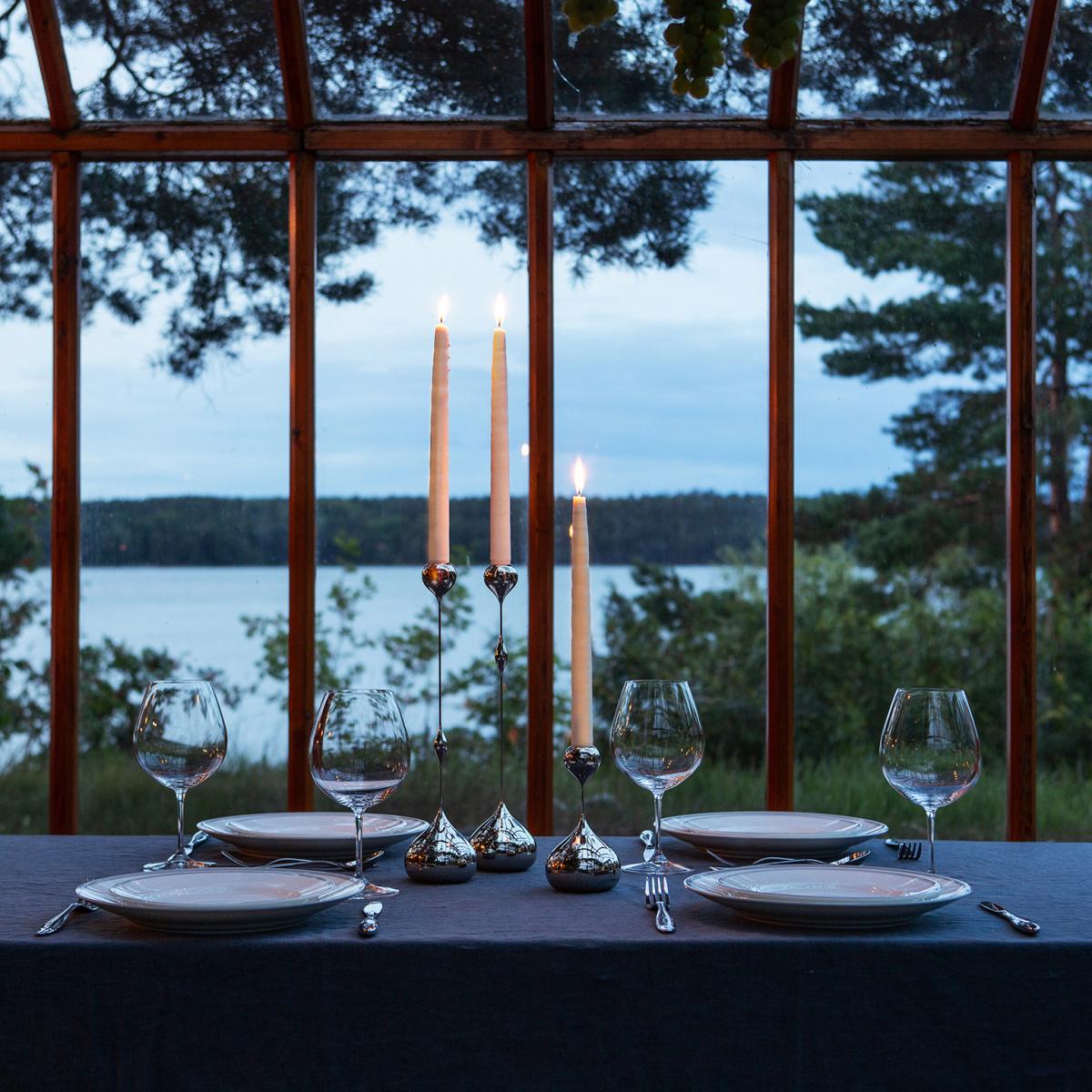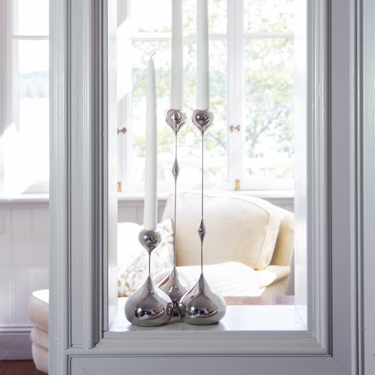 I love this candle holder because of its sleek, modern silhouette and high nickel finish, which adds a touch of contemporary elegance. It works well in minimalist, industrial, or even glam interiors, thanks to its clean lines and metallic sheen. For styling, try placing it on a neutral mantelpiece or a glass dining table to let its reflective surface shine. Pair it with simple votives or taper candles for a sophisticated look, and consider mixing it with other metallic accents for a layered, curated effect. Its slim profile also makes it versatile for both small side tables and larger centrepieces, making it a practical choice for various styles of interiors.