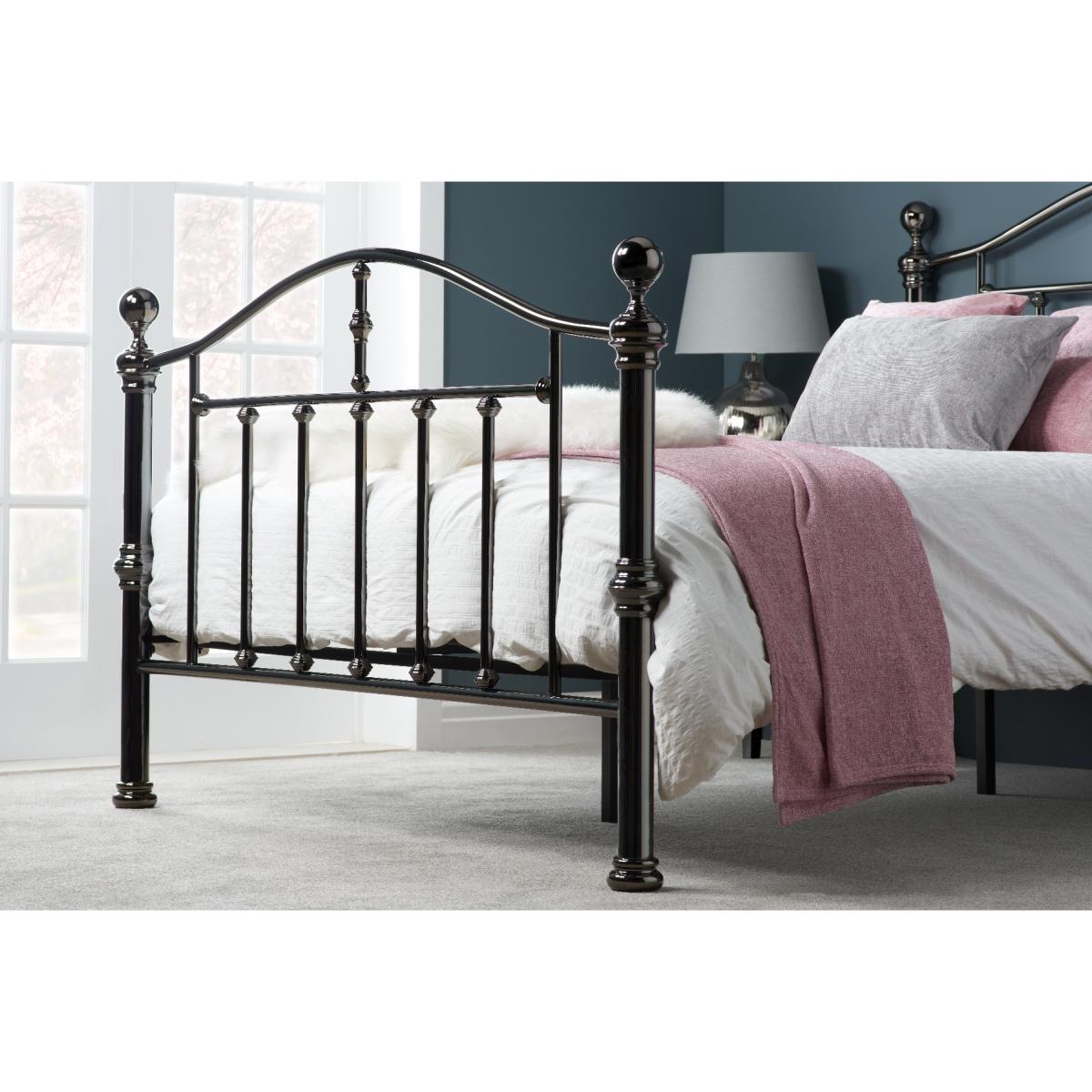 Coloured finials and beautiful black railings, this is the ideal bed for a classically finished bedroom. Nickel finials Traditional design Stunning black finish 150cm bed frame
