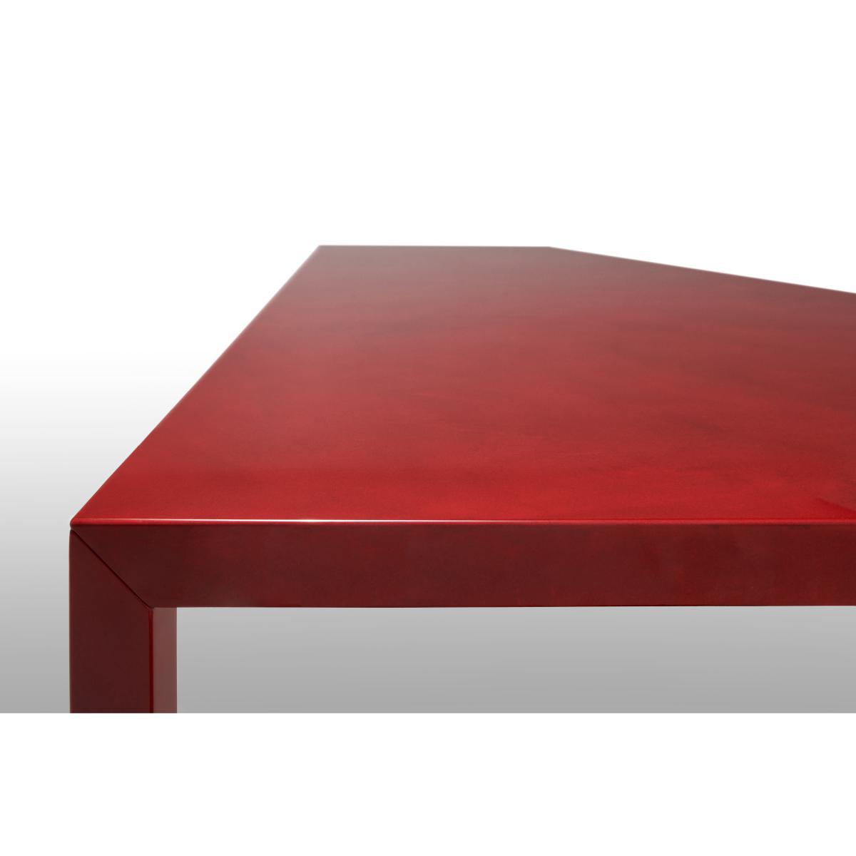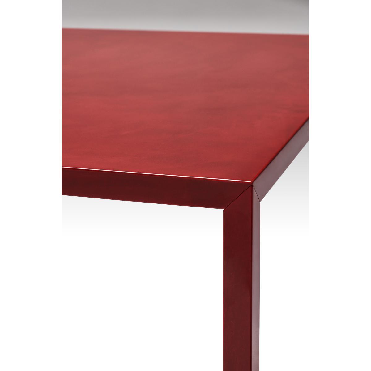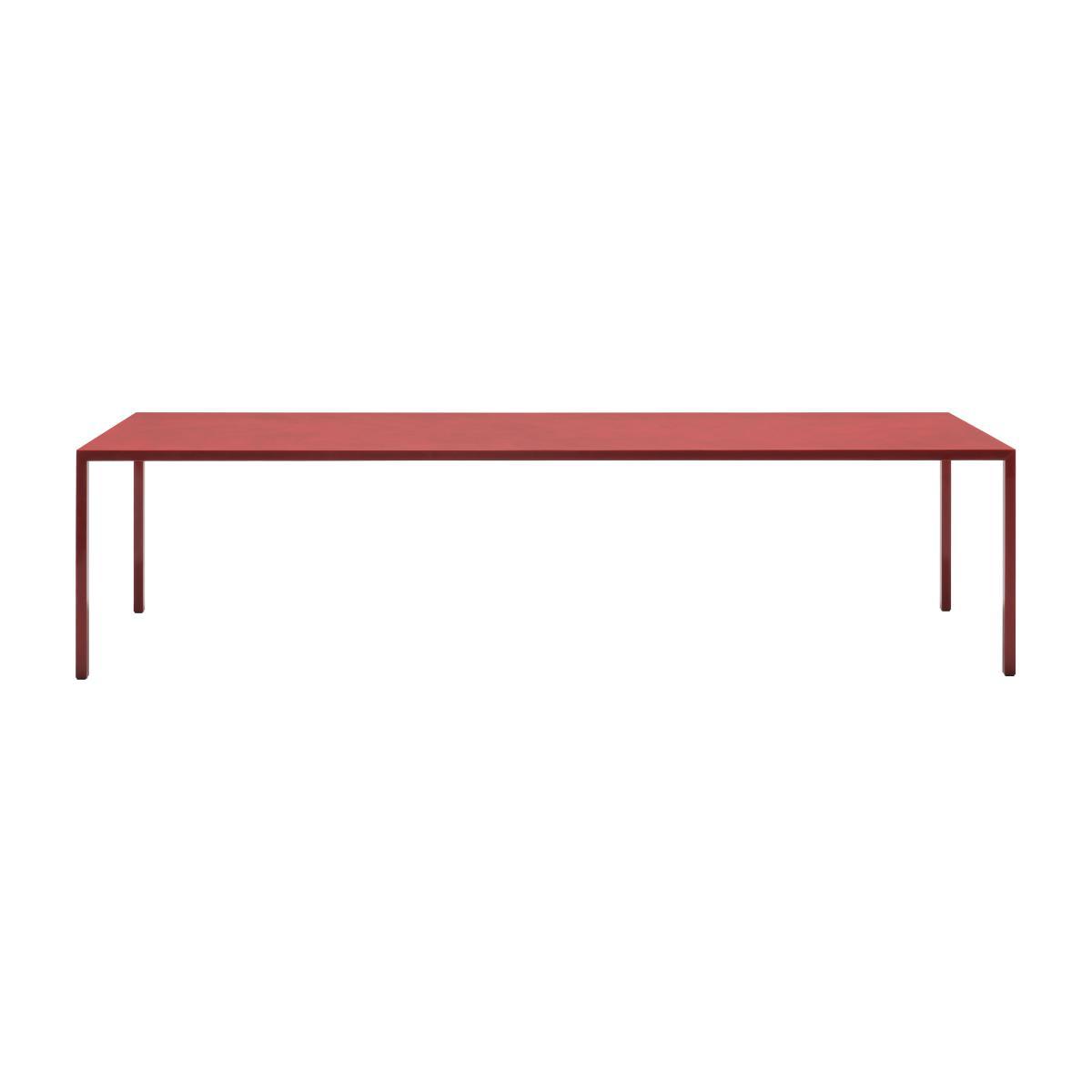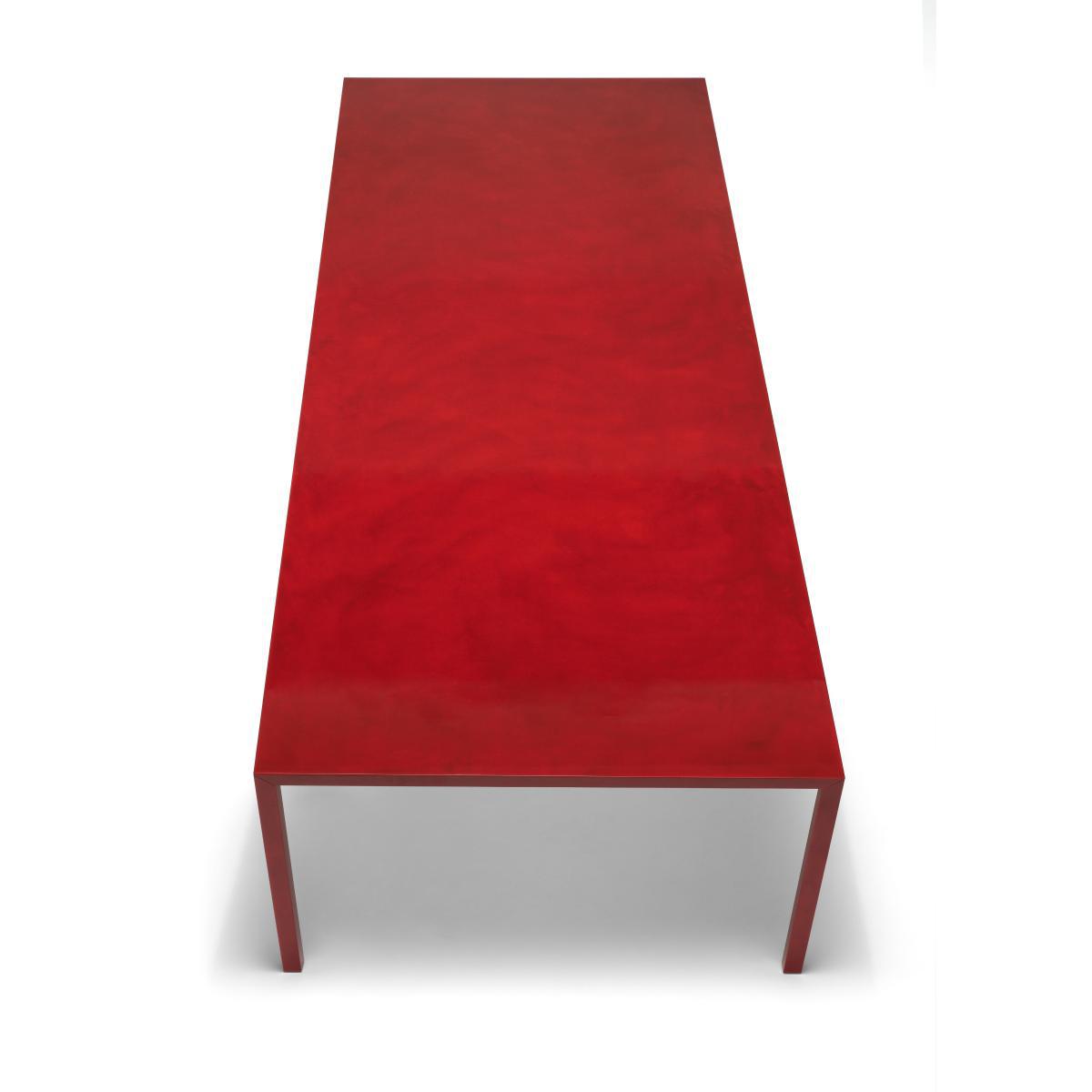 Flamboyant red and a super-shiny monochrome finish. The Tense table is the result of a handcrafted process, inspired by the traditional technique of Chinese lacquer. This table is entirely covered with acrylic resin. The coloured resin is covered with four layers of transparent resin that’s applied by hand. Between each layer, the material is polished by hand to provide extraordinary shine. The ultra-thin top (3. 5 cm) consists of a polystyrene filling encased in two sheets of aluminium. This innovative structure creates very large tops that maintain perfect flatness while remaining incredibly light and thin. Even with its imposing dimensions, the Tense table always gives an extraordinary impression of lightness. It doesn’t interrupt your space or impose with its presence, and can fit into any decor. Its minimalist, basic form is suited to very modern interiors as well as more traditional ones. Thanks to a wide variety of dimensions, the Tense table adapts to whatever use is required of it: house, office, restaurant or bar. It can reach exceptional dimensions (up to 4. 80 metres long): ideal for use in very large spaces (meeting rooms, lofts etc).