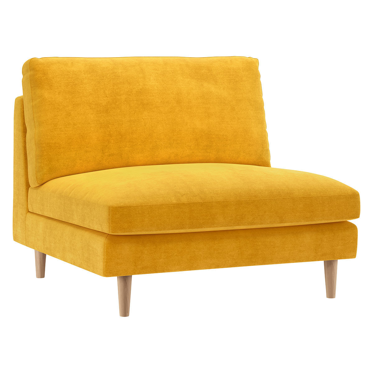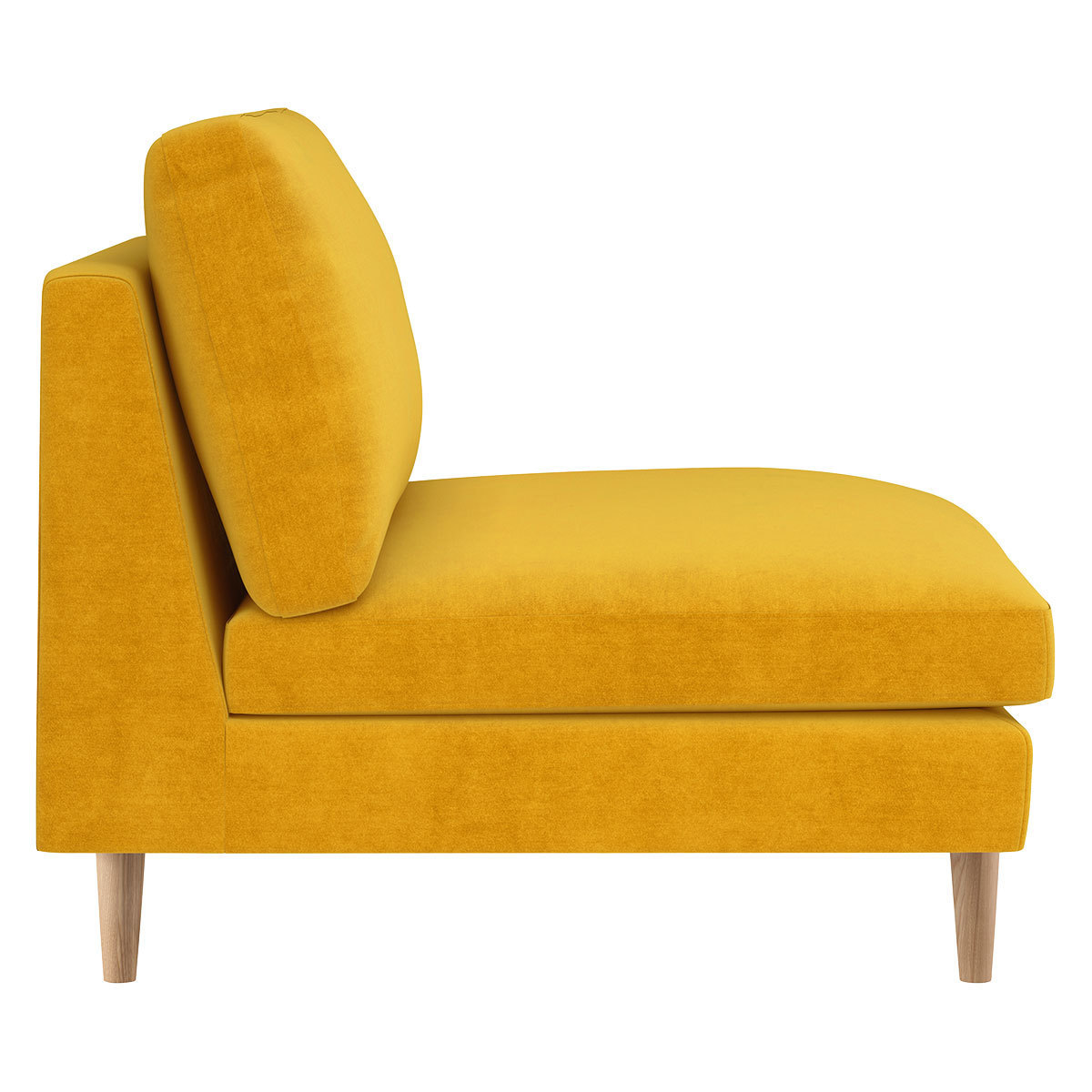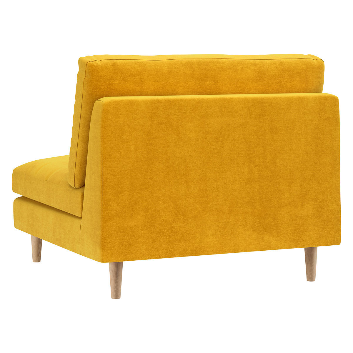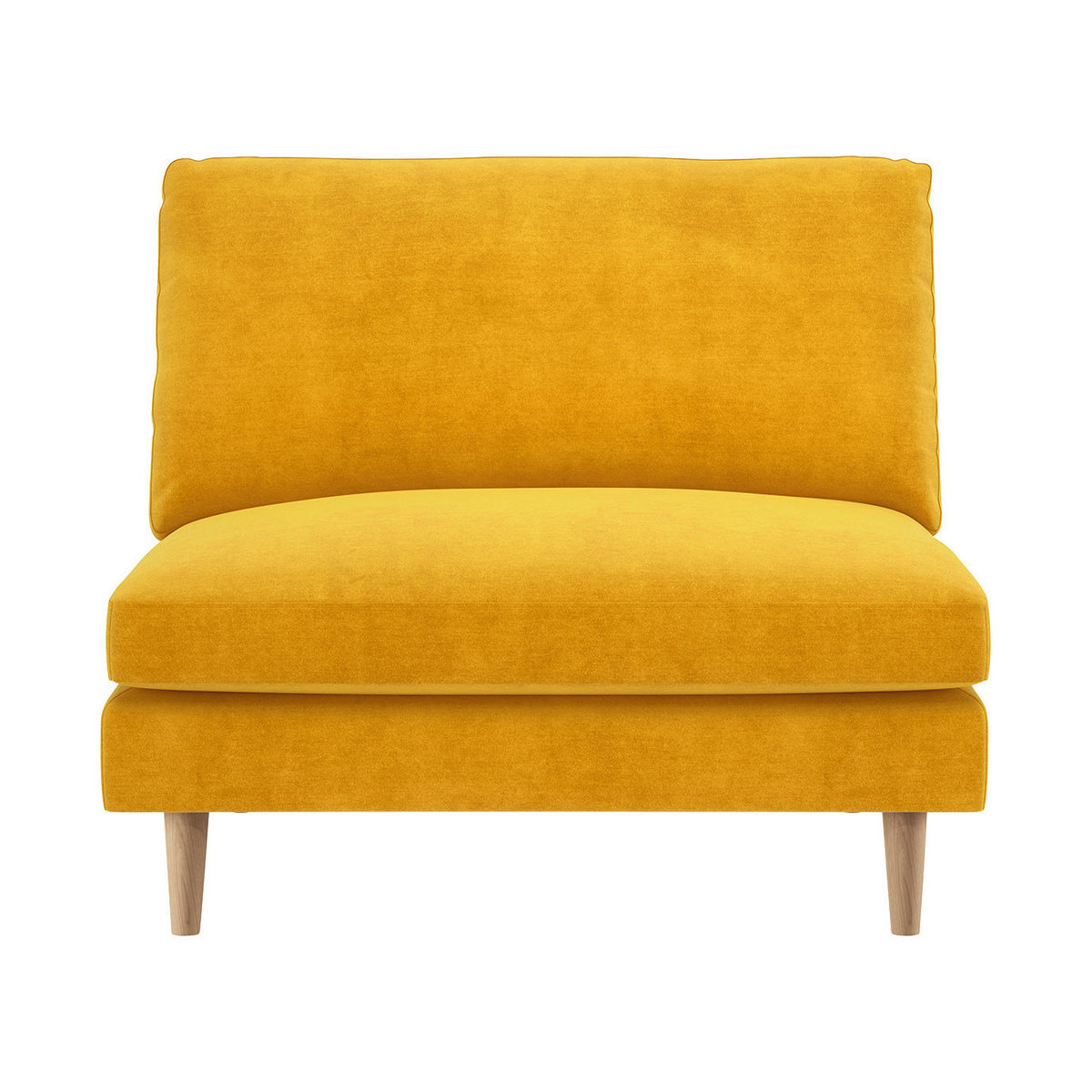 With its pared-back design and plump, pillow-like seat and back cushions, the Teo yellow velvet armchair has a fun feel and a small footprint. Created in the Habitat Design Studio and made in Europe, the contemporary foam and fibre sofa has a relaxed, informal look, enhanced by its wrapped cushion covers. Its armless design and dowelled wood legs give the design a light, airy feel, perfect for smaller spaces. Upholstered in our most luxurious velvet, this cotton blend fabric has a deep pile so is extremely soft to touch while also being hardwearing. Exclusive to Habitat, the Teo sofa is available in 3 sizes and a choice of colours and fabrics.