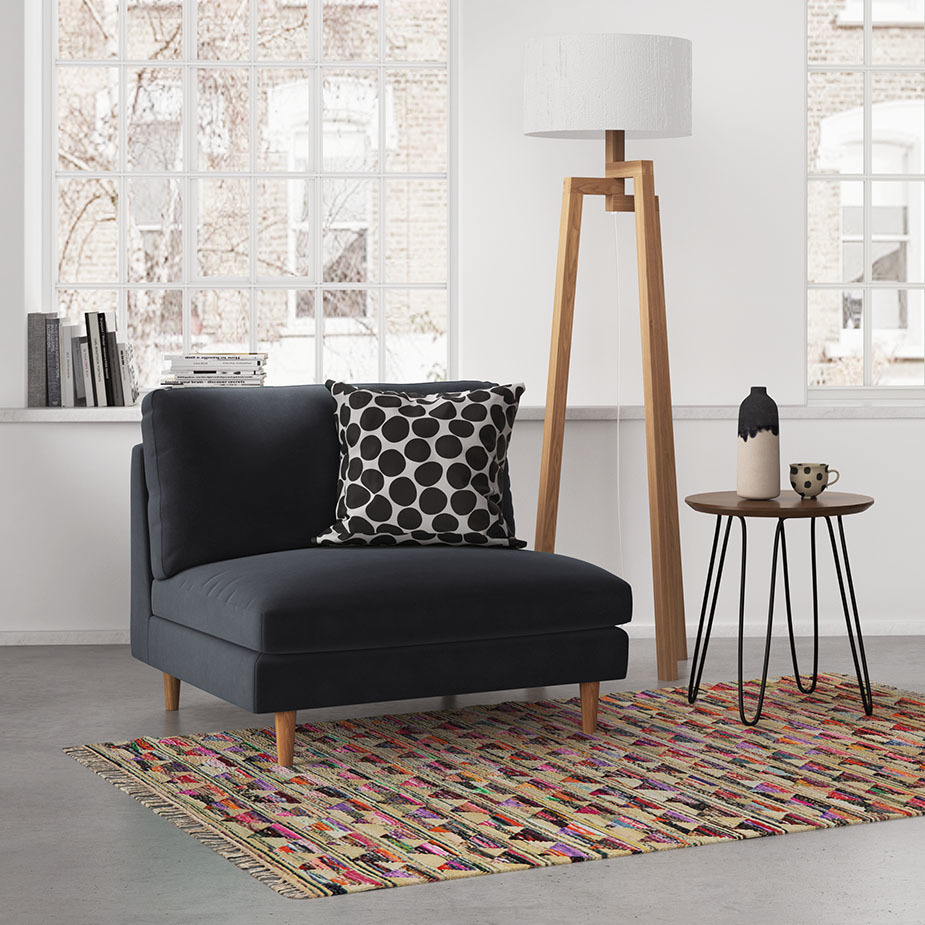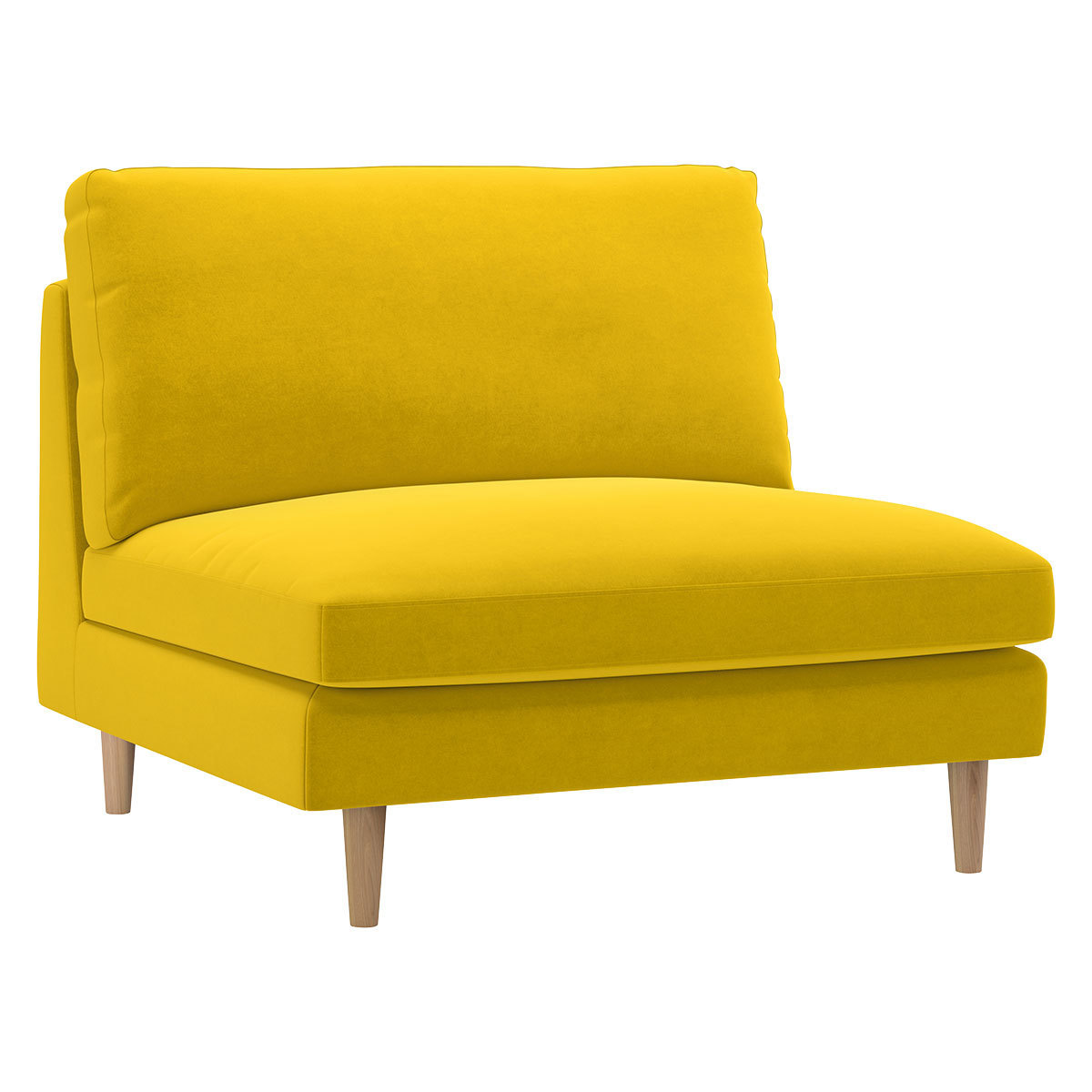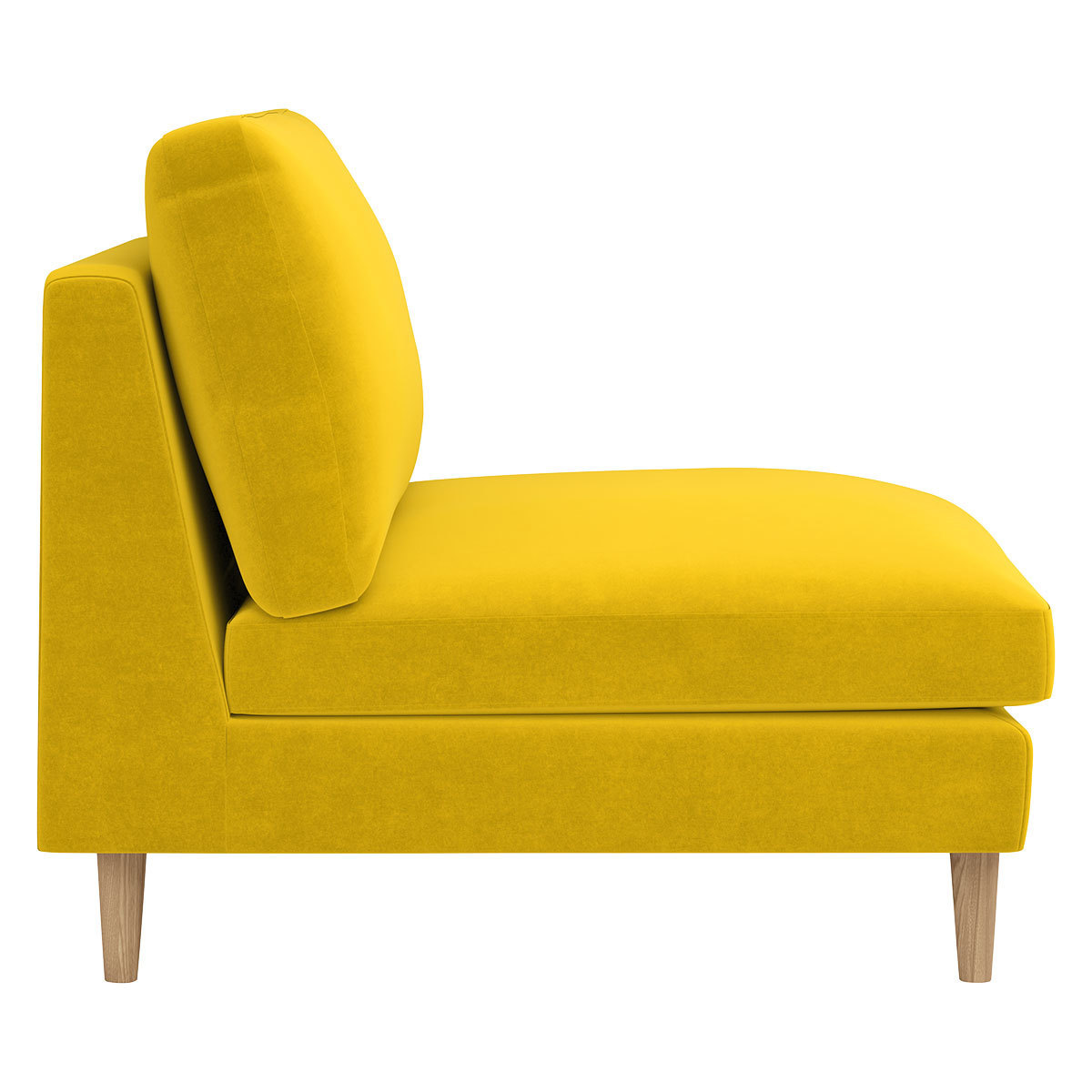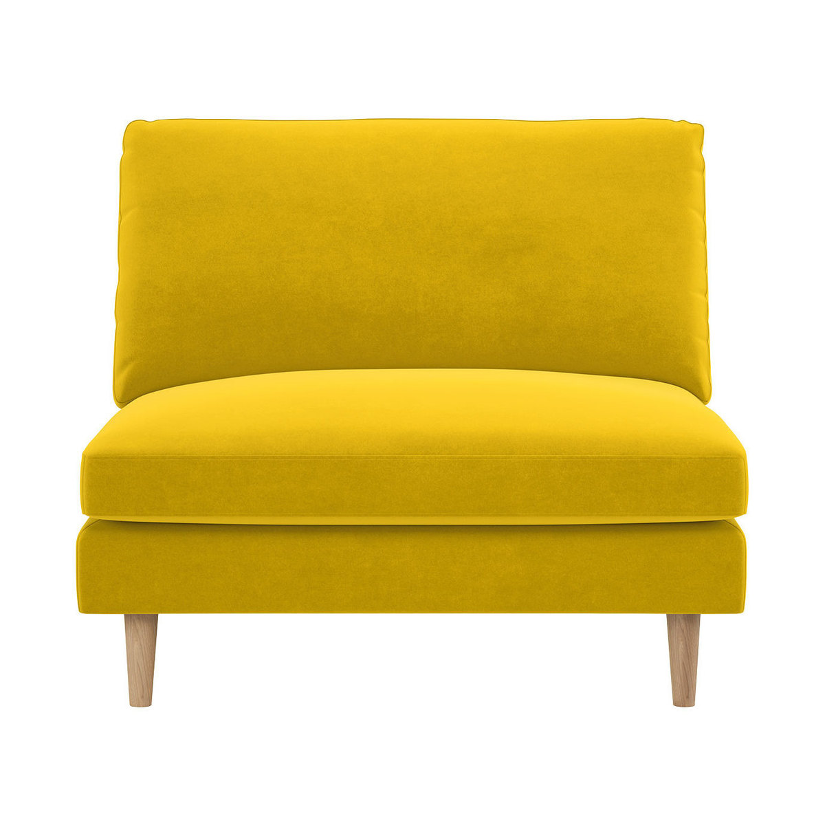 With its pared-back design and plump, pillow-like seat and back cushions, the Teo yellow Jade velvet armchair has a fun feel and a small footprint. Created in the Habitat Design Studio and made in Europe, the contemporary foam and fibre sofa has a relaxed, informal look, enhanced by its wrapped cushion covers. Its armless design and dowelled wood legs give the design a light, airy feel, perfect for smaller spaces. Upholstered in our easy velvet fabric which is super durable and spill-resistant, it’s perfect for busy homes. Exclusive to Habitat, the TEO sofa is available in 3 sizes and a choice of colours and fabrics.