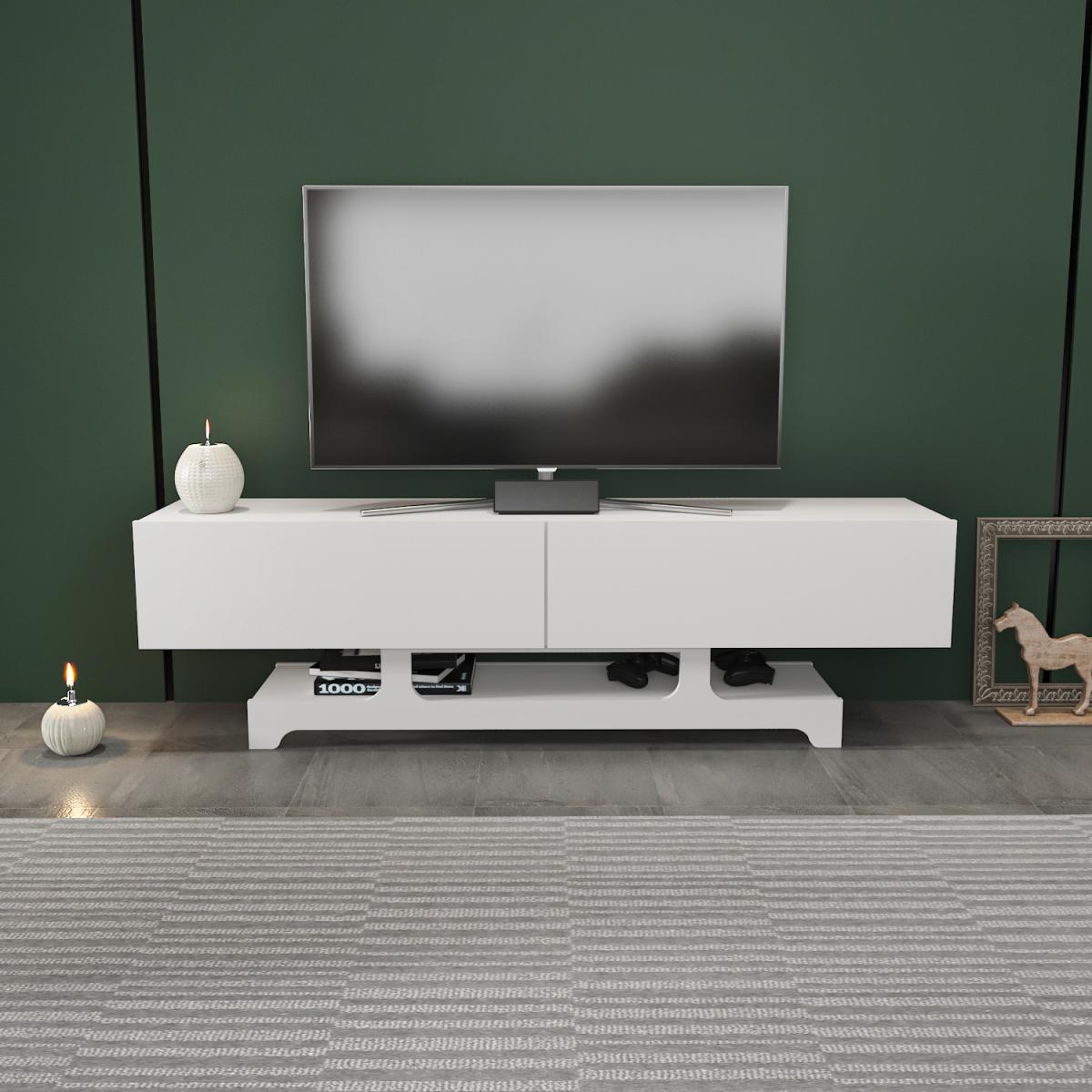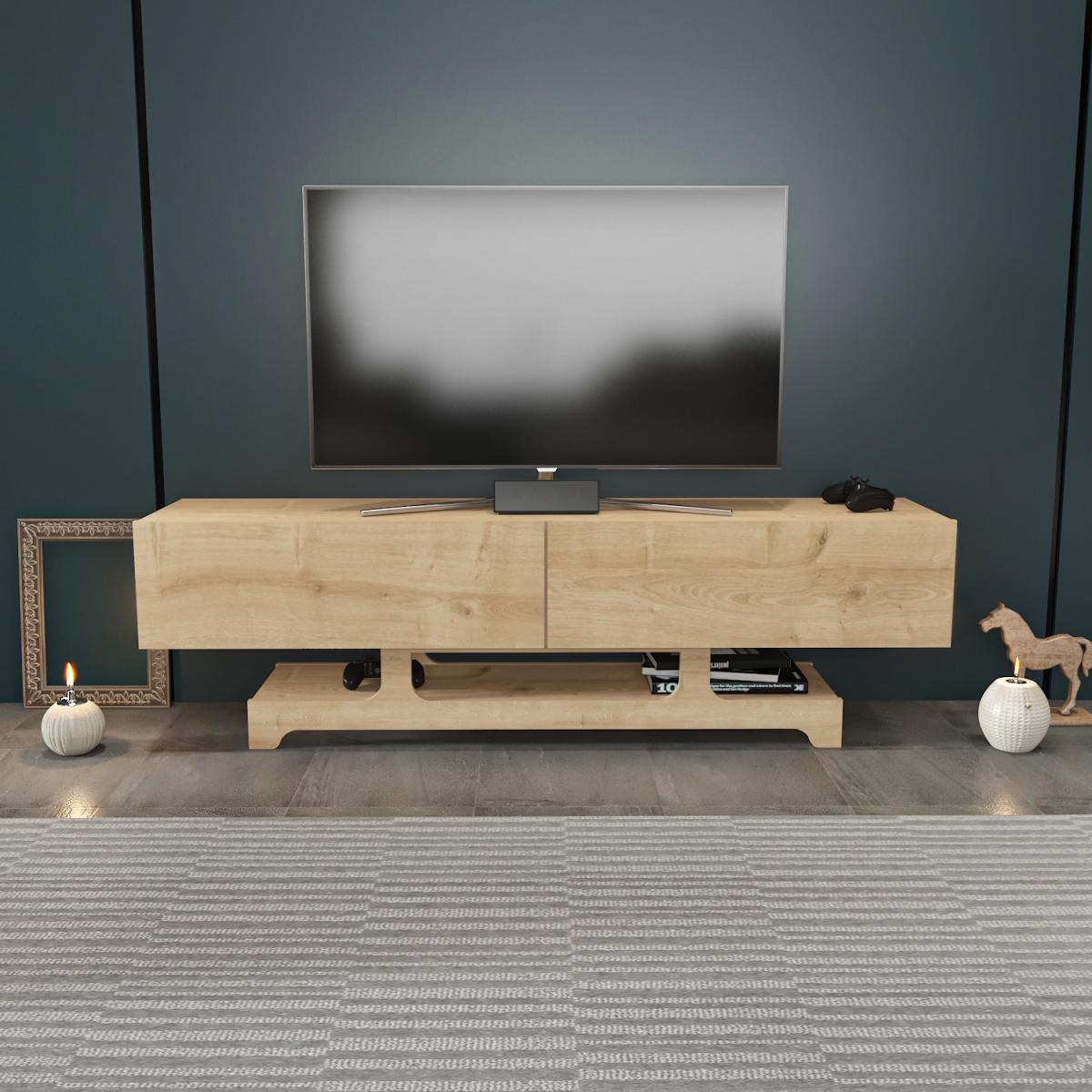 Tera 160 cm wide TV stand and media console for TVs up to 72" will shine in your room while storing your entertainment sets. It has 2 huge drop-down cabinets and 1 huge shelf underneath that will provide lots of storage easily. The media stand is made of 18mm thick quality melamine-coated particle board and banded with first-class PVC edge banding tape. It is manufactured using eco-friendly and health-friendly TSE-certified materials. The product will be delivered to the customer in the original package as disassembled. It is designed to be assembled by the customer easily using simple household tools like a power drill. Assembly instructions and installation hardware are included in the package. For fast and error-free installation, product parts are numbered with stickers in accordance with the assembly guide.