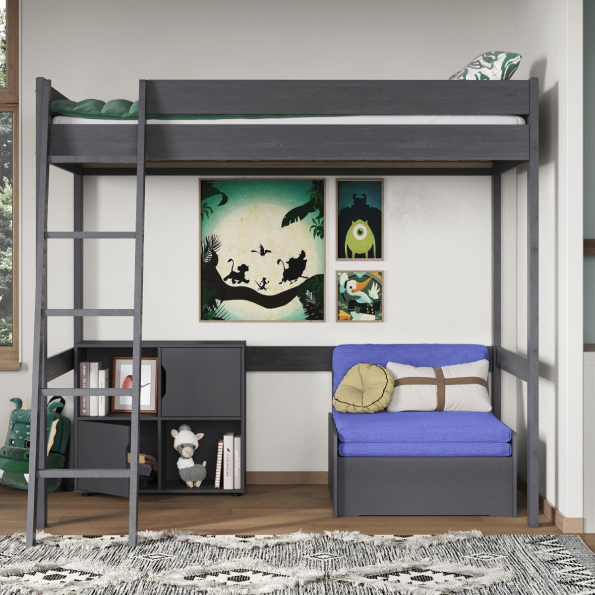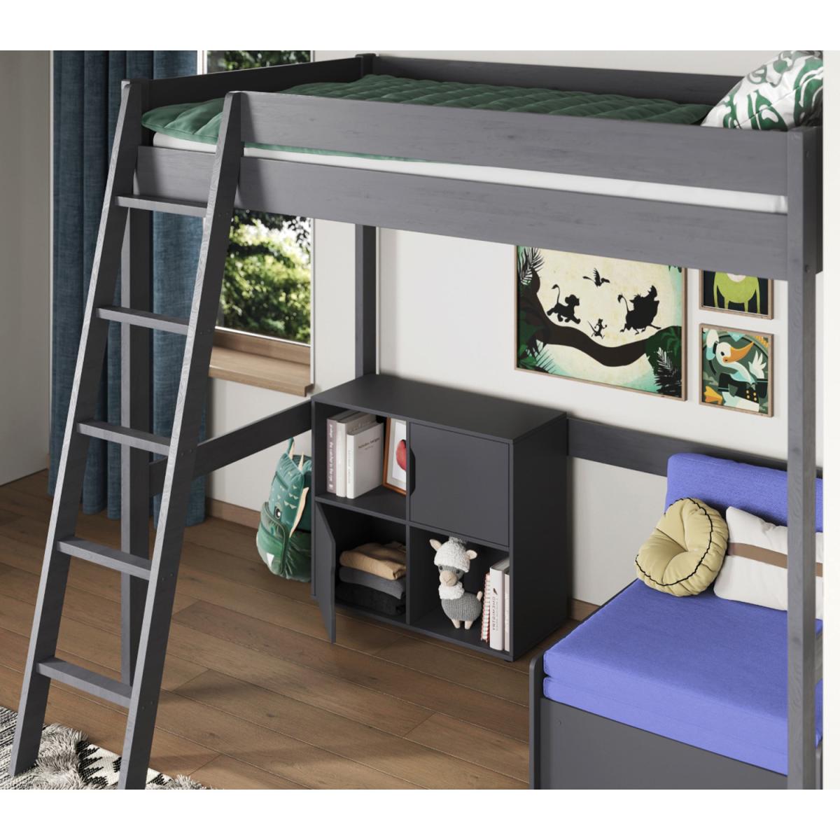 Part of the Tera range is the High Sleeper with Futon. This stunningly crafted High Sleeper bed frame is available in single and small double size combined with an underbed pull out futon in 6 colour options. This has been designed to meet the needs of adults, teens and children alike. With the introduction of the futon by popular demand, you will be able to maximise your bedroom floor space as the 2 stage pullout bed can be compactly retracted back into a comfortable chair. This Tera is available in a single continental or small double continental mattress configuration for the top bed and with a pullout futon for the bottom bed. We recommend no more than a 16cm thick mattress for this product due to safety reasons. The Pine is coated with a non-toxic, eco-friendly water-based paint in both a White and Grey option. Each piece of pine is moisture tested to ensure a strong, long-lasting build. Noomi uses only ethically sourced Solid Scandinavian pine, which grows straighter, stronger and with fewer knots due to the cold atmosphere in the Nordic regions.