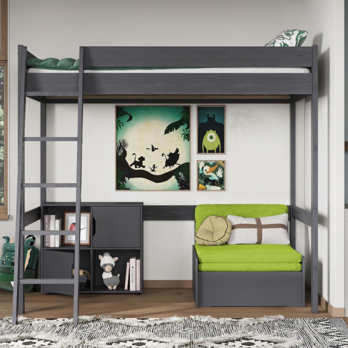 Part of the Tera range is the High Sleeper with Futon. This stunningly crafted High Sleeper bed frame is available in single and small double size combined with an underbed pull out futon in 6 colour options. This has been designed to meet the needs of adults, teens and children alike. With the introduction of the futon by popular demand, you will be able to maximise your bedroom floor space as the 2 stage pullout bed can be compactly retracted back into a comfortable chair. This Tera is available in a single continental or small double continental mattress configuration for the top bed and with a pullout futon for the bottom bed. We recommend no more than a 16cm thick mattress for this product due to safety reasons. The Pine is coated with a non-toxic, eco-friendly water-based paint in both a White and Grey option. Each piece of pine is moisture tested to ensure a strong, long-lasting build. Noomi uses only ethically sourced Solid Scandinavian pine, which grows straighter, stronger and with fewer knots due to the cold atmosphere in the Nordic regions.