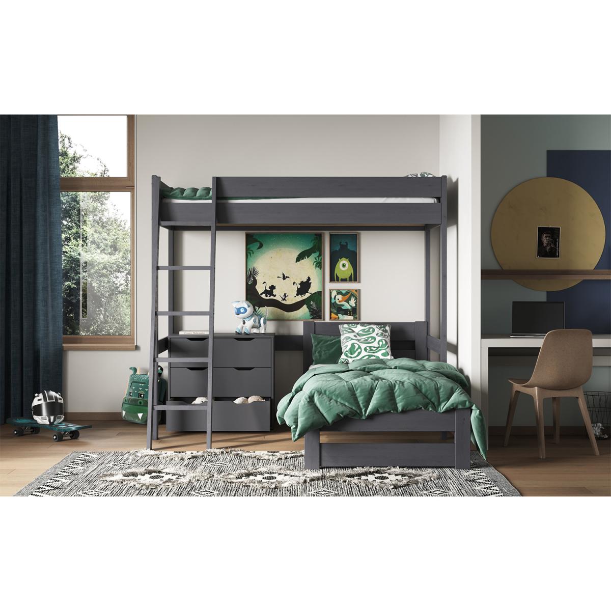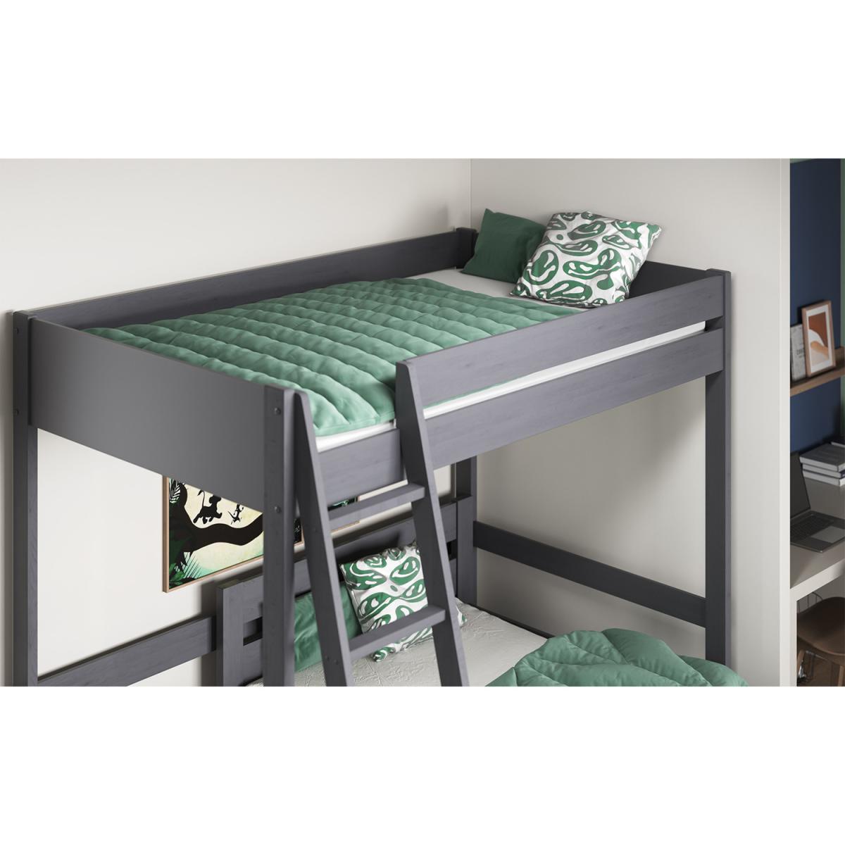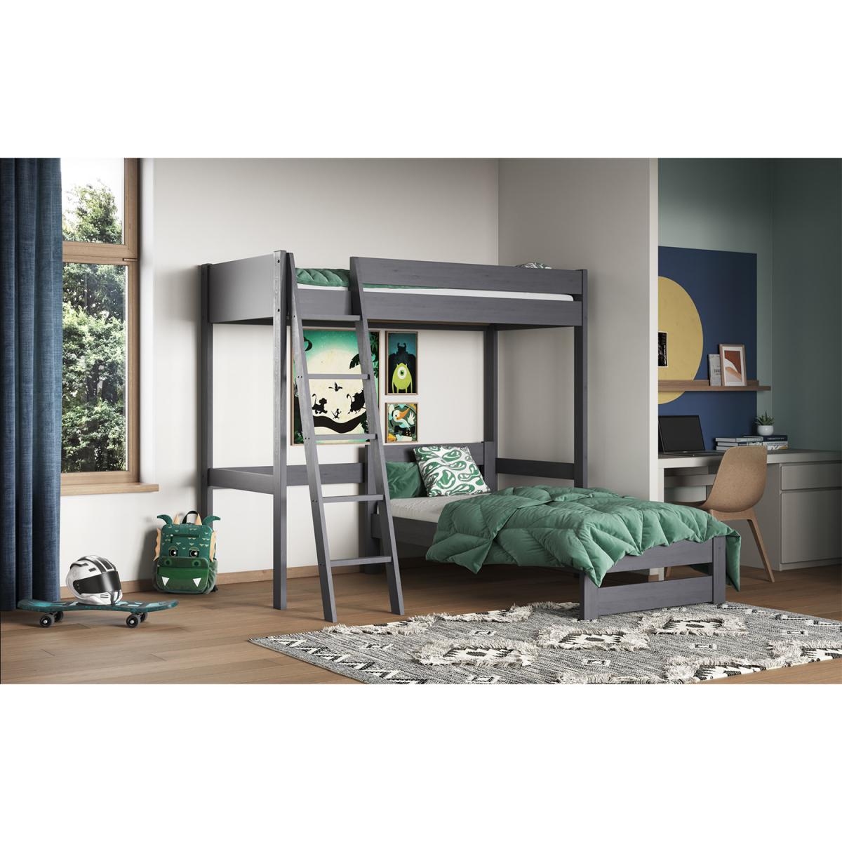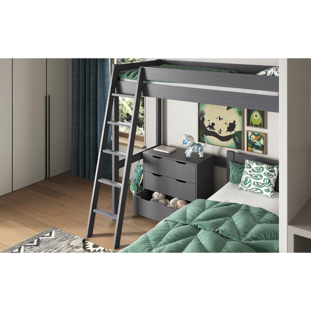 Part of the sustainable living collection is the Tera L shaped high sleeper bed. This stunningly crafted bed frame has been designed to meet the needs of adults and children alike with the additional 2nd bed, which was added to this configuration due to popular demand. This Tera is available in a single continental mattress for the top bed and with the option of either a single bed continental or small double continental as the bottom bed. We recommend no more than a 16cm thick mattress for this product due to safety reasons. All Noomi beds are certified, as the solid wood is sourced from sustainably managed forests. The Pine is coated with a non-toxic, eco-friendly water-based paint in both a white and grey option. Each piece of pine is moisture tested to ensure a strong, long-lasting build. Noomi uses only ethically sourced Solid Scandinavian pine, which grows straighter, stronger and with fewer knots due to the cold atmosphere in the Nordic regions.