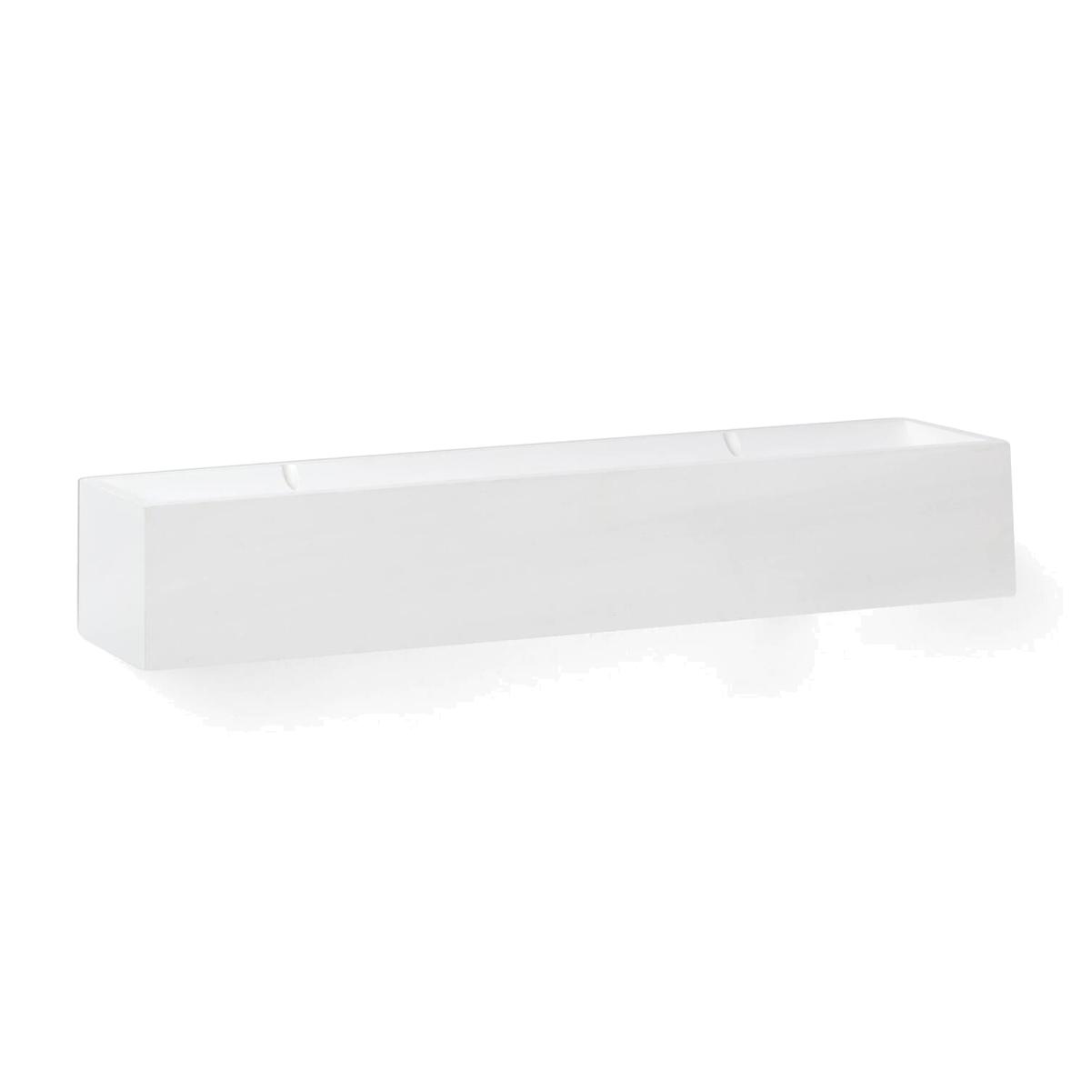 This is an effective wall light which will illuminate an extended area. The fitting uses LED light, which keeps energy consumption and overhead costs down to a minimum. The length of the fitting allows this light to shine with a wider light spread. The fitting is made of plaster, giving you the option to customise the wall light. The light shines upwards, giving the fitting a modern feel. Class two.