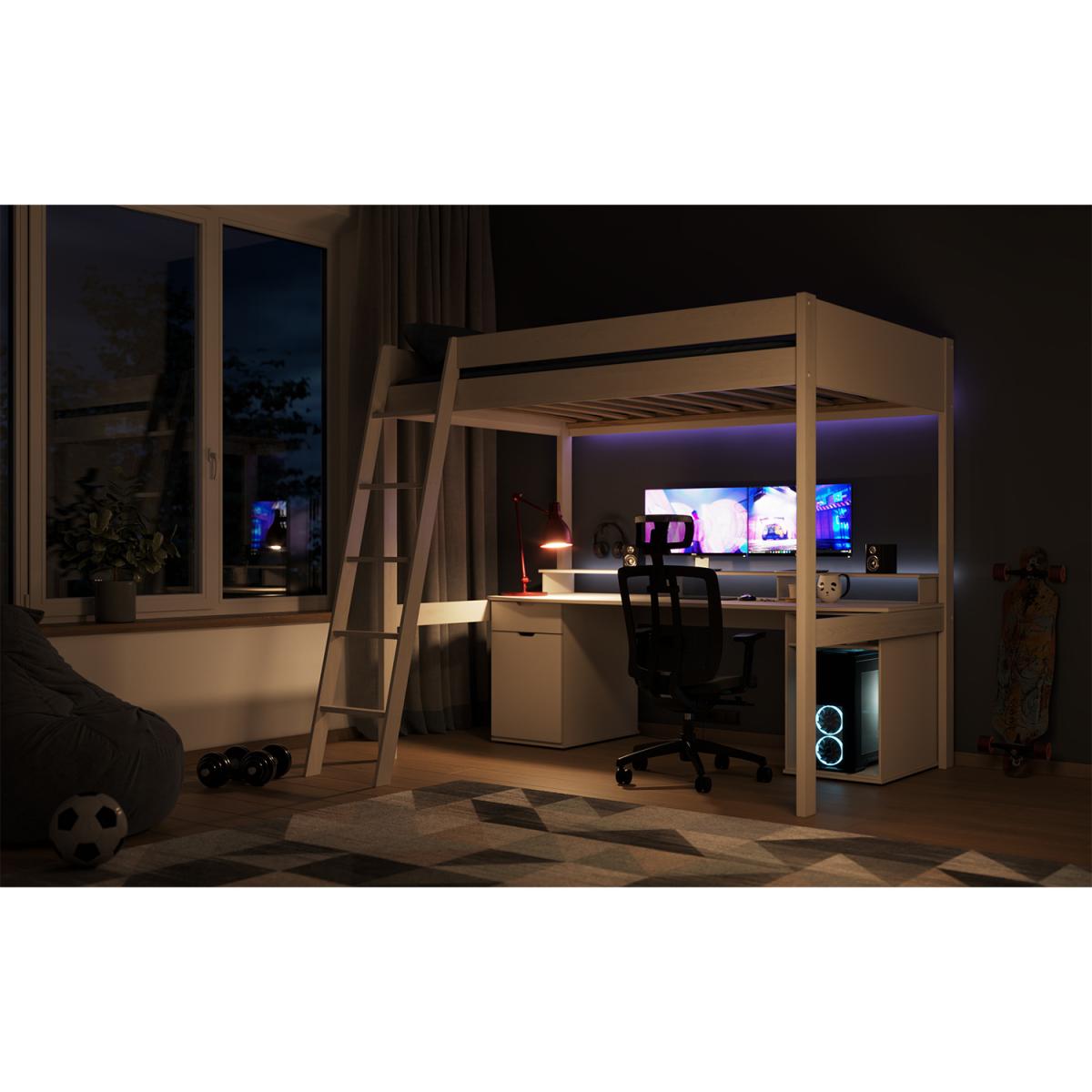 The Tera small double gaming high sleeper bed is part of the sustainable living collection by Noomi. A spacious under bed area featuring a built-in gaming desk makes for the perfect gaming environment. A roomy small double continental bed along with plentiful storage space and a built-in MDF desk, makes this bed perfect for creating the sense of more space in those smaller bedrooms. All Noomi beds are certified, meaning the solid wood is sourced from sustainably managed forests. The Pine is coated with a non-toxic, eco-friendly water-based paint in both a white and grey option. Each individual piece of pine is moisture tested to ensure a strong, long-lasting build. Noomi uses only ethically sourced Solid Scandinavian pine, which grows straighter, stronger and with fewer knots due to the cold atmosphere in the Nordic regions. Continental Small Double Mattress 120x200cm