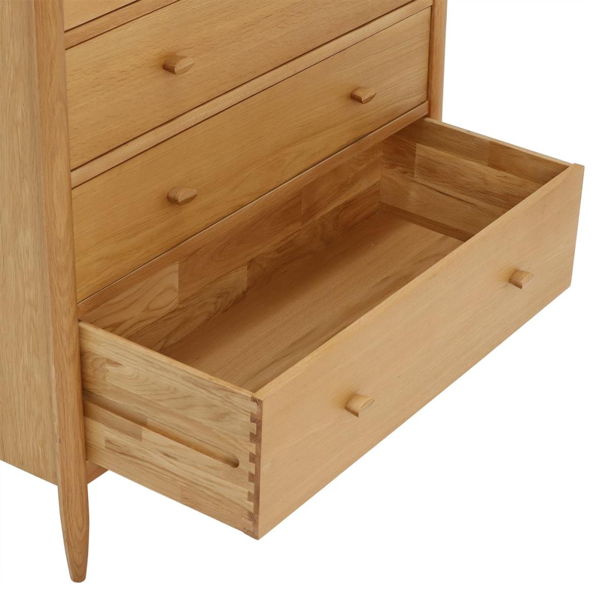 I love this tall chest for its clean, neutral finish that easily complements various interior styles, from Scandi minimalism to more relaxed country looks. Its spacious drawers make it practical for storing everything from clothes to accessories, keeping your space tidy. In terms of styling, it works well as a statement piece in a bedroom or hallway, especially when paired with woven baskets or decorative boxes on top for added texture and organisation. For a cohesive look, consider using it alongside other light wood furniture or soft textiles to create a warm, inviting atmosphere. Its versatile design makes it a reliable choice for both functional storage and subtle room enhancement.