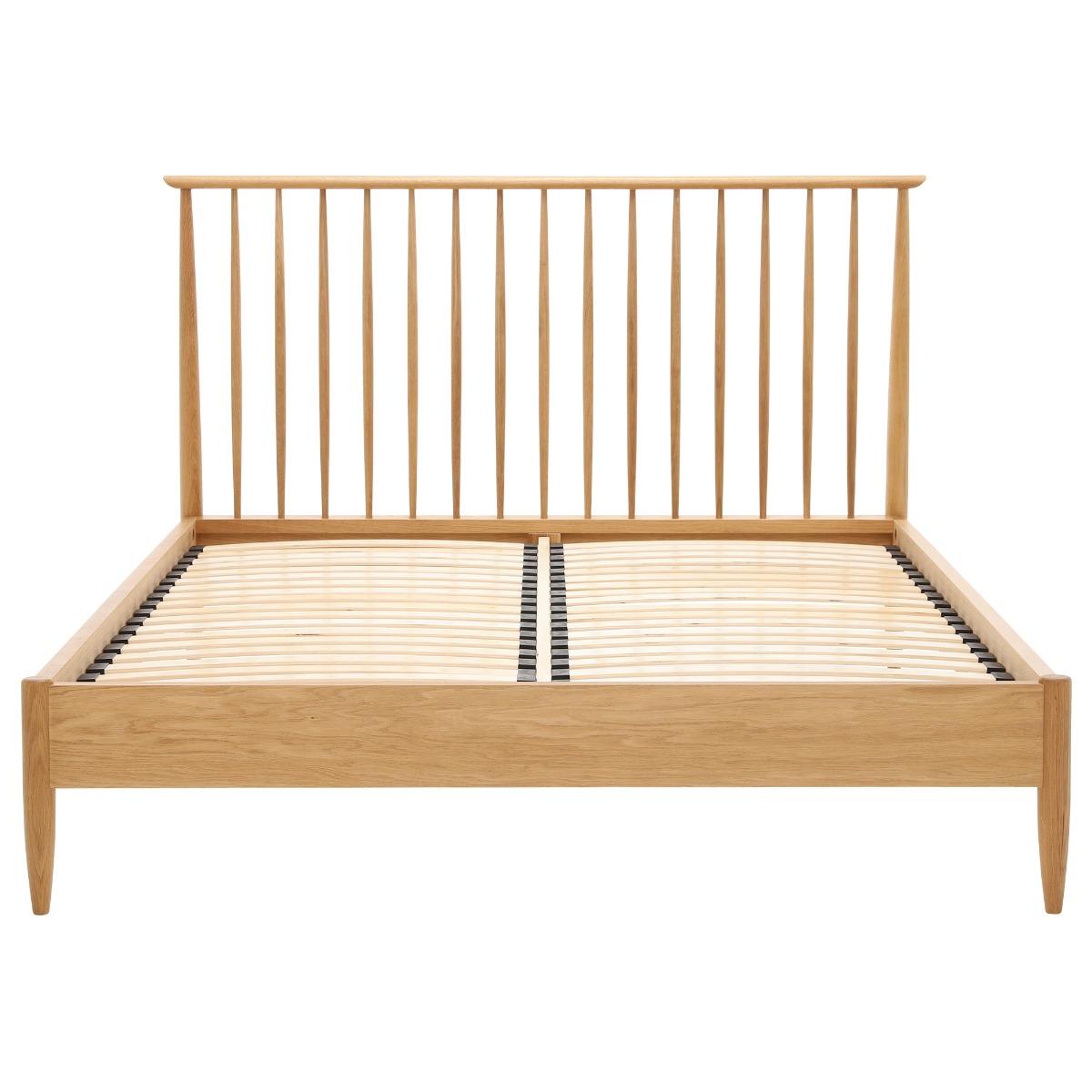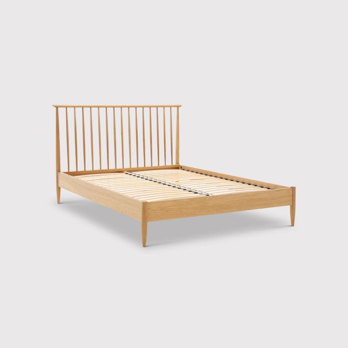 Part of the relaxed, modern bedroom range from ercol, the Teramo bed frame is beautifully crafted from pale oak, with a timeless spindle headboard reminiscent of the iconic ercol Windsor chair. Perfect for so many interior looks, this elegant oak bed frame can be partnered with the matching storage for an effortlessly cohesive scheme.