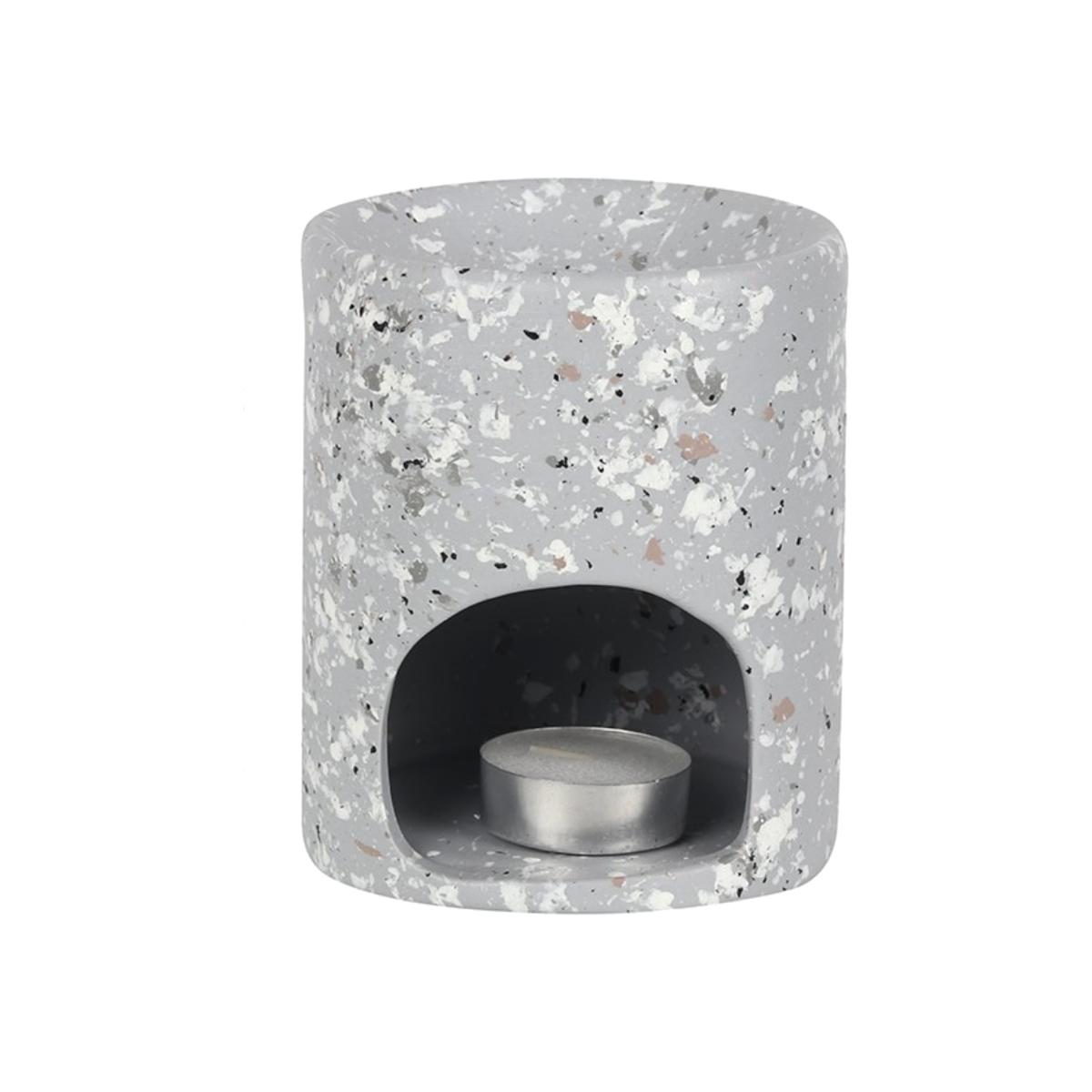 I love this terrazzo-effect oil burner for its subtle texture and versatile grey tone, making it a practical yet stylish addition to various interiors. It works beautifully in modern, Scandinavian, or industrial settings, where its understated look can complement concrete, wood, or neutral palettes. For styling, try placing it on a sideboard or a coffee table alongside minimalistic accessories such as candles or greenery to create a calming, cohesive vignette. Its compact size and neutral hue make it easy to incorporate into both small and larger spaces, adding warmth and a touch of artisanal charm without overpowering the overall decor.