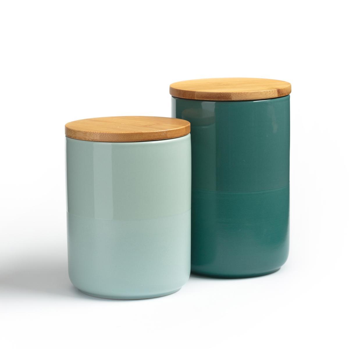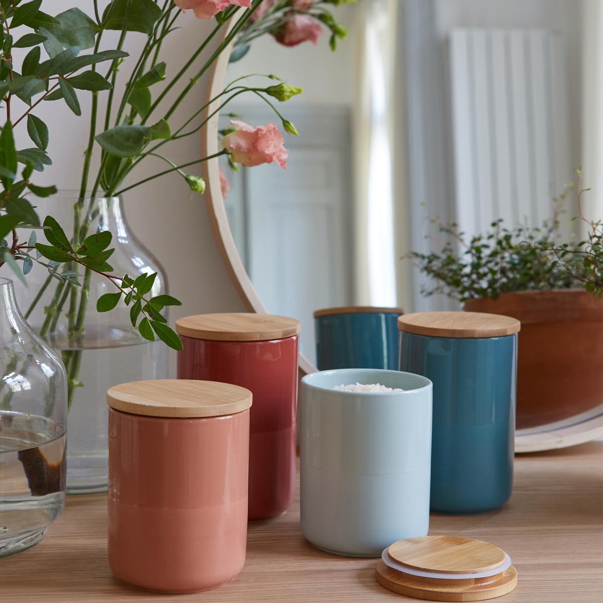 The Terbla ceramic and wood storage jar has the ideal dimensions for daily service.