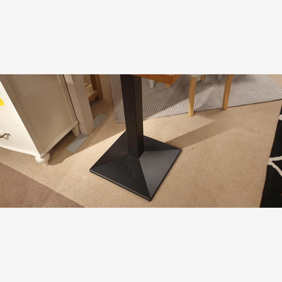 I love the simple, clean lines of this Terra bar table, which make it versatile for various interior styles. Its modern black finish works particularly well in contemporary, industrial, or minimalist schemes, adding a subtle statement without overpowering the space. When styling, consider pairing it with either sleek bar stools for a streamlined look or more eclectic seating for a relaxed vibe. Practical tips include using it as a small gathering point in a lounge or as a functional surface in open-plan kitchens or dining areas. Its sturdy base ensures stability on most flooring types, making it both functional and aesthetically appealing in a variety of settings.