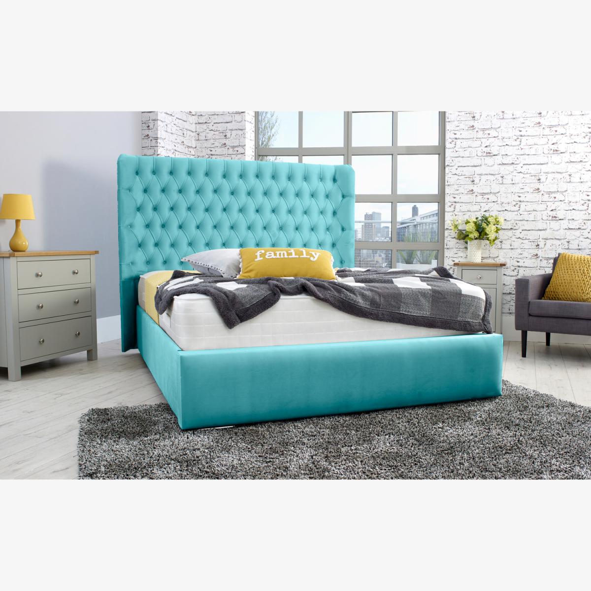 Terra Plush 4 Inch Solid Thick Bed Frame With Curved Headboard - Teal / Superking