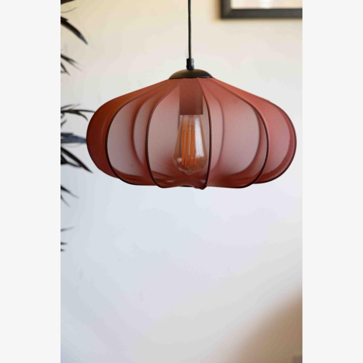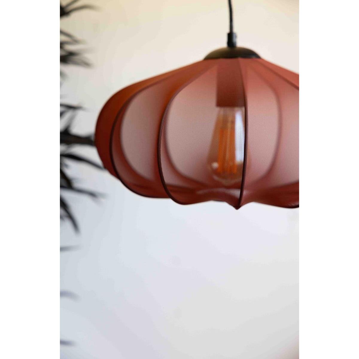 The Terracotta Mesh Pendant Light is an affordable home update with an instant style impact. A unique take on statement lighting, the ceiling light features mesh fabric over a black metal base in a rich, rust-red palette. Terracotta is one of our favourite colours to introduce to the home. As a versatile example of the earth tone trend, terracotta hues bring beautiful, natural warmth to your interior. To embrace the warmth of terracotta and create a gorgeous, welcoming ambience, we recommend installing this pendant with a dimmer switch. In addition, due to the transparent nature of the fine-mesh fabric, go bold with an exposed filament bulb that commands attention. A unique choice for pendant light shades, the see-through shade has a space-enhancing effect that works well across the home, from your bedroom to the hallway or your living space. Perfect for any spot where you want a stylish update without spending a fortune, the Terracotta Mesh Pendant Light adds a splash of sumptuous rust colour to the ceiling. Terracotta ceiling light with mesh shade Measures: W38cm x D38cm x H23cm Requires E27 Max 15W bulb