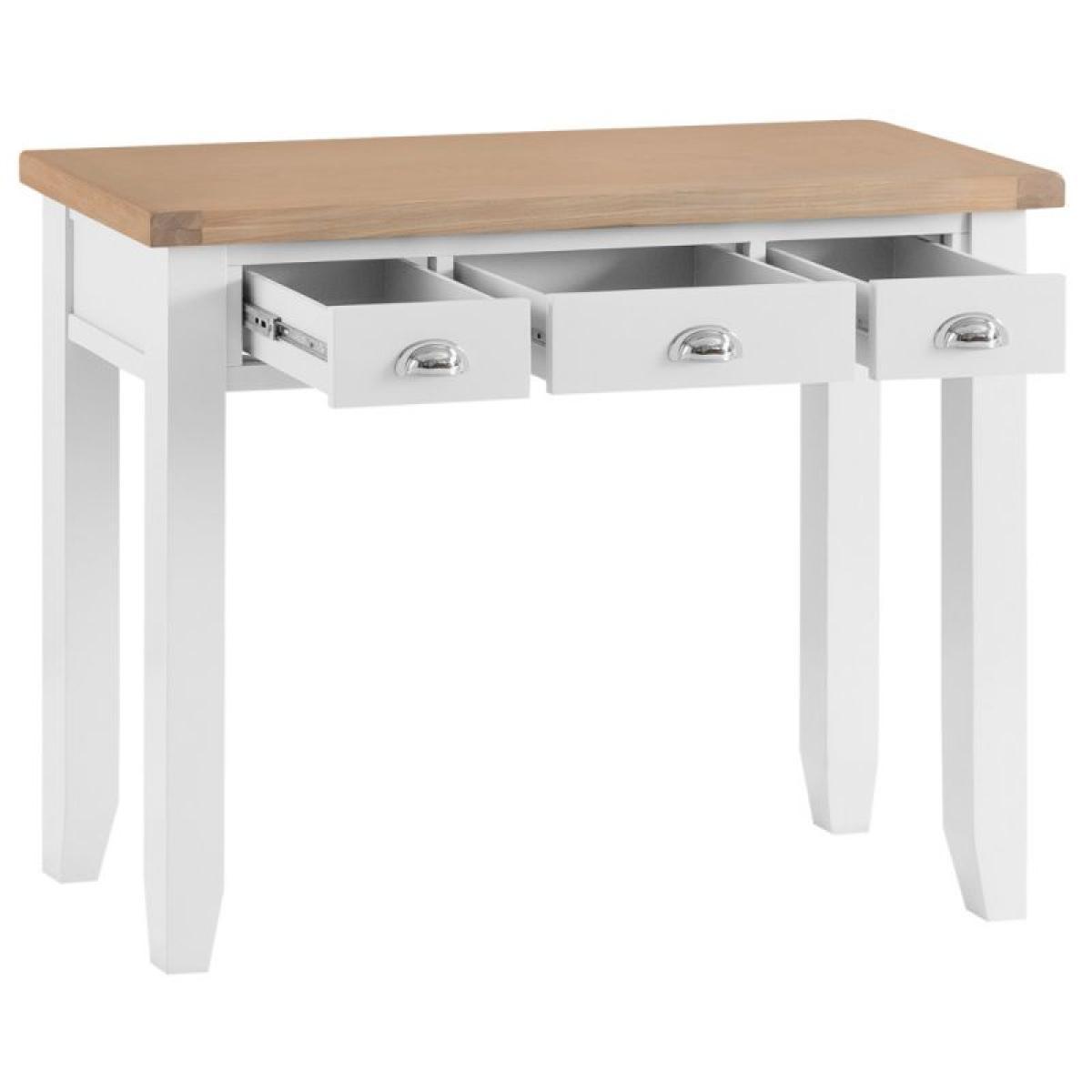 I love the Terranostra Oak Dressing Table for its versatile mix of rustic charm and practicality. Its old white finish with a natural wooden top creates a calming, vintage-inspired look that pairs well with both traditional and contemporary interiors. It’s particularly suited to bedrooms with a shabby chic, cottage, or coastal theme, but it can also add a touch of softness to more modern, minimalist spaces. For styling, I recommend keeping surfaces clutter-free with a few carefully chosen accessories like a mirror, minimalist vanity lamp, or some greenery to add freshness. Using light-coloured or pastel-toned storage boxes in the drawer or on top can enhance the airy aesthetic, making it both a practical and stylish addition to a bedroom or dressing area.