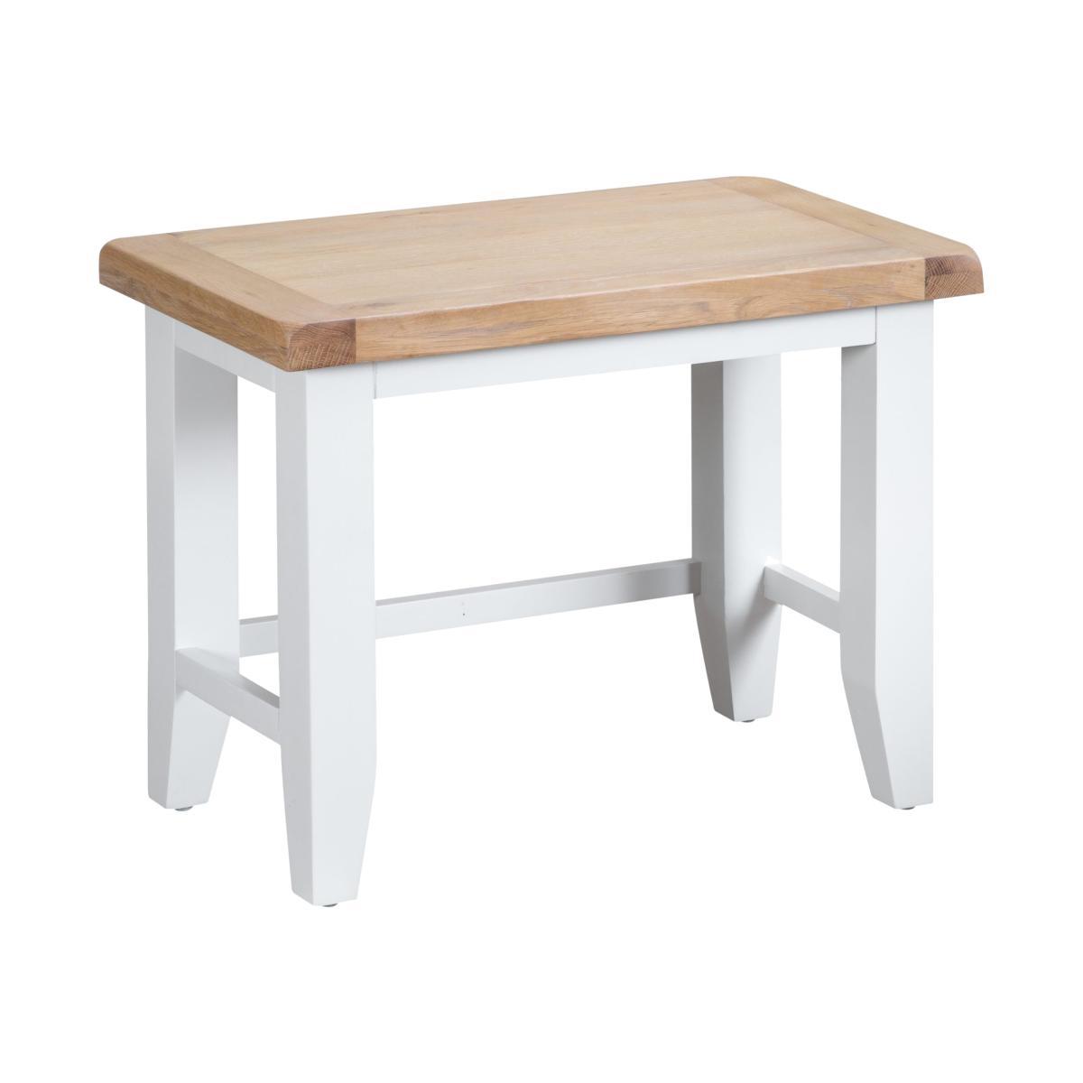 I love this little set of three, as they are versatile and offer great flexibility in any living space. The mix of the natural oak top with the distressed white base creates a rustic, timeless appeal that fits well in both traditional and contemporary interiors. They work particularly well in cosy lounge corners, beside a sofa or armchair, providing practical surface space while also allowing you to nest them away when not needed. For styling, I suggest layering with textured textiles like throws or cushions on nearby seating, or using them as side tables for lamps, plants or decorative accessories. Their size and tone make them an easy addition to schemes aiming for a relaxed, welcoming atmosphere.