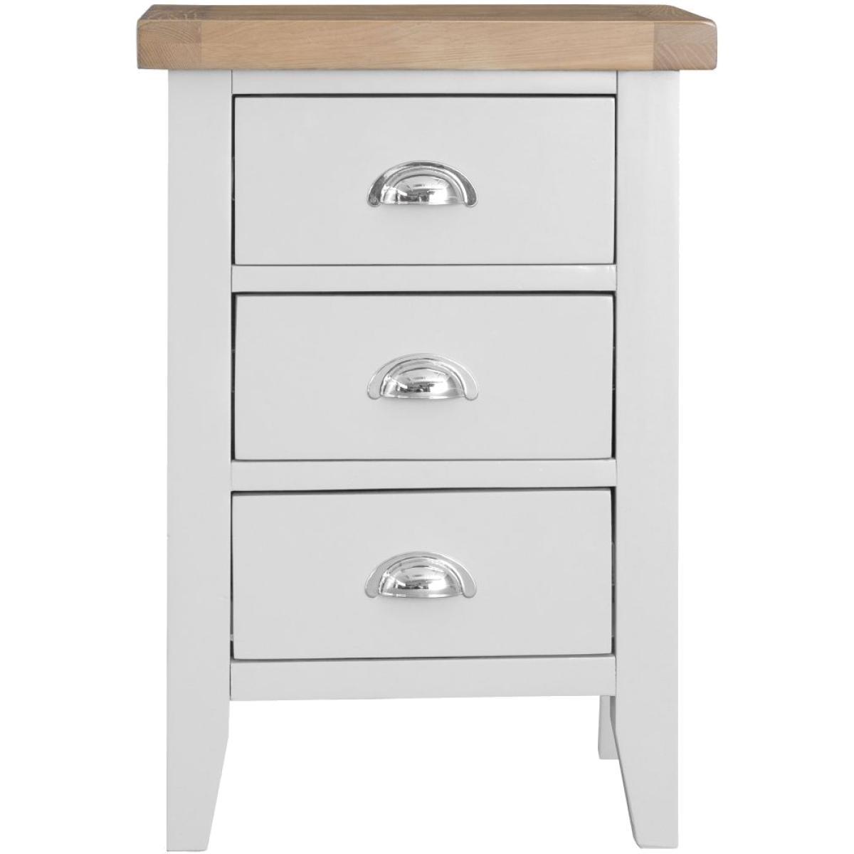 I love this bedside table for its versatile, vintage-inspired look and functional design. Its actual colour, a soft white with a hint of aged charm, makes it perfect for both traditional and relaxed, coastal interiors. The natural wood top adds warmth and a tactile element that balances the white finish beautifully. In terms of styling, I’d suggest using it with neutral, textural accessories, such as linen or woven pieces, to keep the aesthetic light and airy. It works particularly well in bedrooms with a shabby chic, rustic, or coastal vibe, and can also bring a touch of character into minimalist spaces when paired with modern bedding and understated accessories. Practical tip - keep the drawers decluttered for a clean look, and consider a small lamp or favourite books on top for ease and personality.