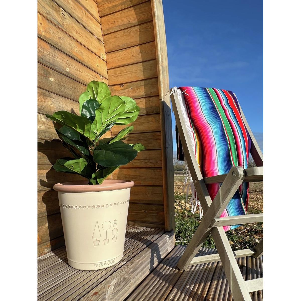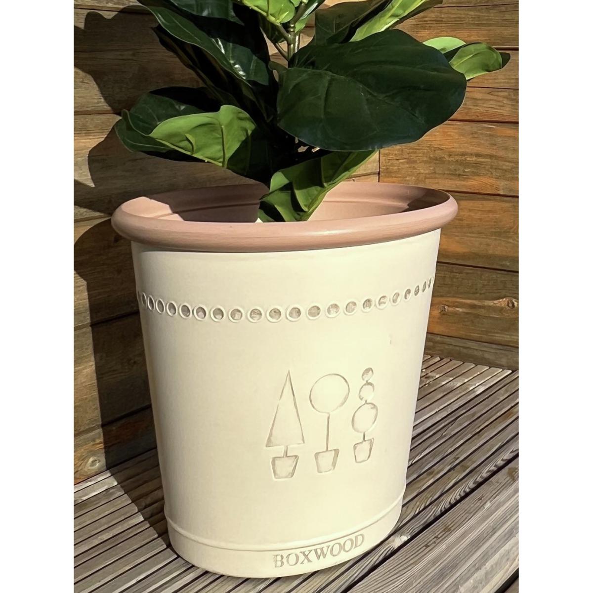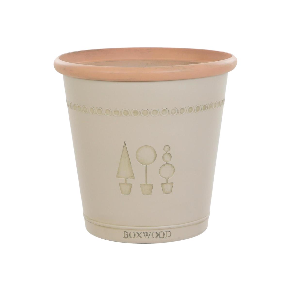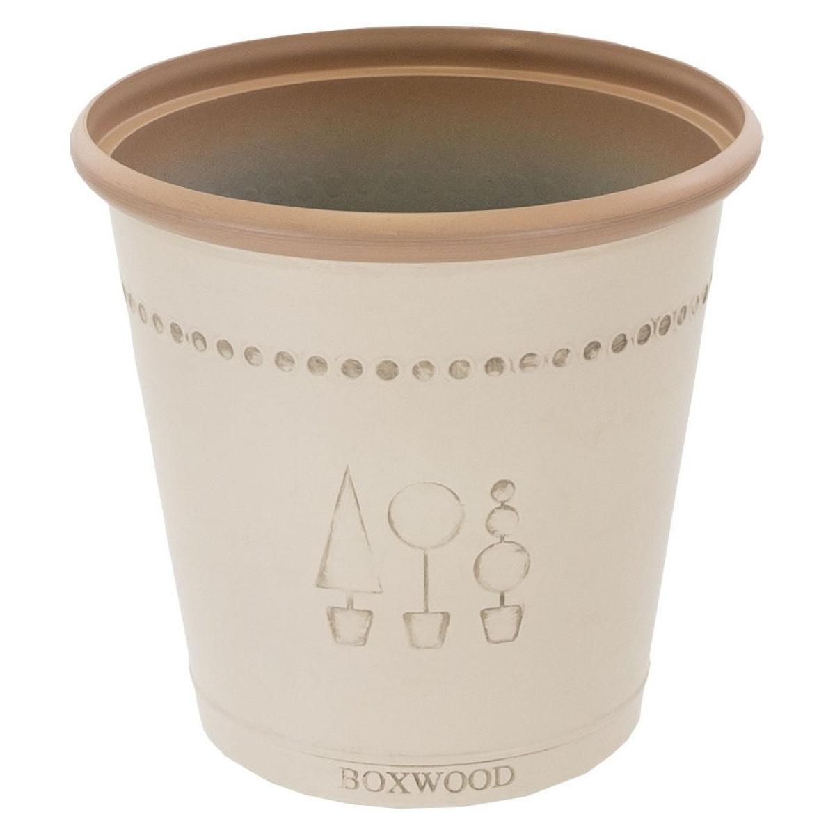 100% recycled material. Practical and stylish, this brown Boxwood Pot is ideal for creating arrangements that can be displayed indoors or outside. The functional and decorative plant pots are adorned with three tree motifs and have a contrasting terracotta effect rim. These pots are perfect for showing off your green-fingered handiwork. They are best used for displaying blooms that are planted inside a plain disposable pot. Made from plastic. Frost resistant. Fade resistant. Drainage holes. Capacity: 18liters. Size H31, W33, D33cm, Diameter 33cm. Weight 0.6kg. Manufacturer's 1 year guarantee.