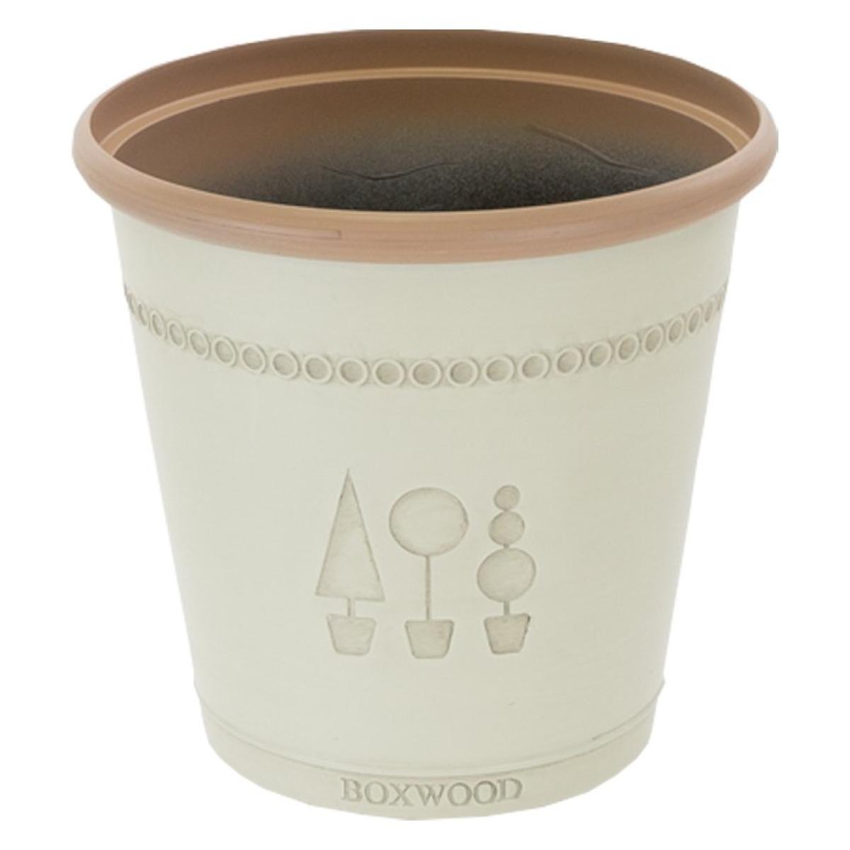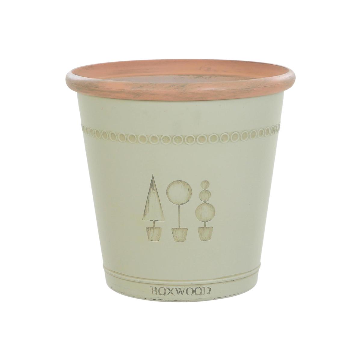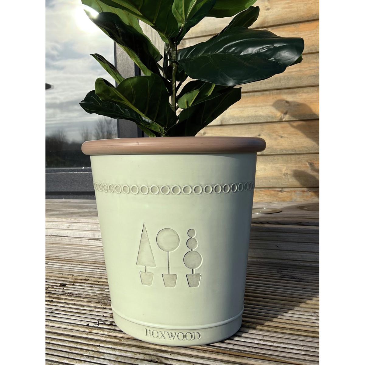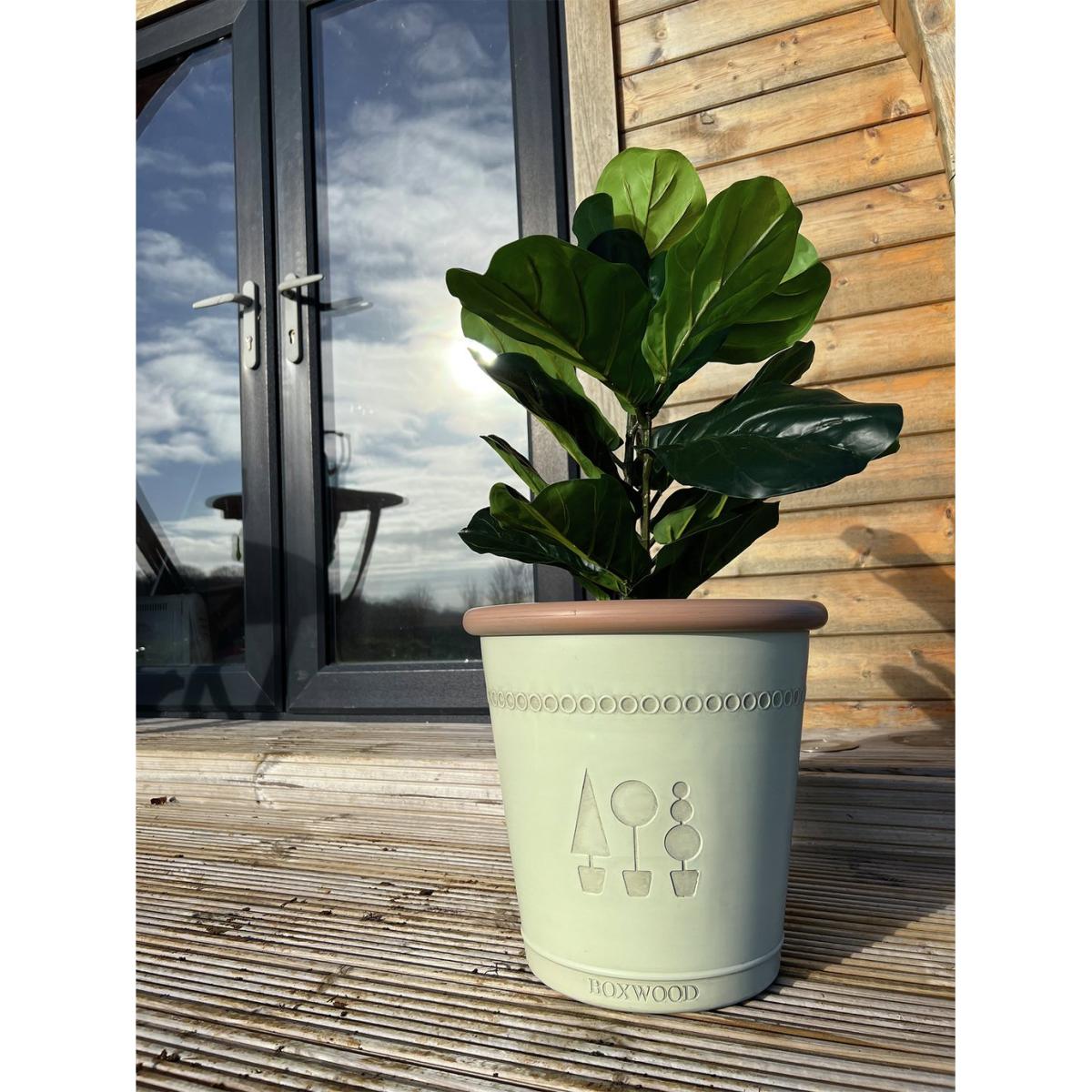 100% recycled material. Practical and stylish, this green Boxwood Pot is ideal for creating arrangements that can be displayed indoors or outside. The functional and decorative plant pots are adorned with three tree motifs and have a contrasting terracotta effect rim. These pots are perfect for showing off your green-fingered handiwork. They are best used for displaying blooms that are planted inside a plain disposable pot. Made from plastic. Frost resistant. Fade resistant. Drainage holes. Drillable drainage holes. Capacity: 18liters. Size H31, W33, D33cm, Diameter 33cm. Weight 0.6kg. Manufacturer's 1 year guarantee.