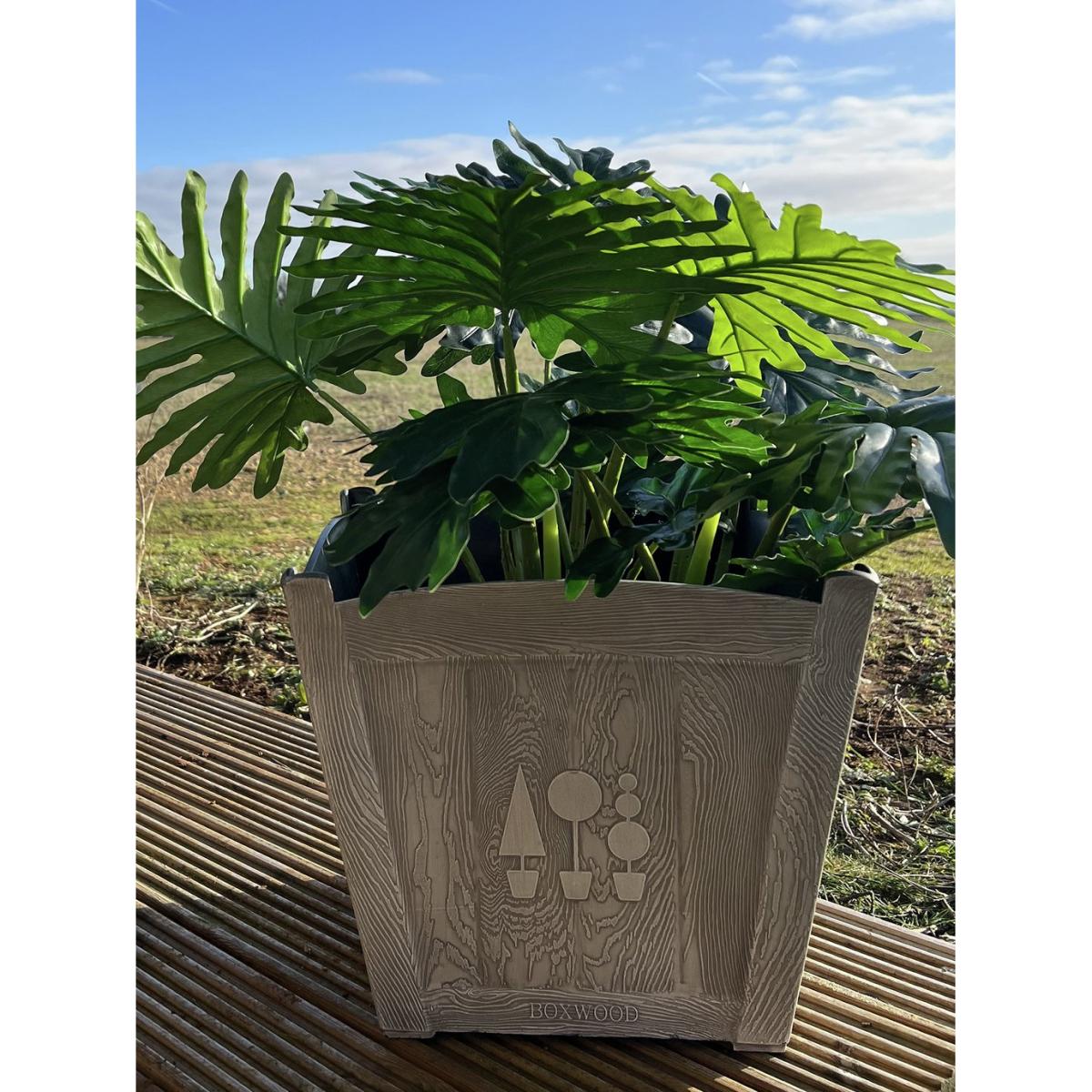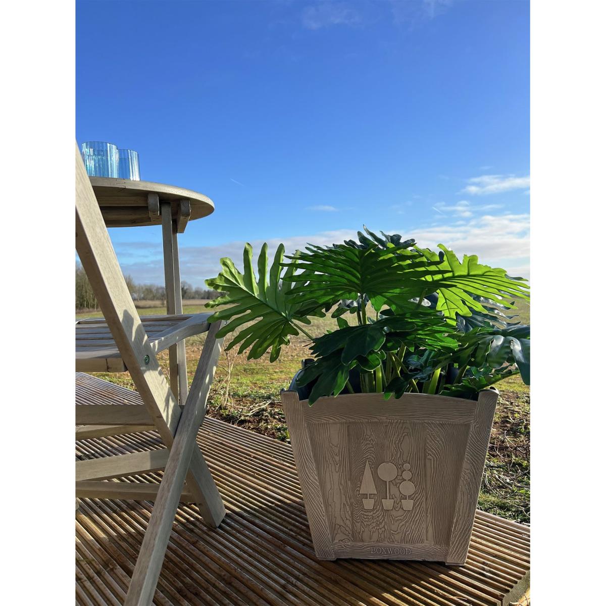 100% recycled material. Practical and stylish, this square brown Boxwood Pot is ideal for creating arrangements that can be displayed indoors or outside. The functional and decorative plant pots are adorned with three tree motifs and have a contrasting terracotta effect rim. These pots are perfect for showing off your green-fingered handiwork. They are best used for displaying blooms that are planted inside a plain disposable pot. For maximum visual impact, arrange a trio of pot planters in a uniform formation. Made from plastic. Frost resistant. Fade resistant. Drainage holes. Capacity: 22liters. Size H30, W36, D36cm, Diameter 39cm. Weight 1.4kg. Manufacturer's 1 year guarantee.