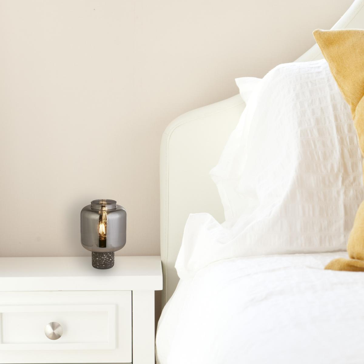 The Terrazzo base is finished in black and the shade is crafted smoked glass. A compact design and inline switch makes it stylish and functional.