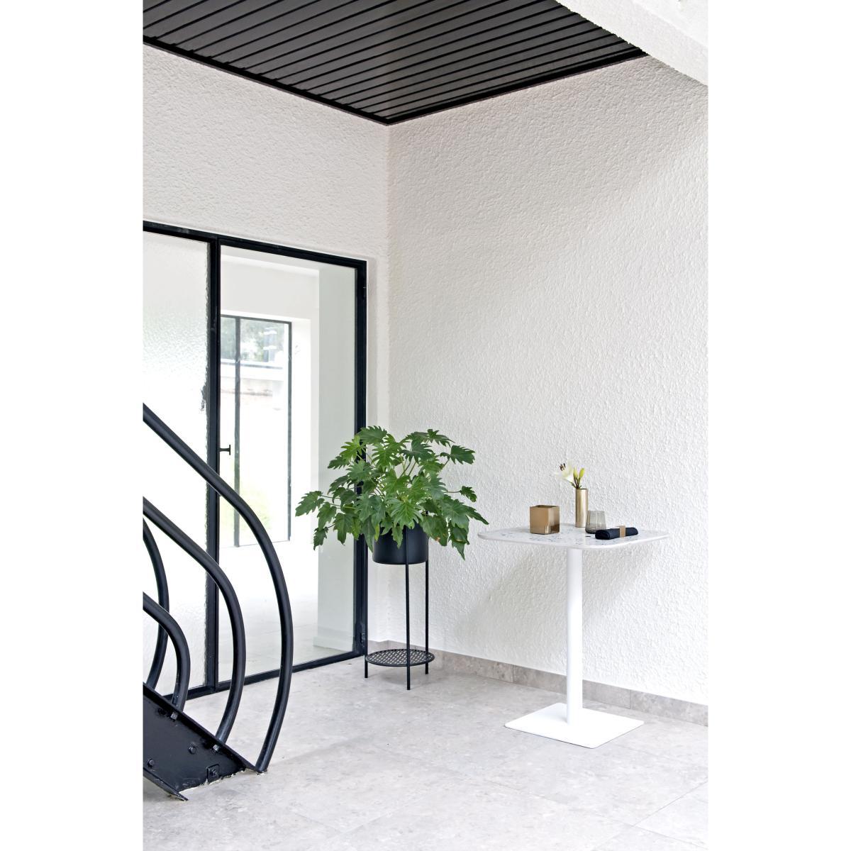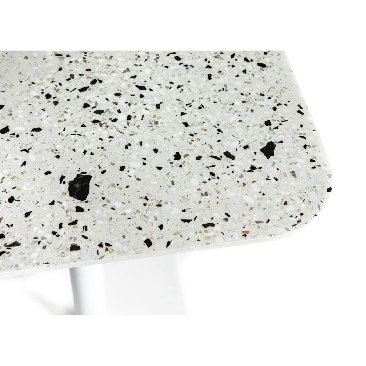 A very designer and elegant collection. All the items from the Terrazzo range are made completely from this material. This very trendy superb mixture of stone fragments and cement takes over all our interiors for a unique modern result. This small table with graphical lines is characterised by a dazzling colour scheme, an understated design and stylised patterns. It has a square base and fine legs which extend to a wonderful top with rounded corners. Laid out in your kitchen, a lounge or outdoors, Terrazzo is a compact and glamorous small table which can easily be set up where you need it!.