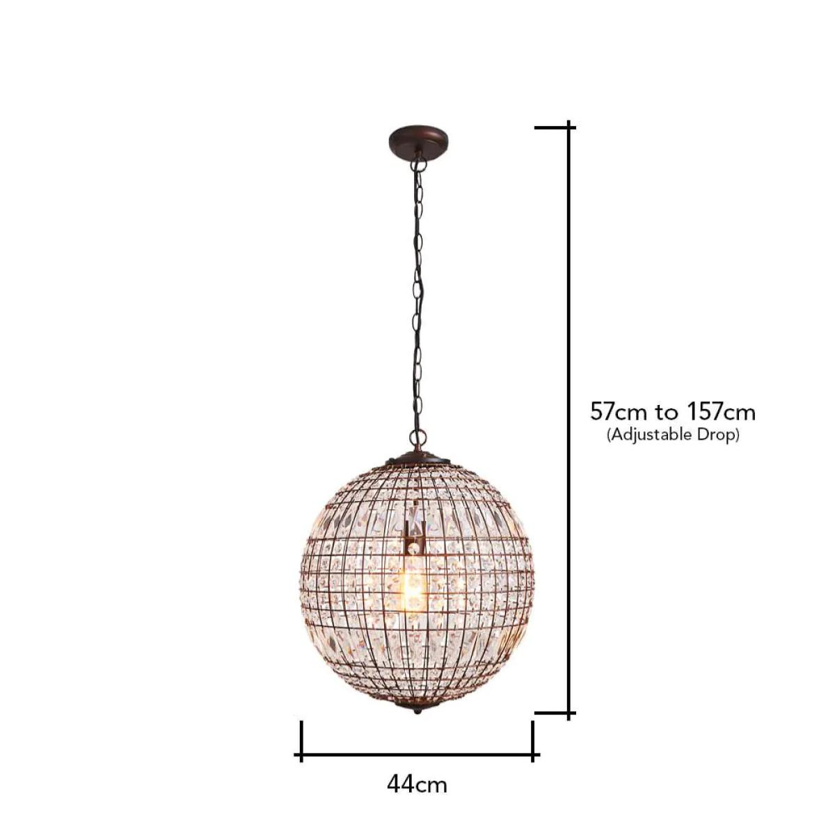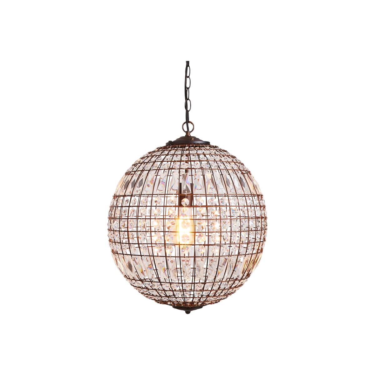 Sparkling ceiling lights for your home décor with the Terri 1 Light Large Glass Crystal Ball Pendant. This ceiling light comes in a bronze finish and is decorated with crystal effect prisms which cast gorgeous rainbows across the room as they refract the light, ideal for adding sparkle to Victorian or Edwardian style homes. It also looks ideal when styled over any dining table or kitchen island for a statement look that is guaranteed to wow your guests.