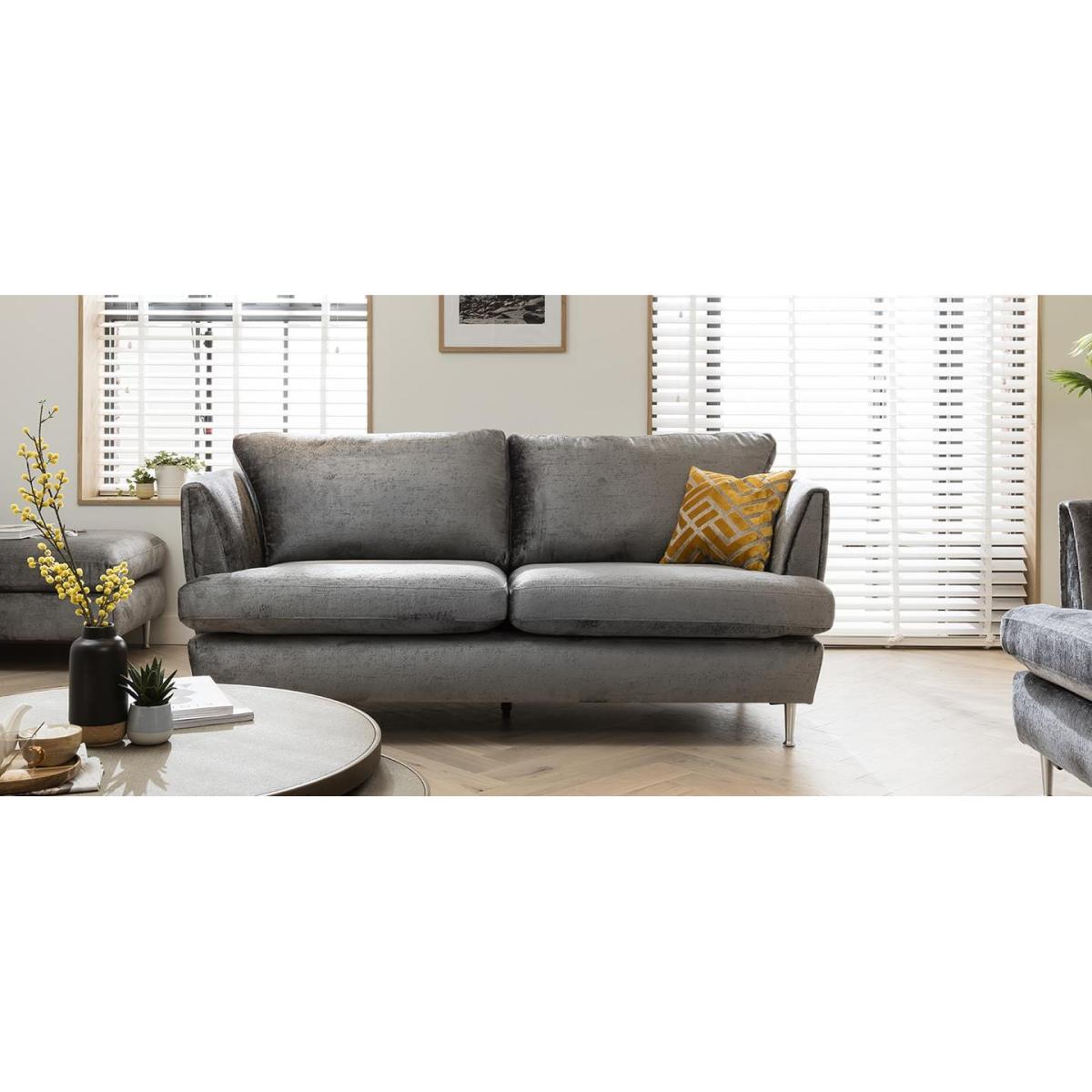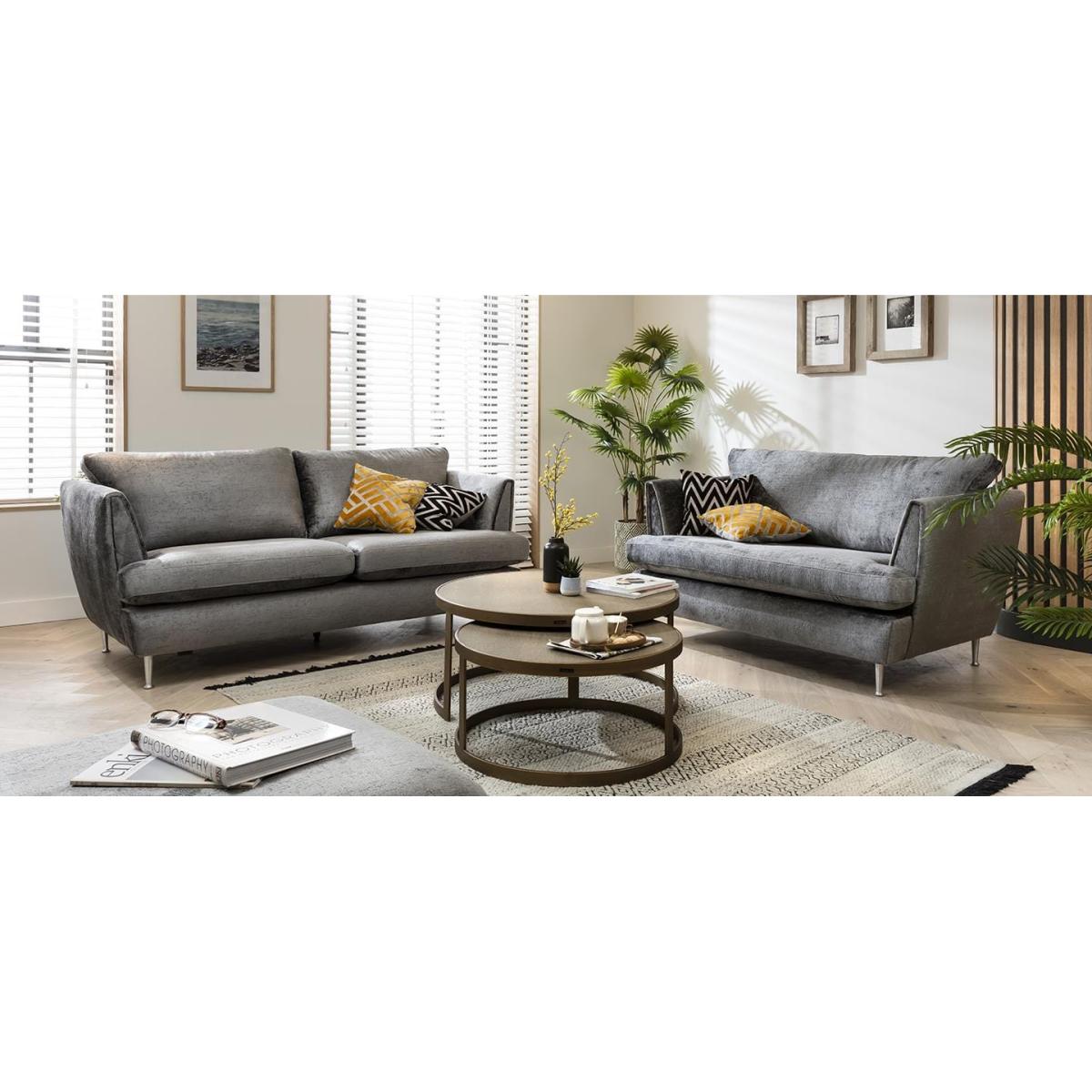 Tessa 2 Seater Sofa 200cm from the Quatropi Tessa Complete Modular Sofa Range It's curvaceous silhouette is upholstered in your choice of on-trend premium fabric, while silver Scandinavian-inspired metallic legs not only provide support to the construction but also give it a light impression. The elegantly curvaceous and sophisticated design of the sofa is enriched by generously deep seats and high-end cushioning. Need assistance? Use Live Chat to send us a message. If you need more information about this product, use the Live Chat service to speak to the team or send us a message. Spread the cost our with interest-free finance options. Minimum spend applies. W200cm D99cm H90cm See our pre-configured Tessa Sofa Collection All dimensions are approximate due to fabric differences. Please allow tolerance of +/- 5cm to any direction